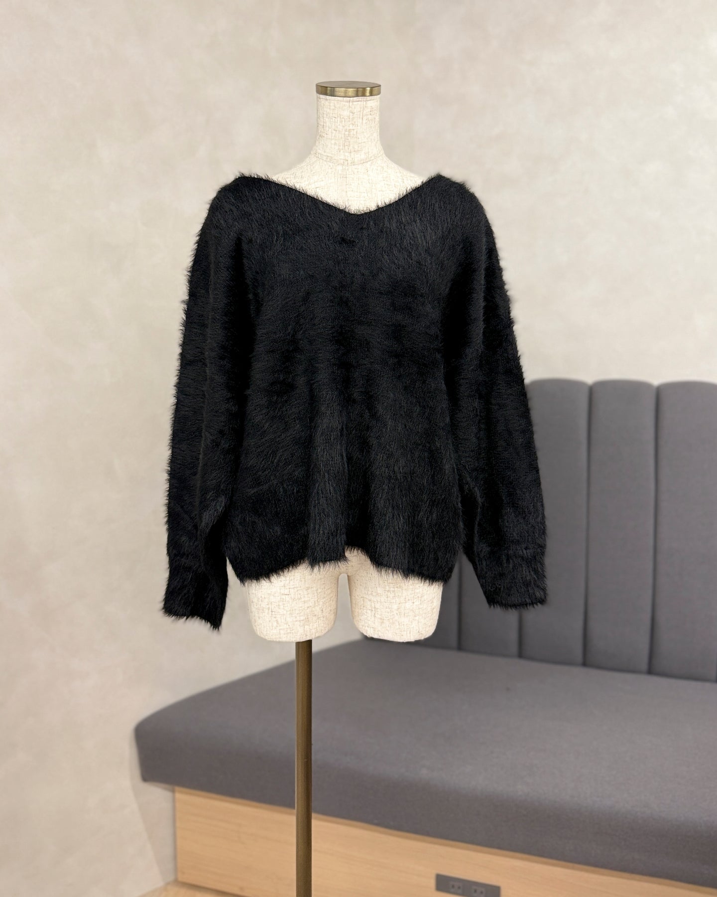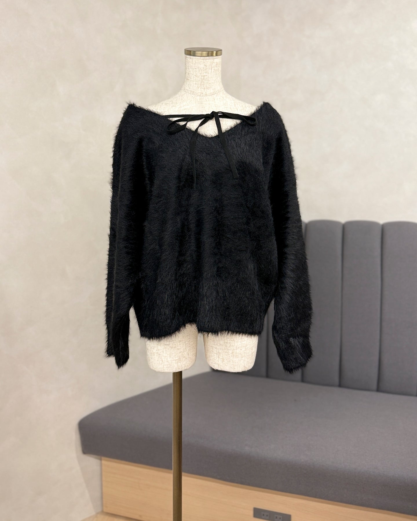【※サンプル品】2-Way オフショルフェザーニット (BLACK)