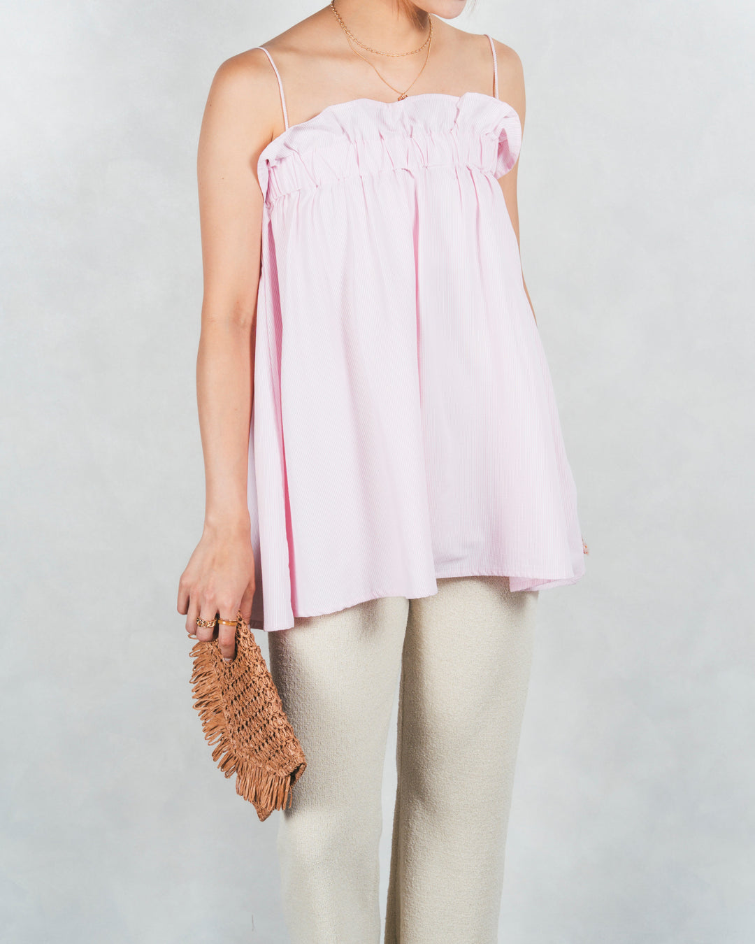 [SET]シーストライプギャザーキャミ+ワッシャーポプリンイージーパンツ(2SET)
