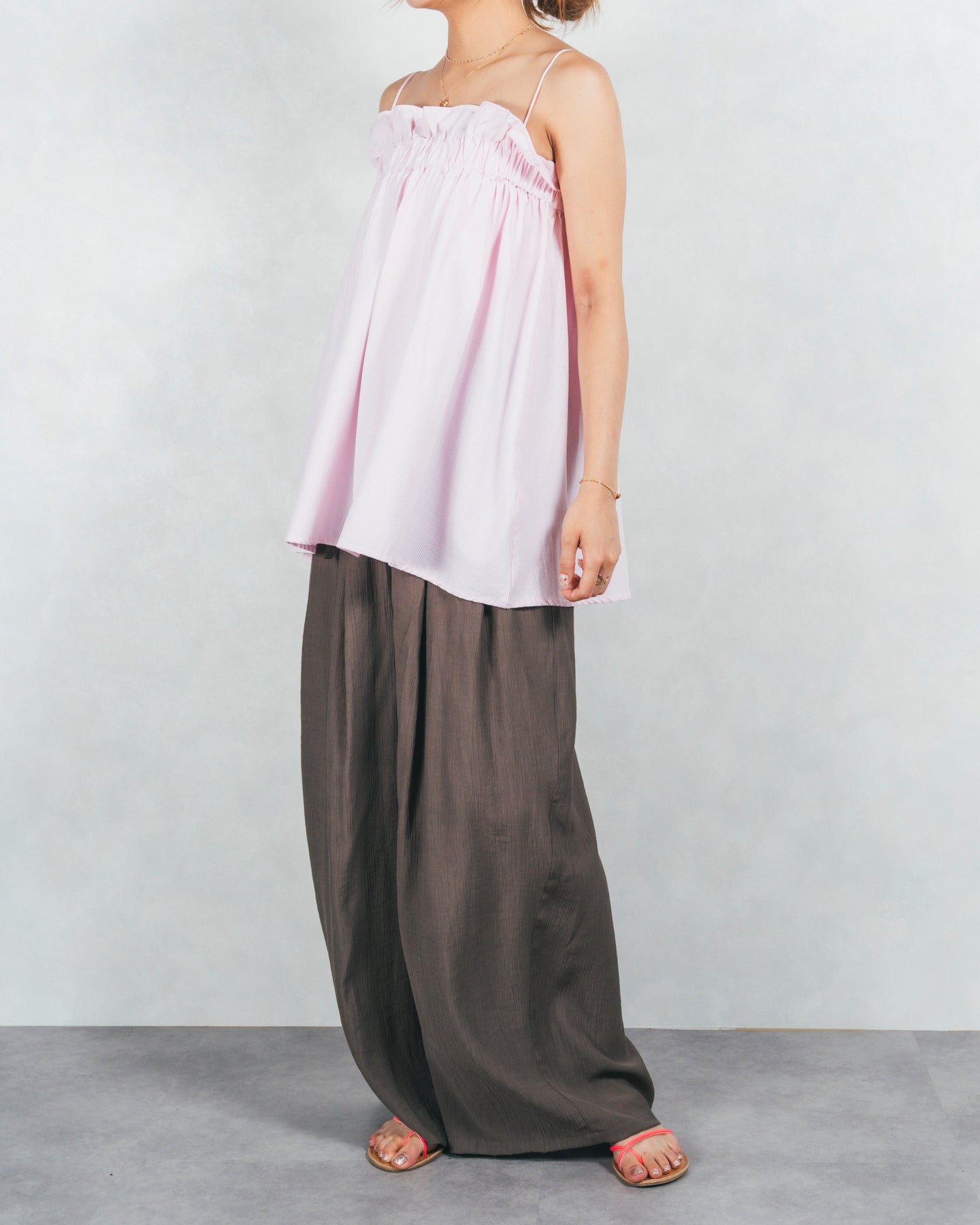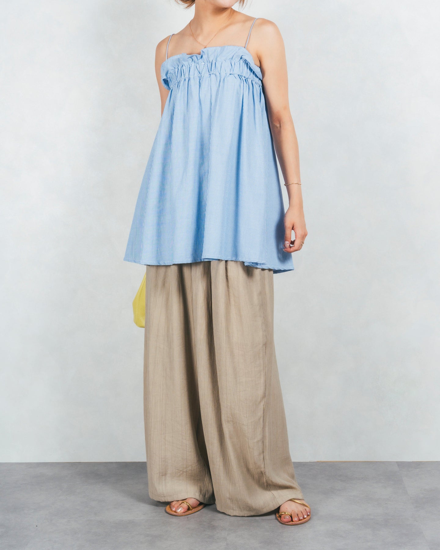 [SET]シーストライプギャザーキャミ+ワッシャーポプリンイージーパンツ(2SET)