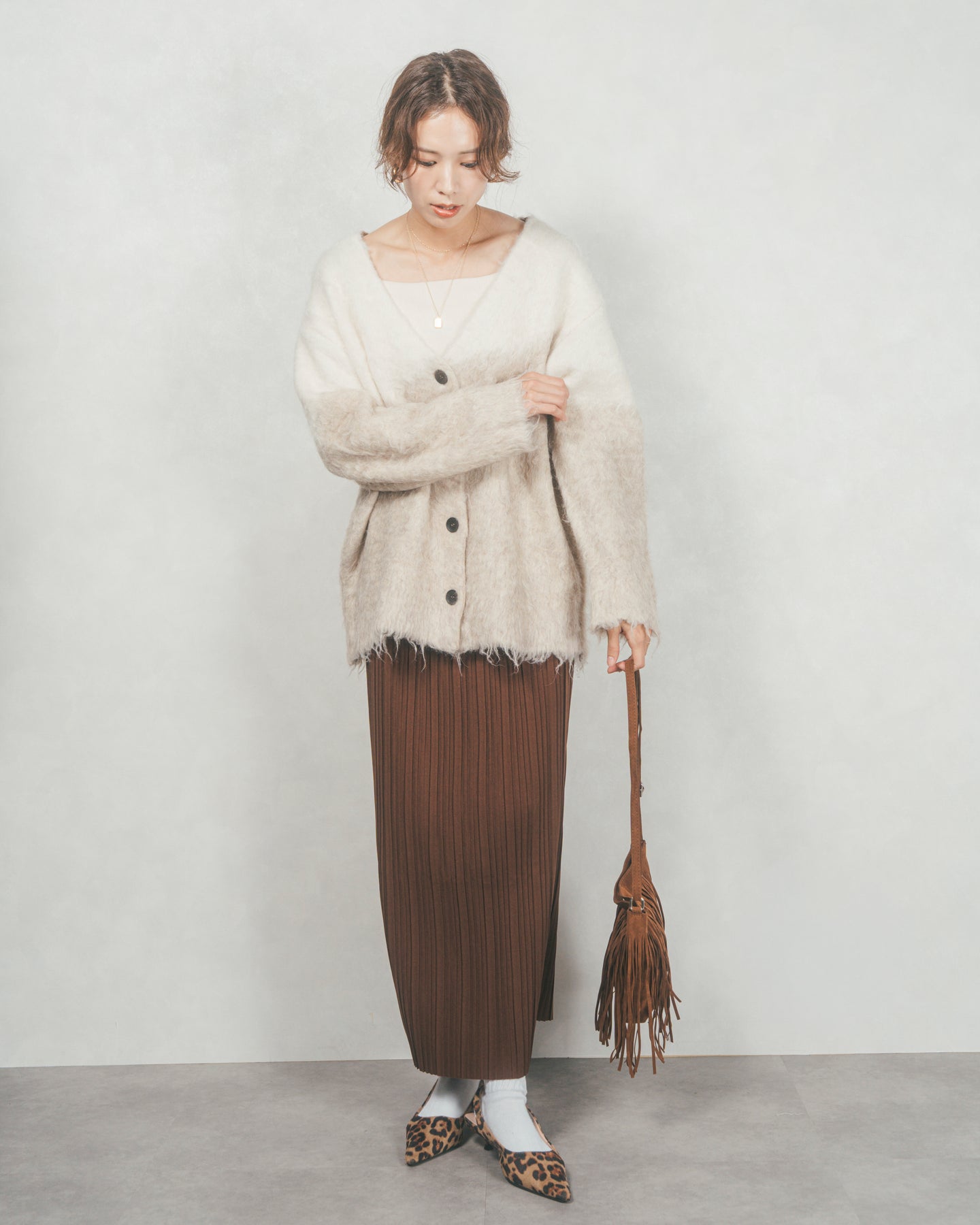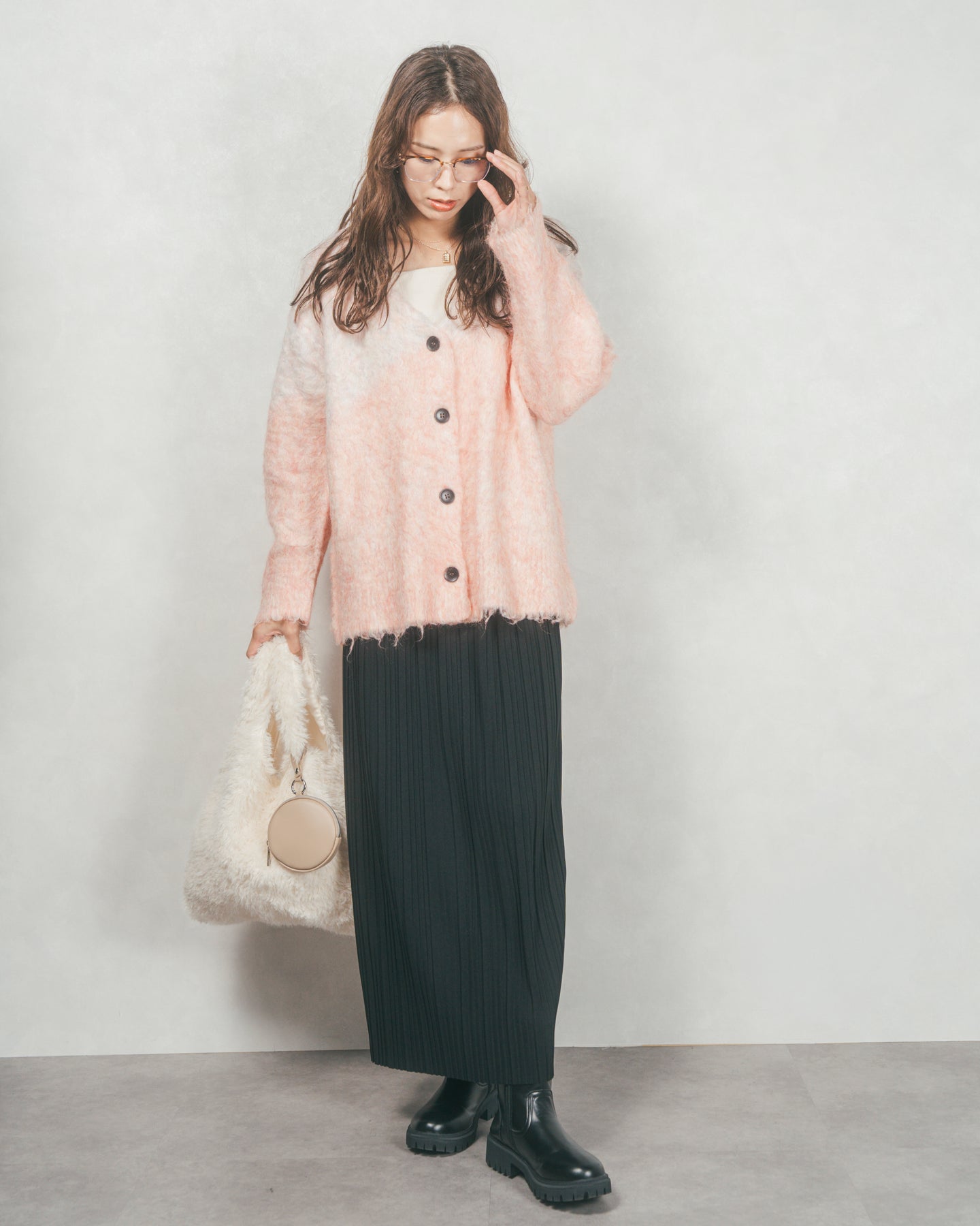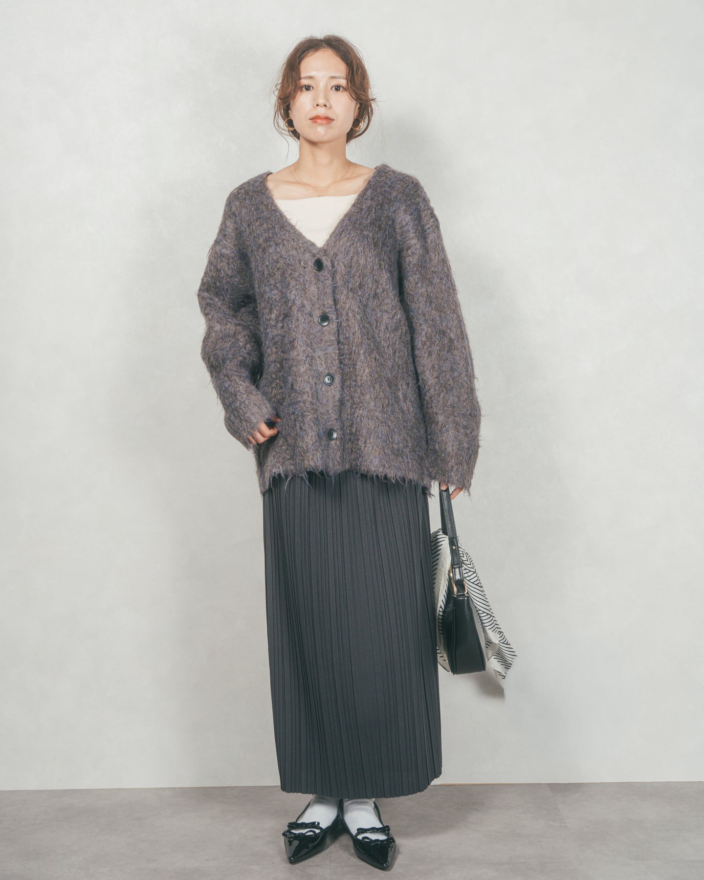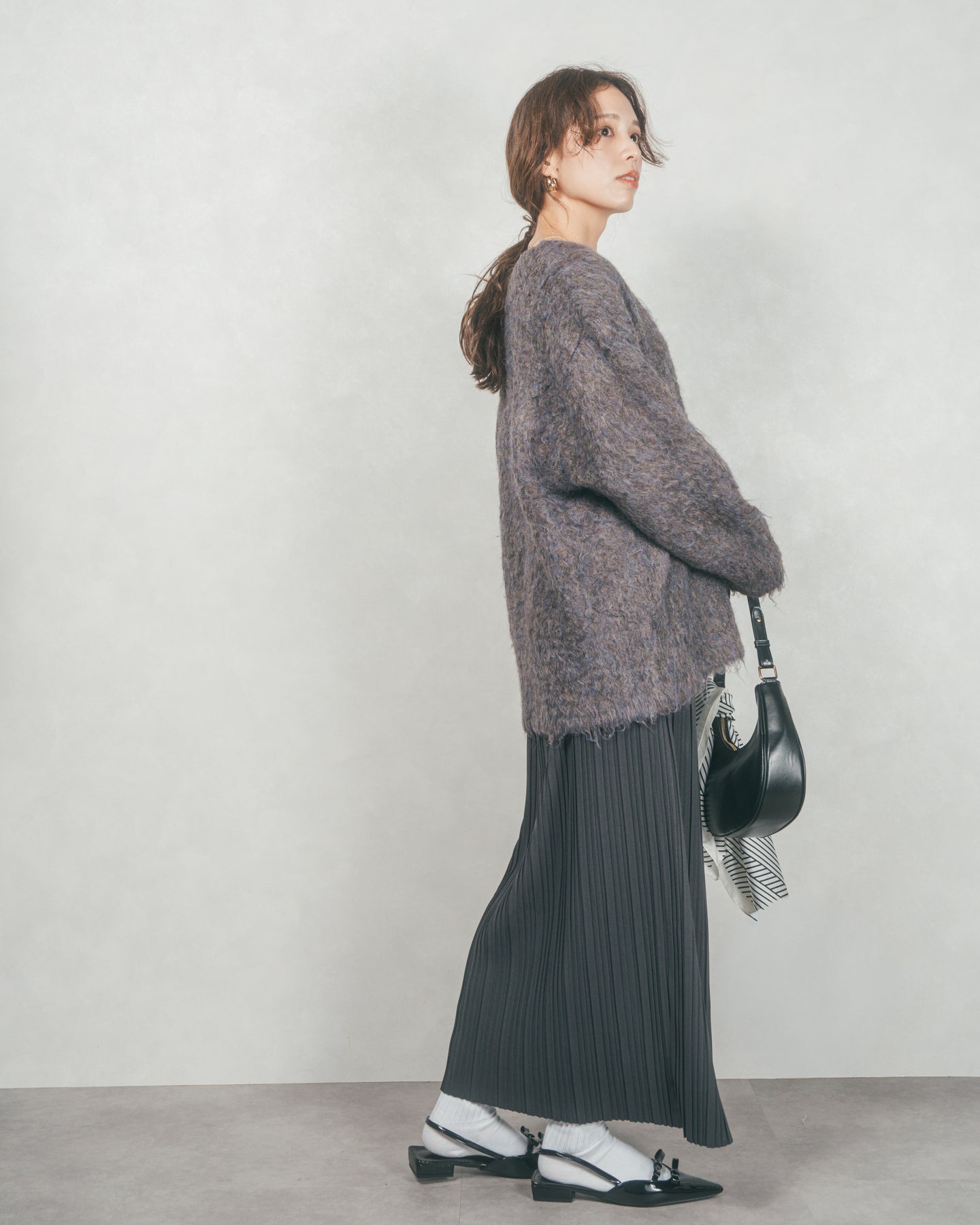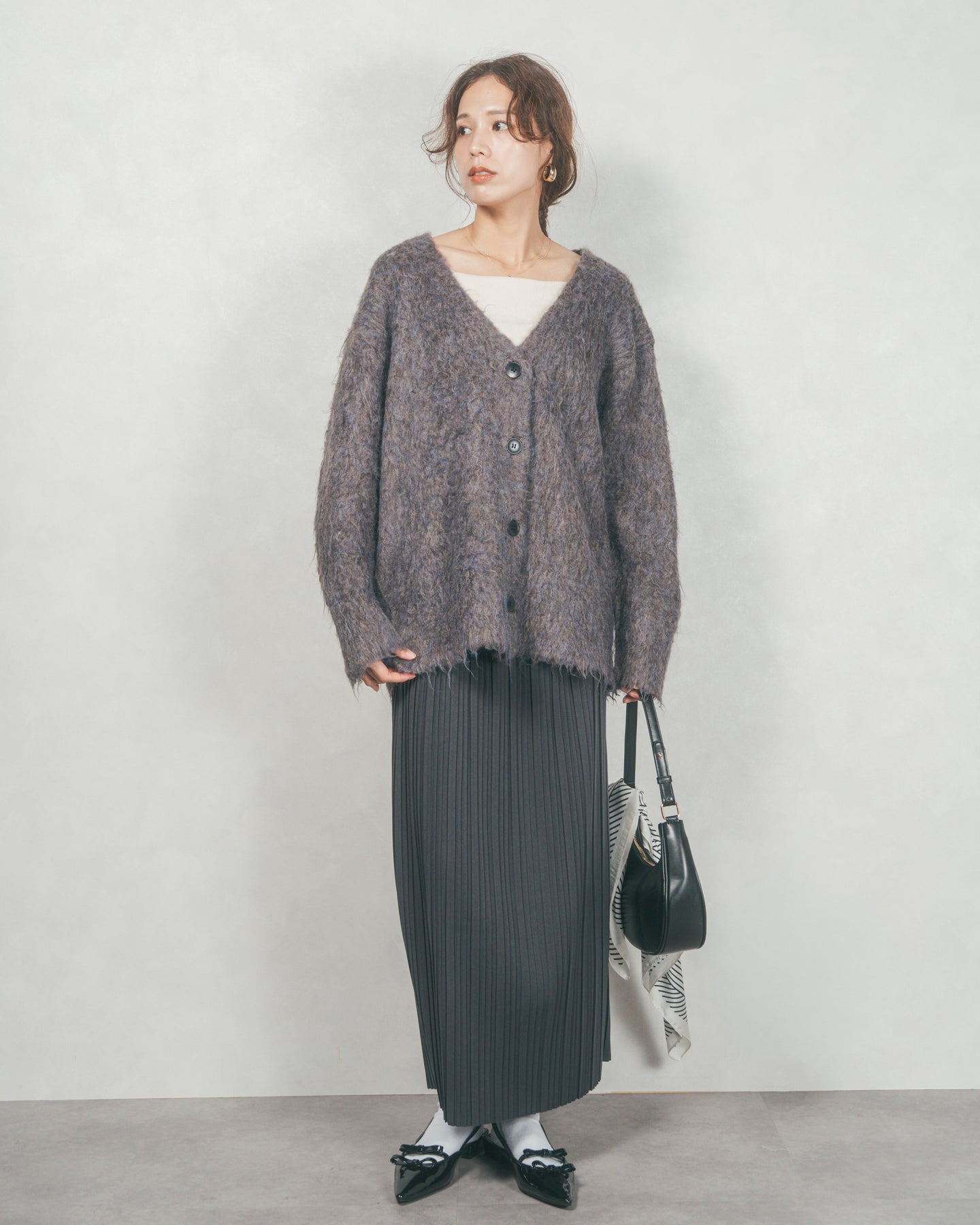 [SET]Airyフェザー ニットカーディガン+プリーツNarrowロングスカート(2SET)