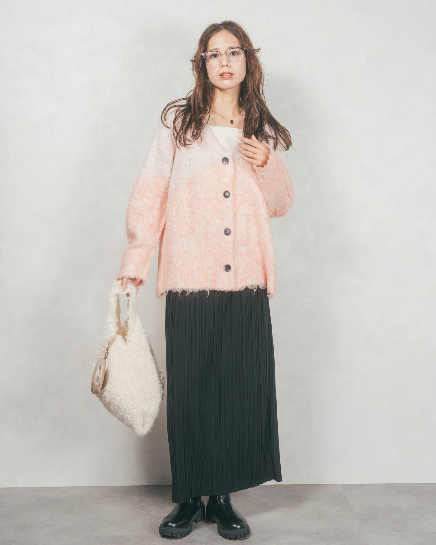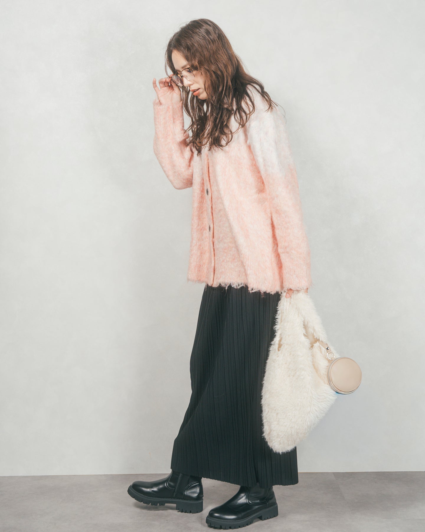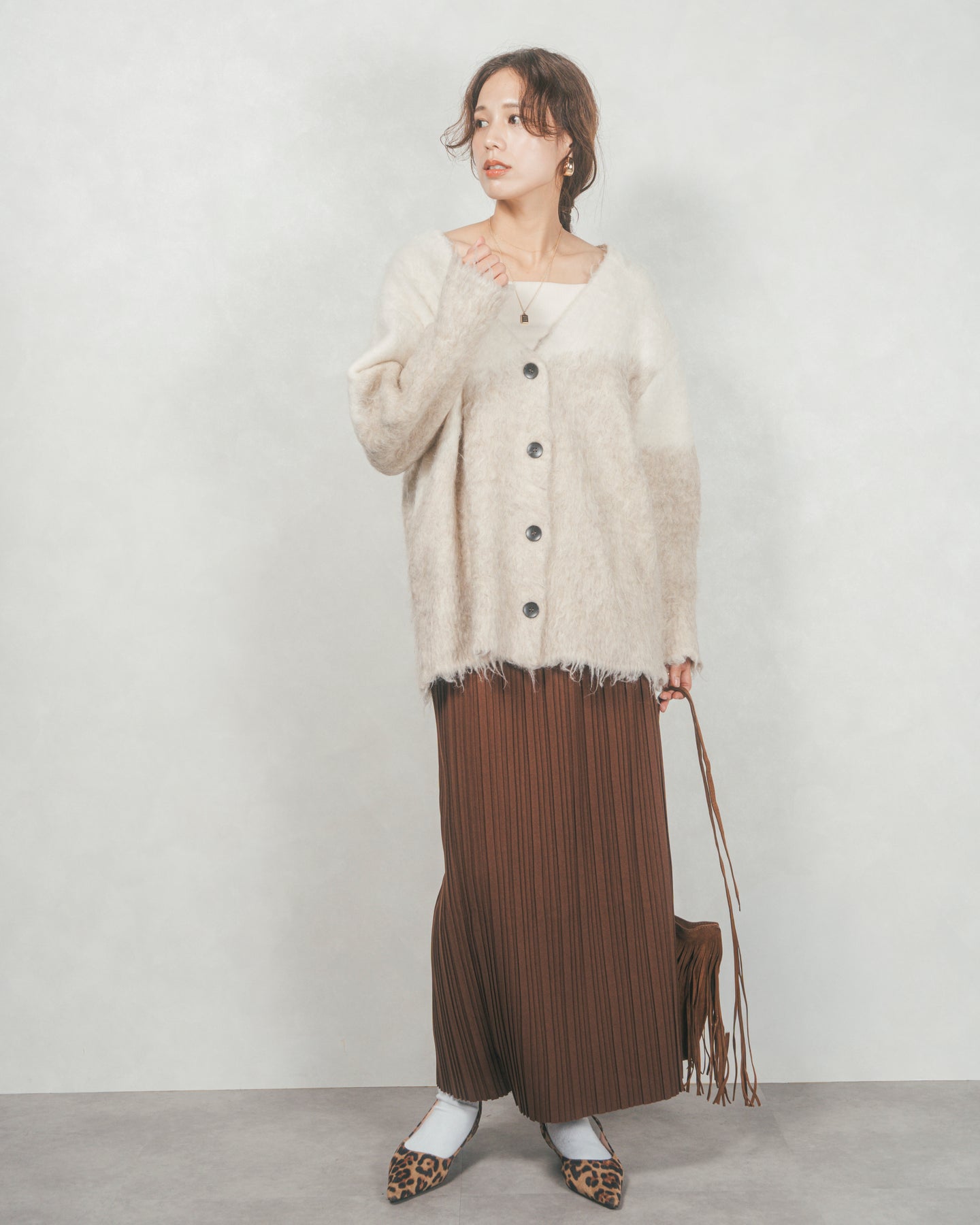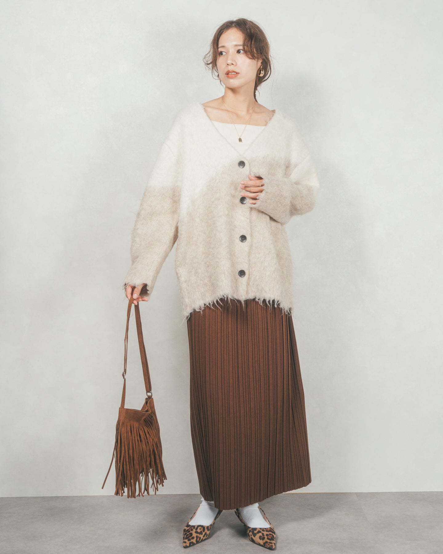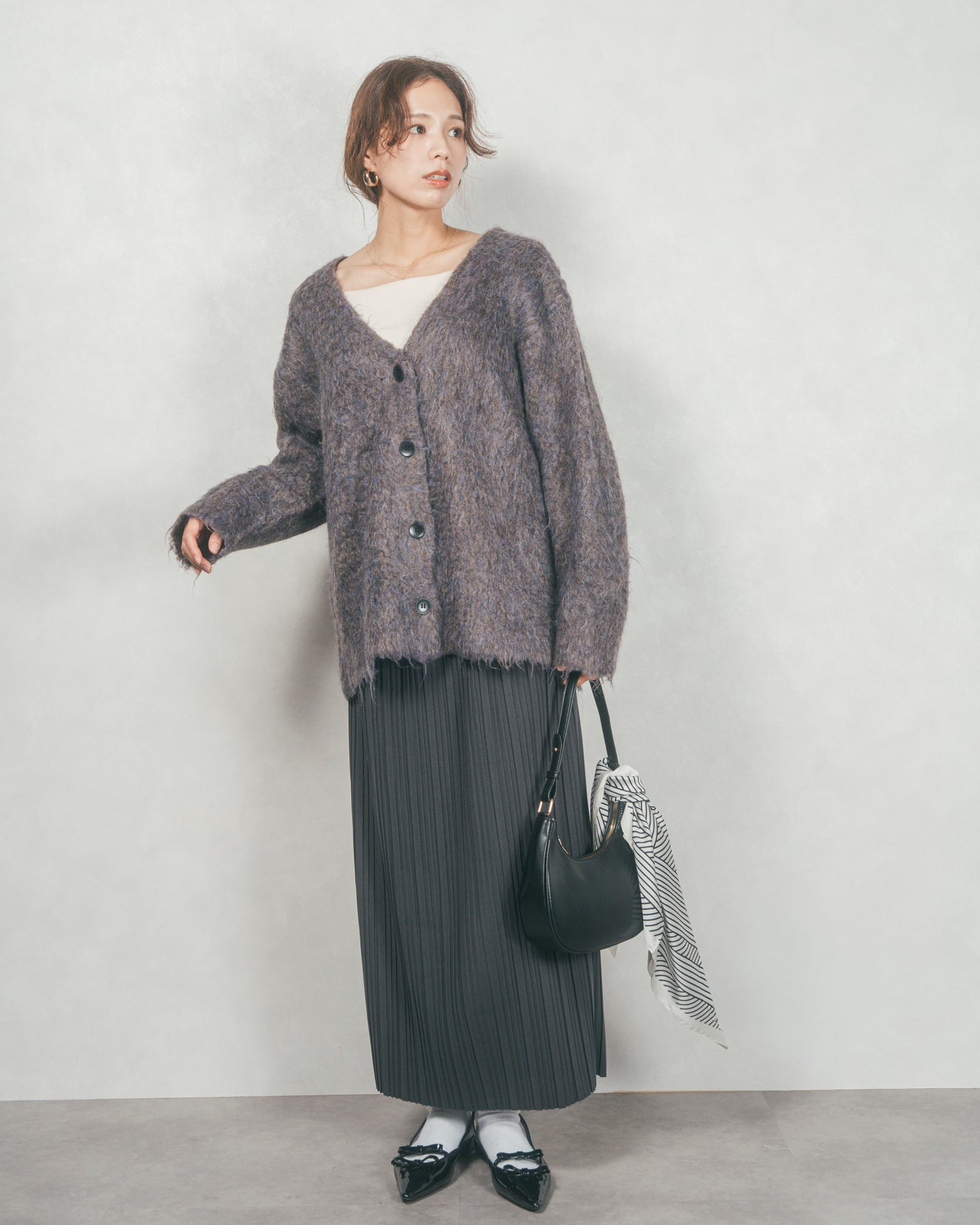 [SET]Airyフェザー ニットカーディガン+プリーツNarrowロングスカート(2SET)