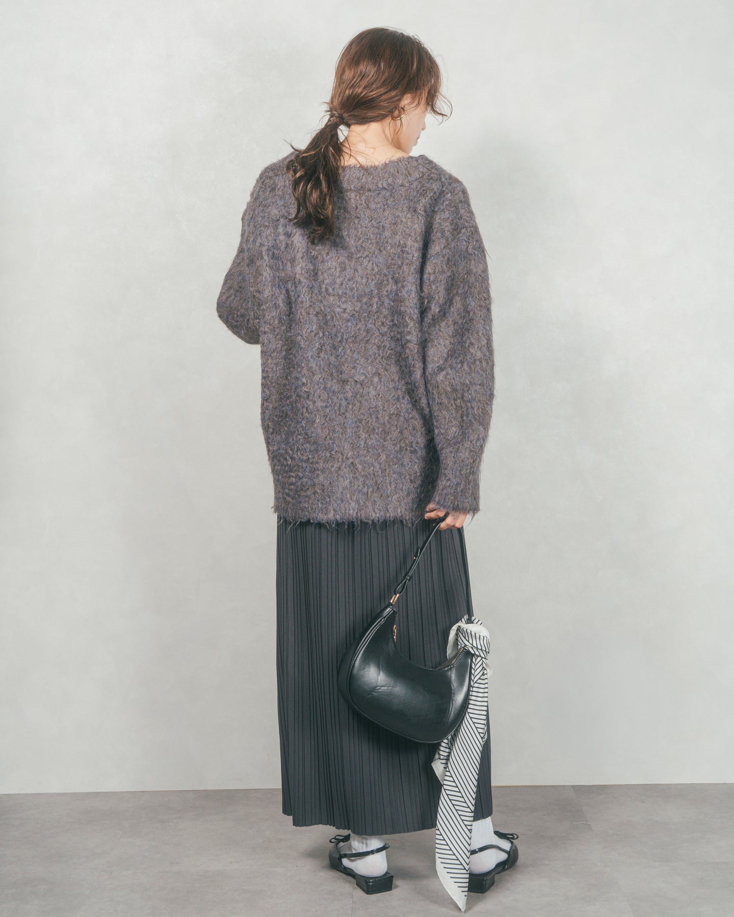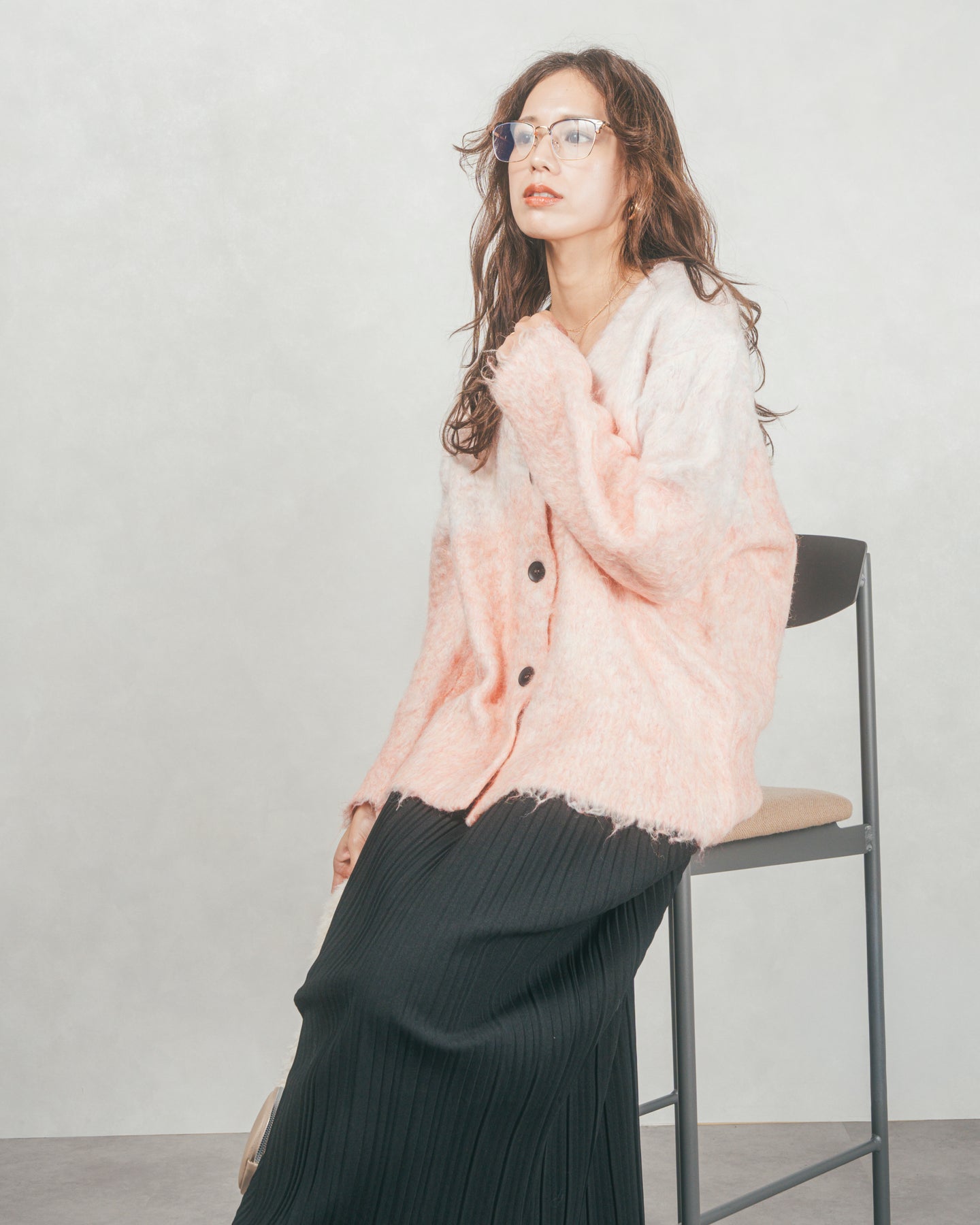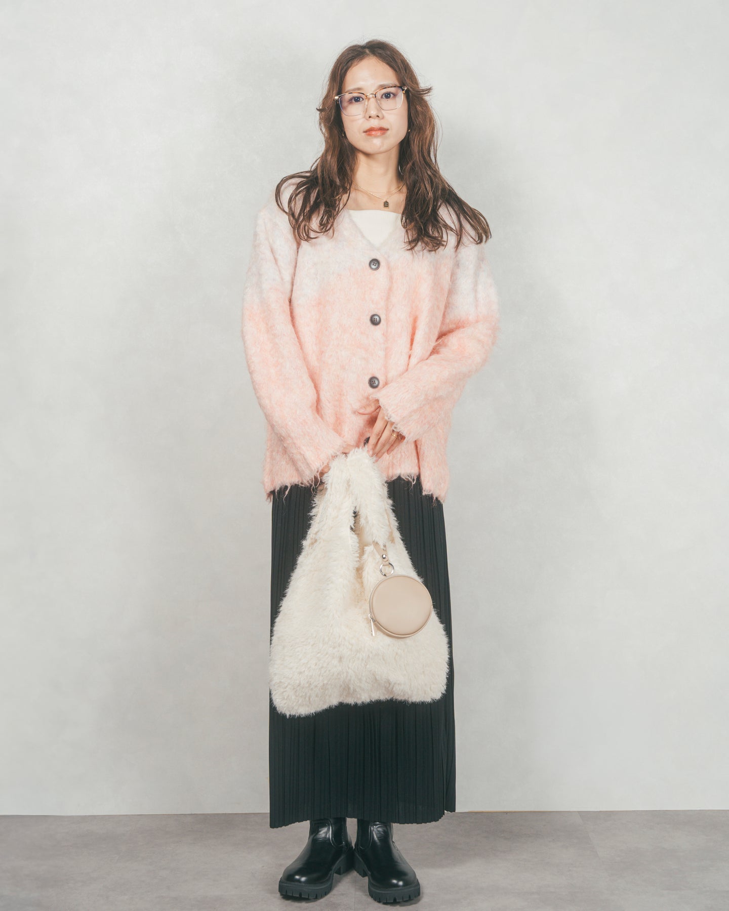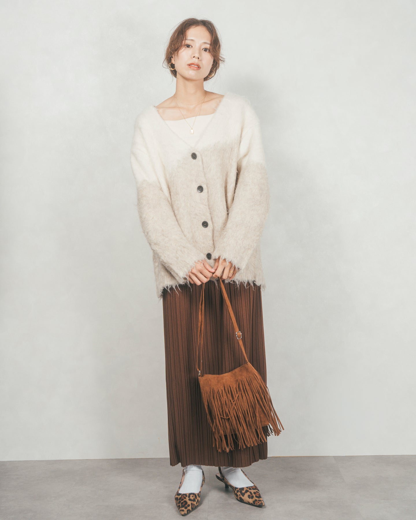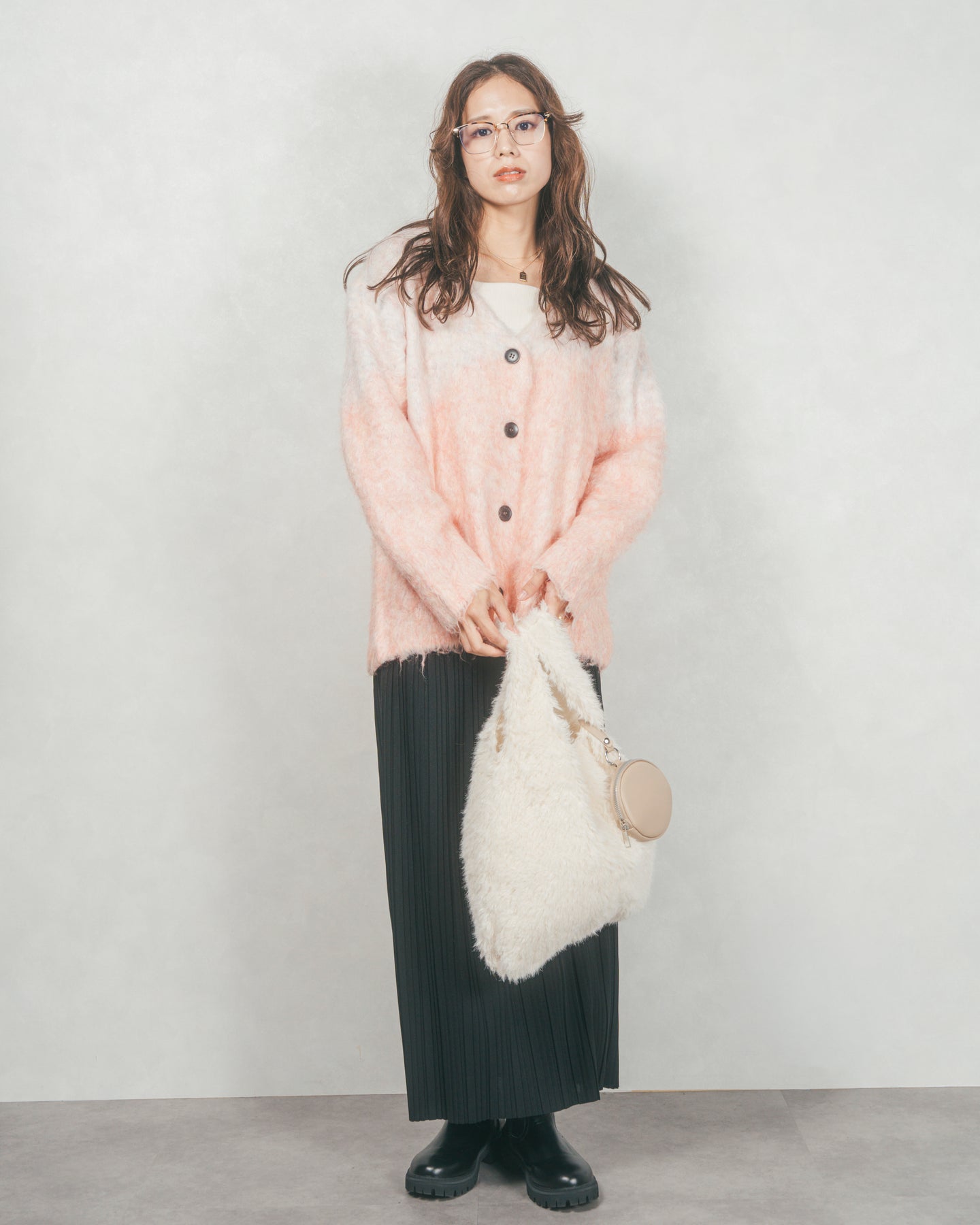 [SET]Airyフェザー ニットカーディガン+プリーツNarrowロングスカート(2SET)