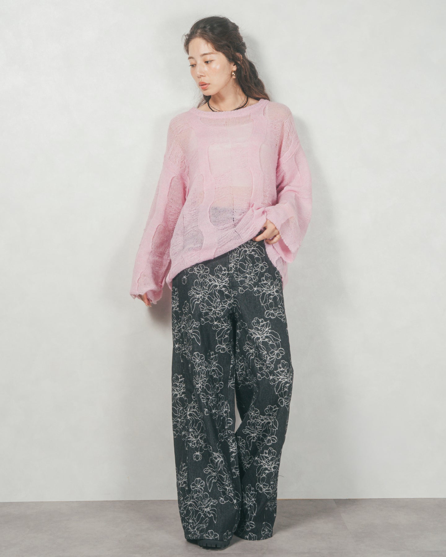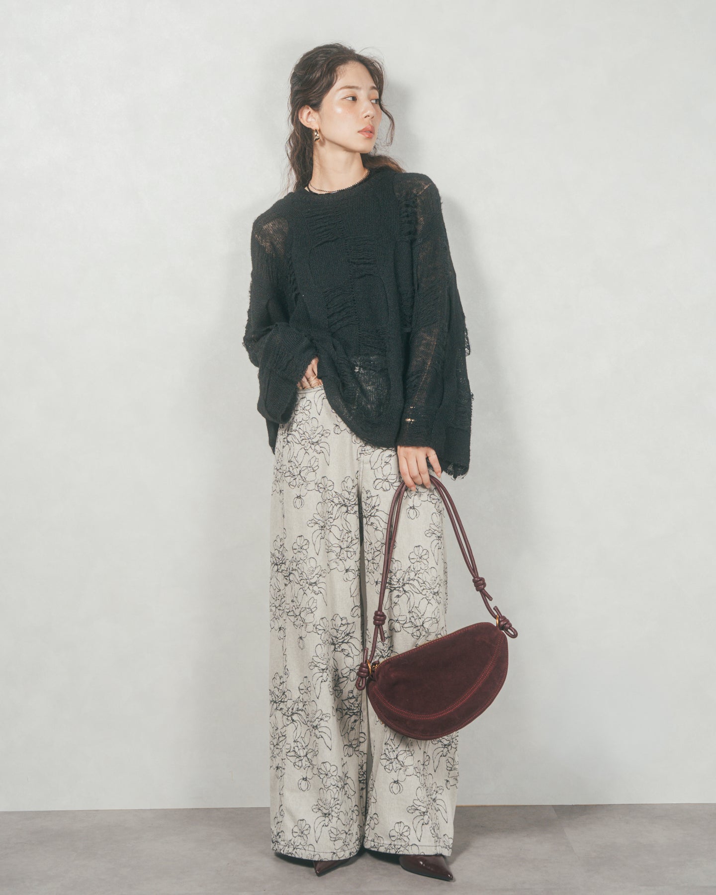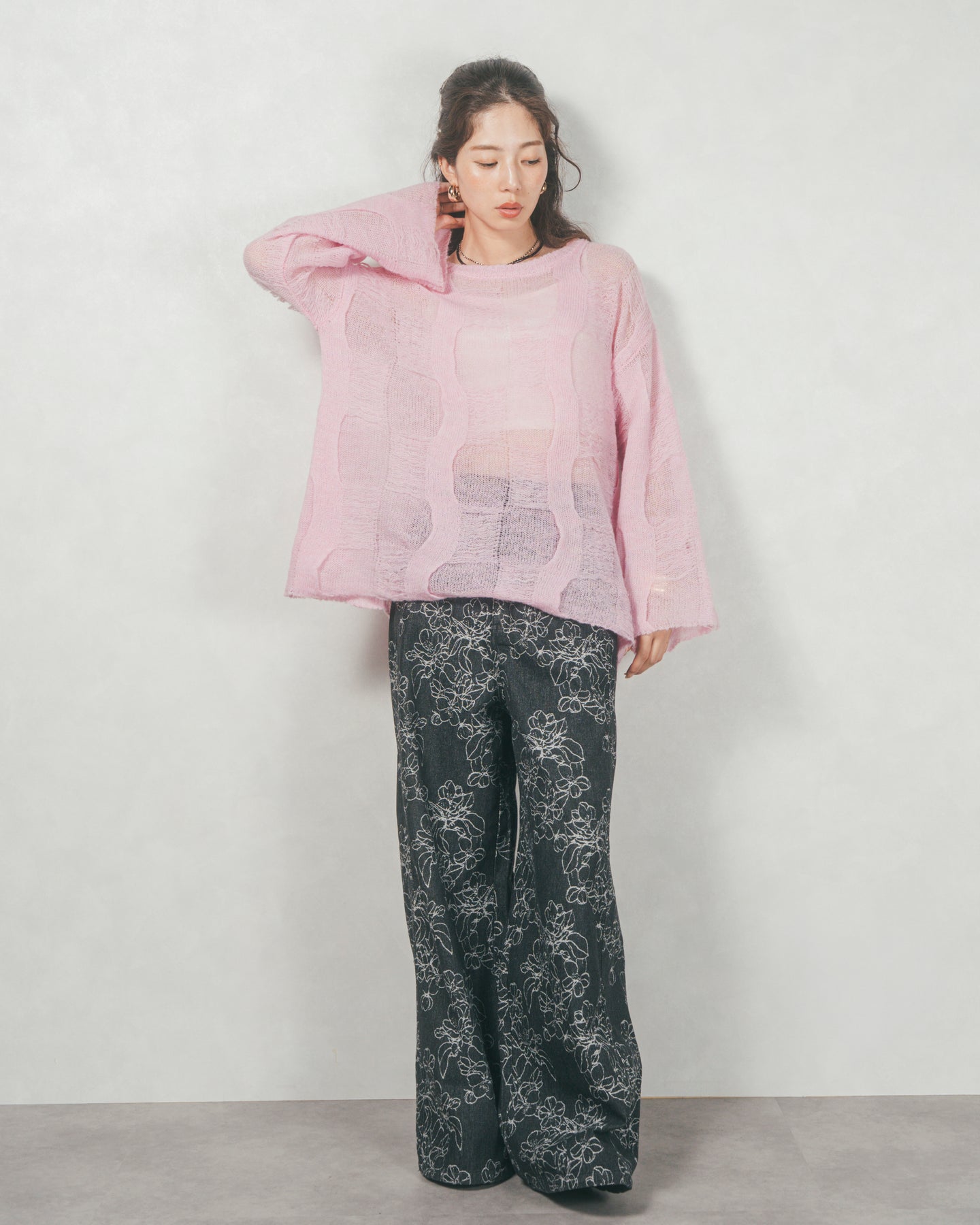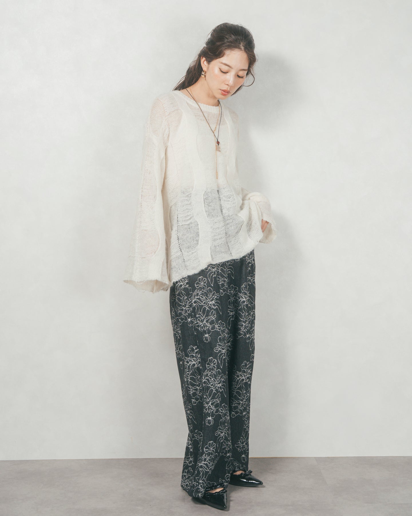 [SET]コージーオーバーサイズニット+フラワージャガードデニム(2SET)