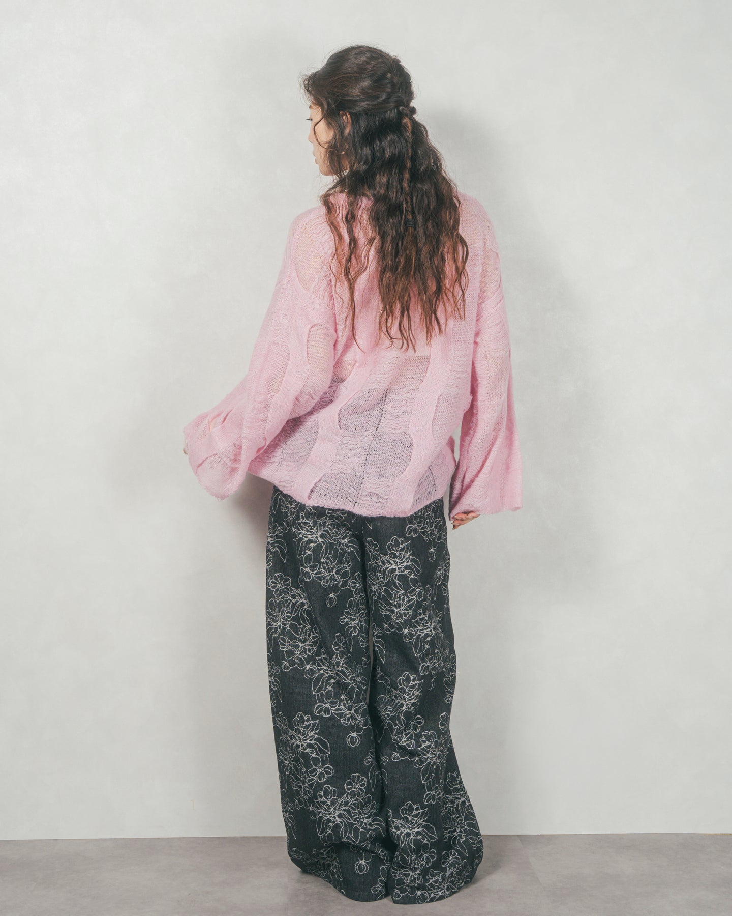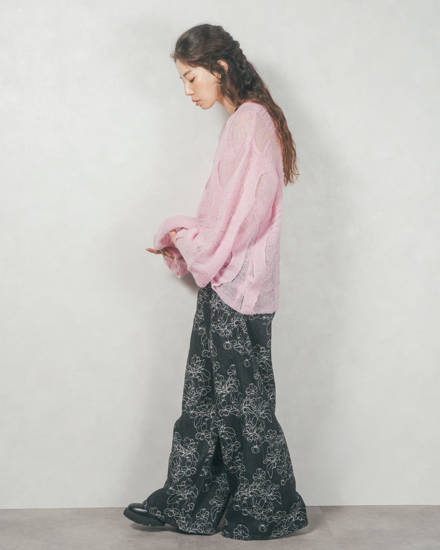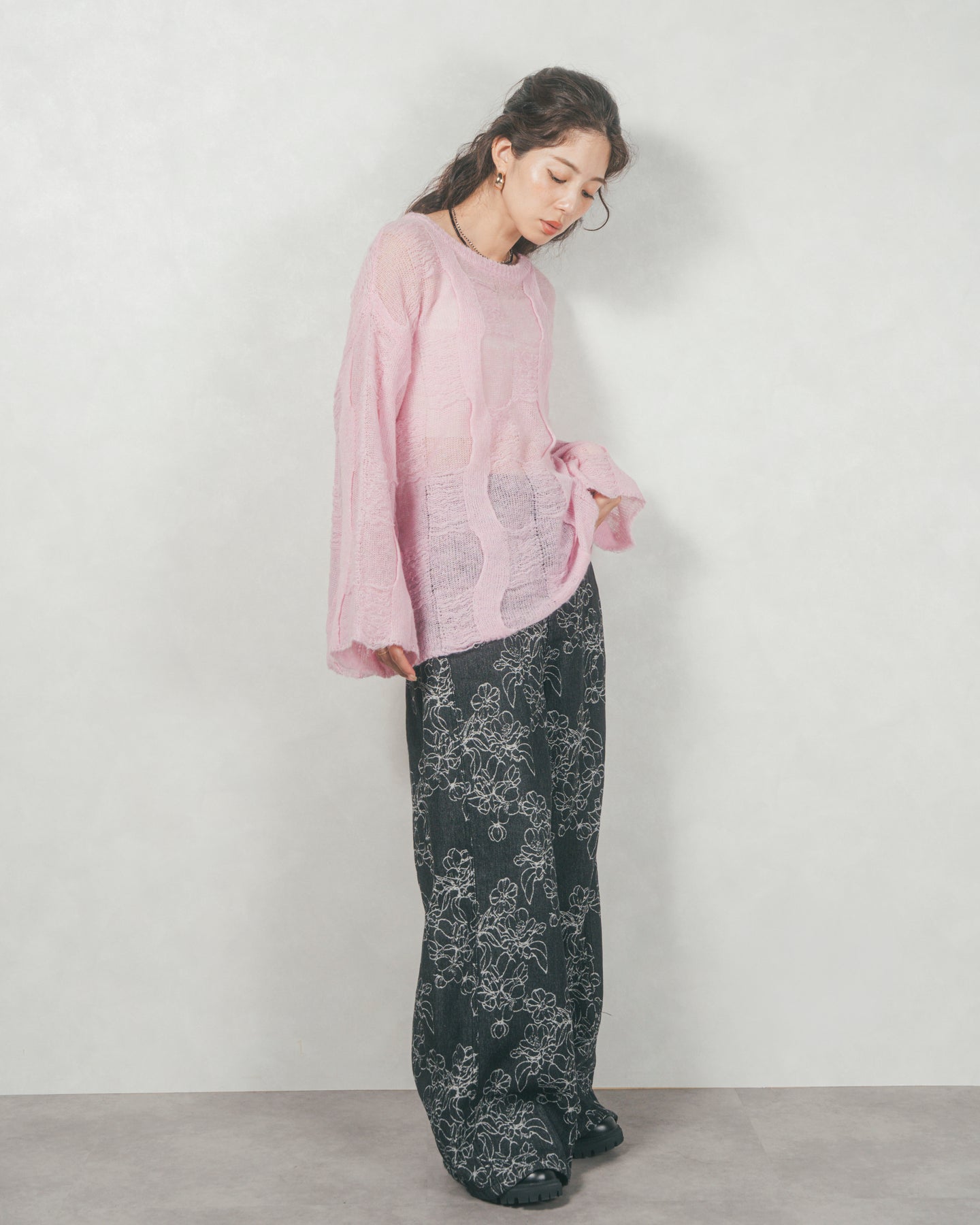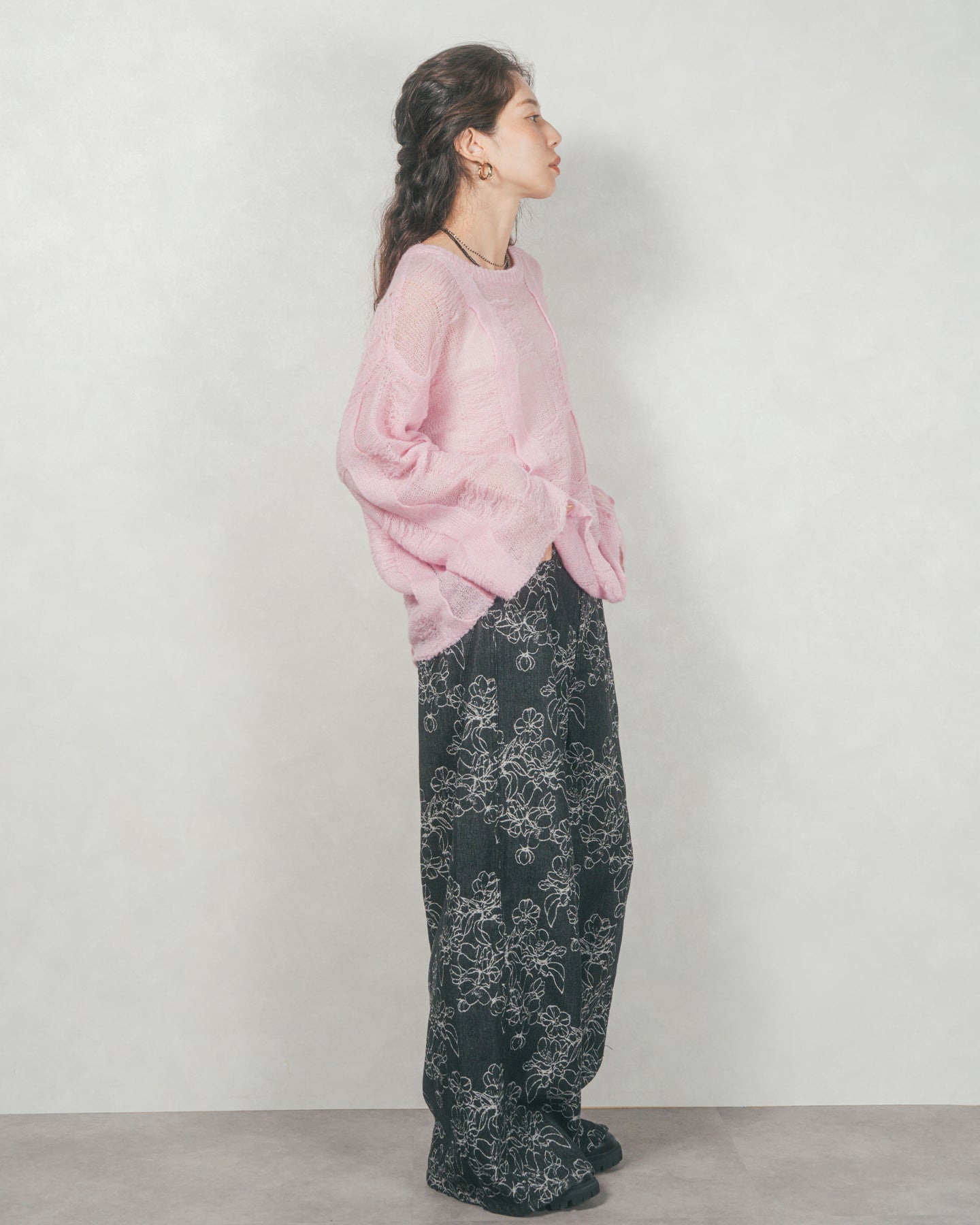 [SET]コージーオーバーサイズニット+フラワージャガードデニム(2SET)
