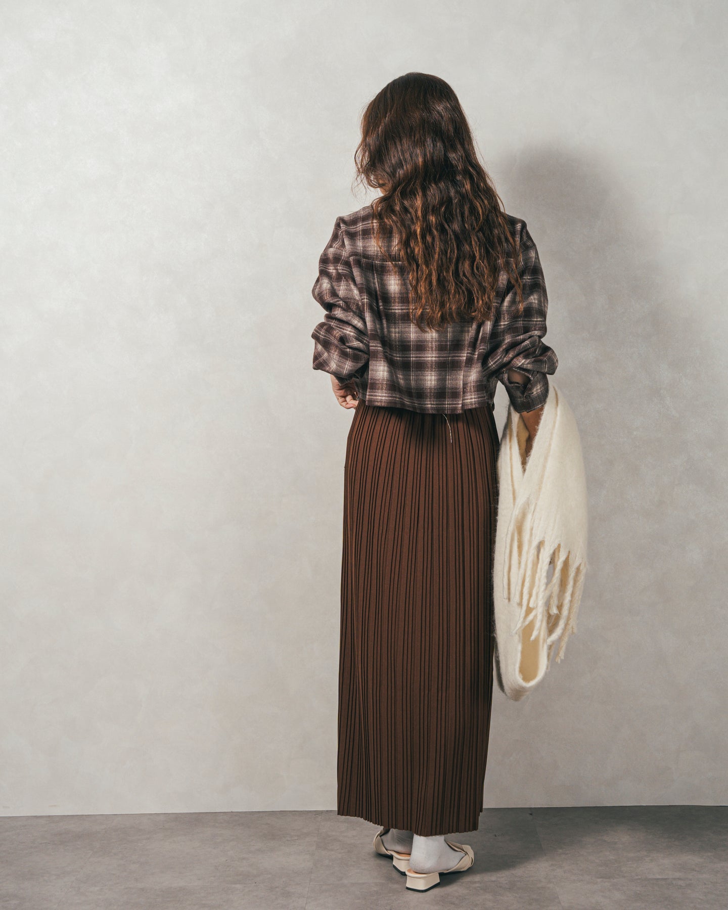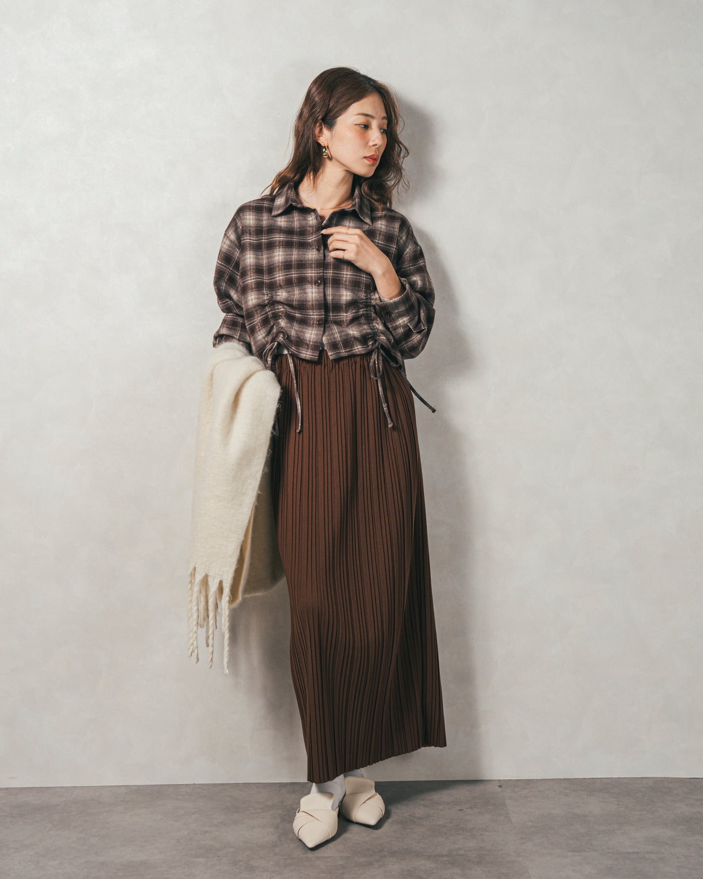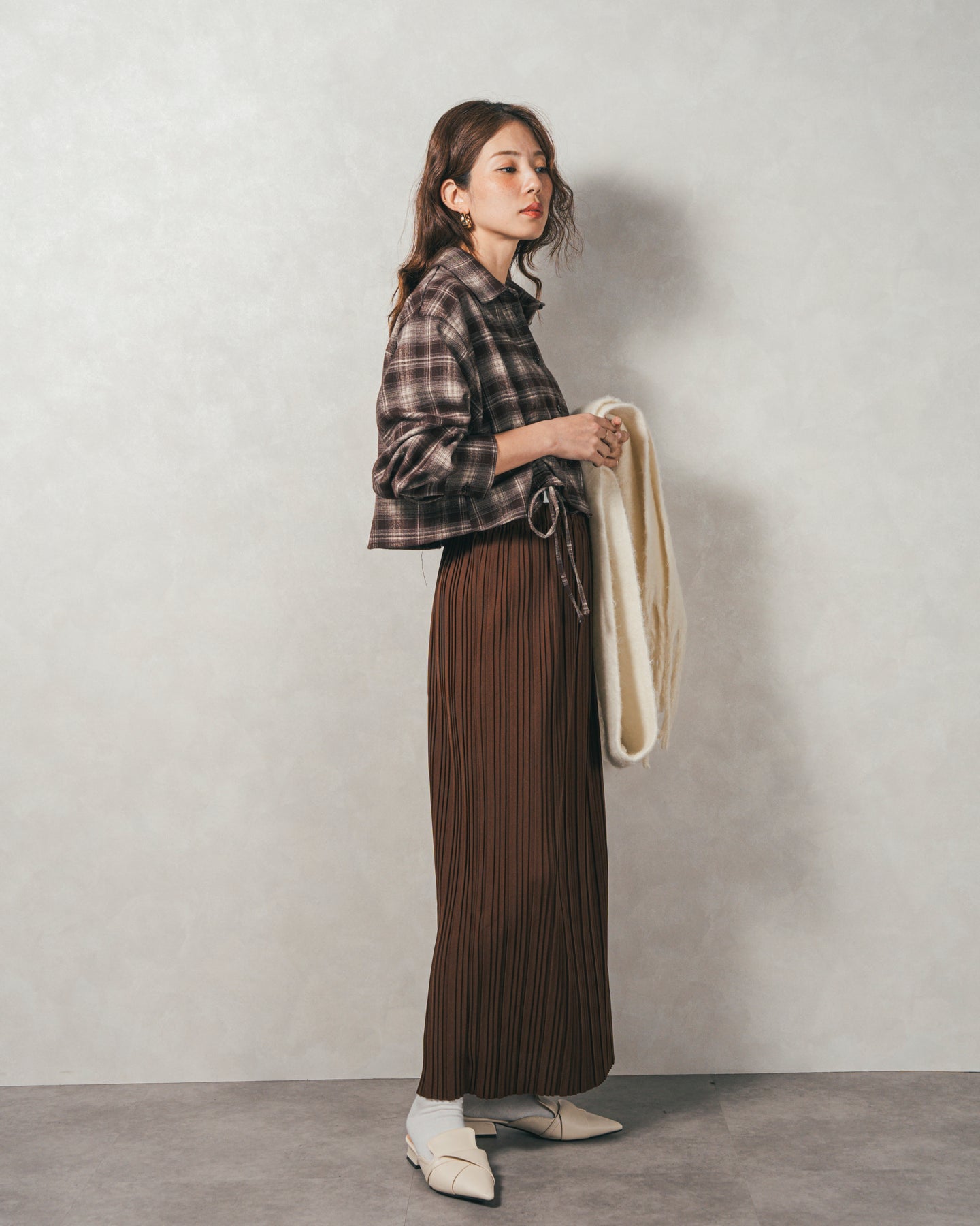 秋冬の着こなしにアクセントをプラスする、細プリーツスカート