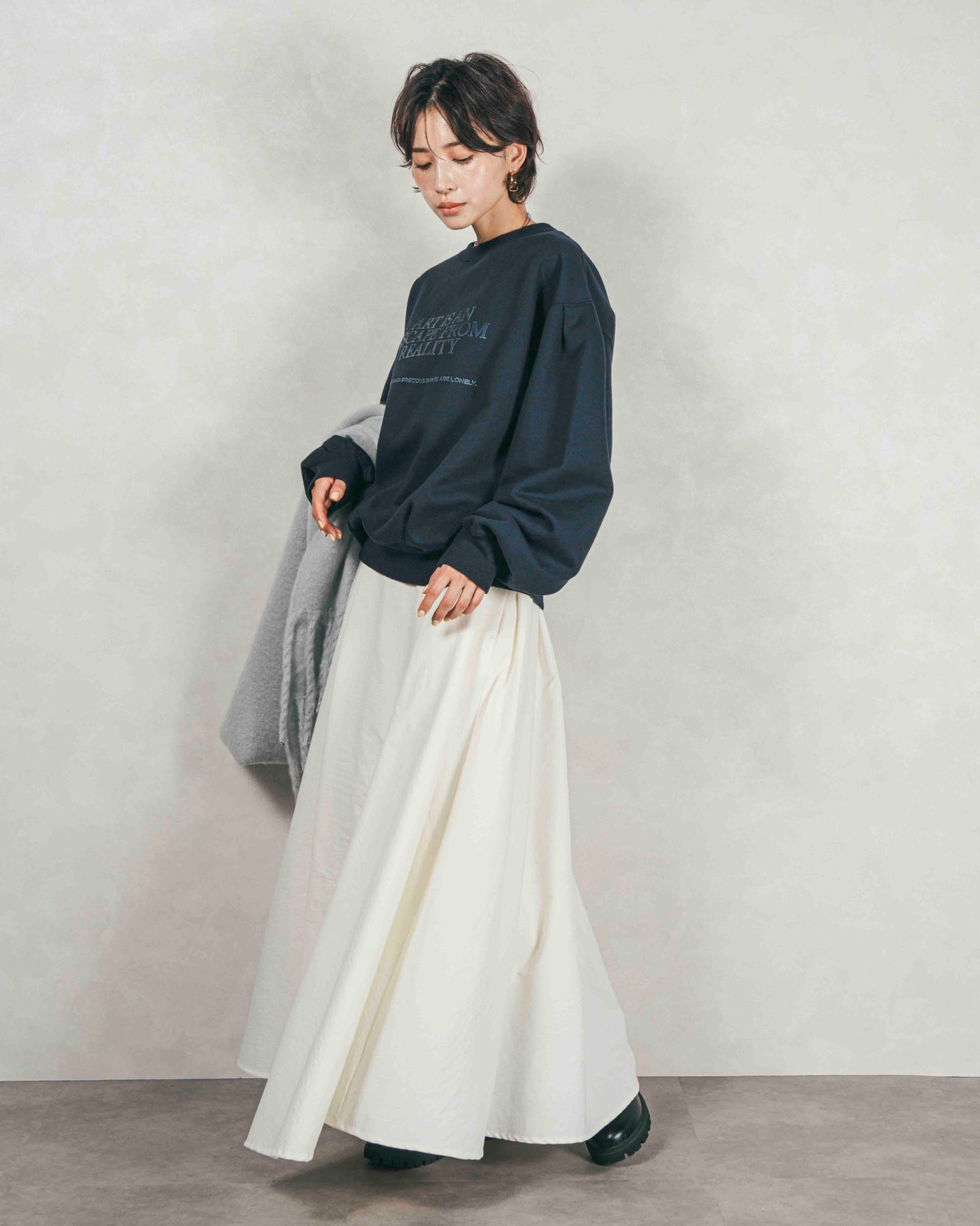 [SET]裏起毛フロッキーLogoスウェット+アシメFlareタックスカート(2SET)