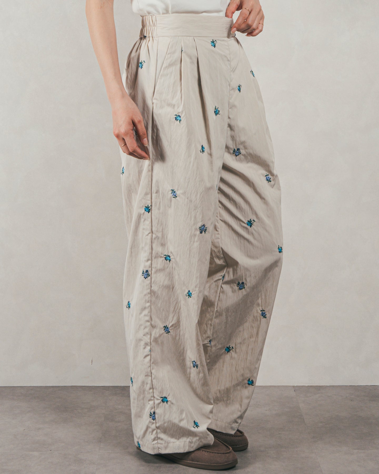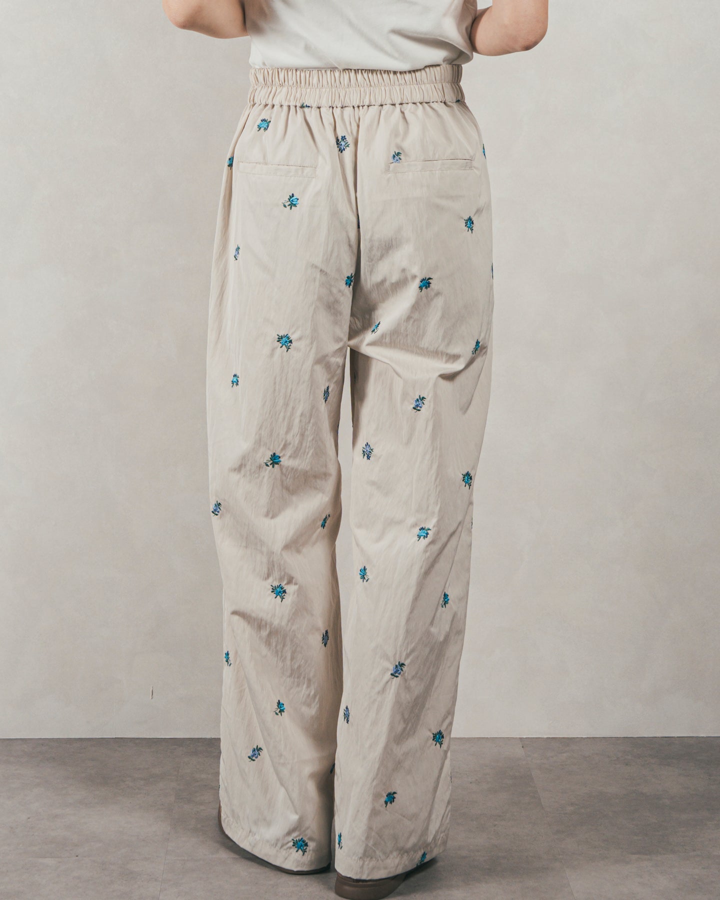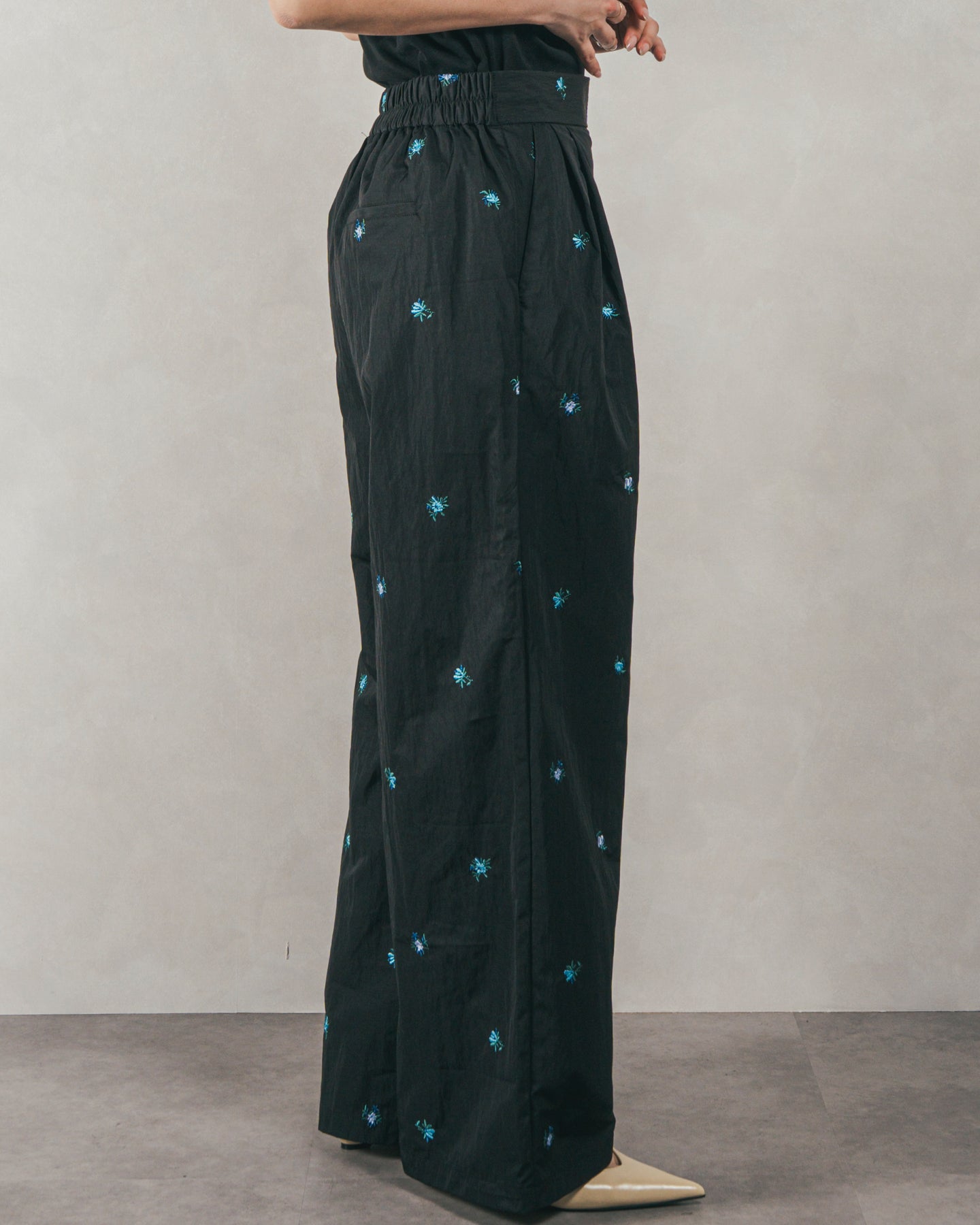 ・Flower刺繍 タックパンツ