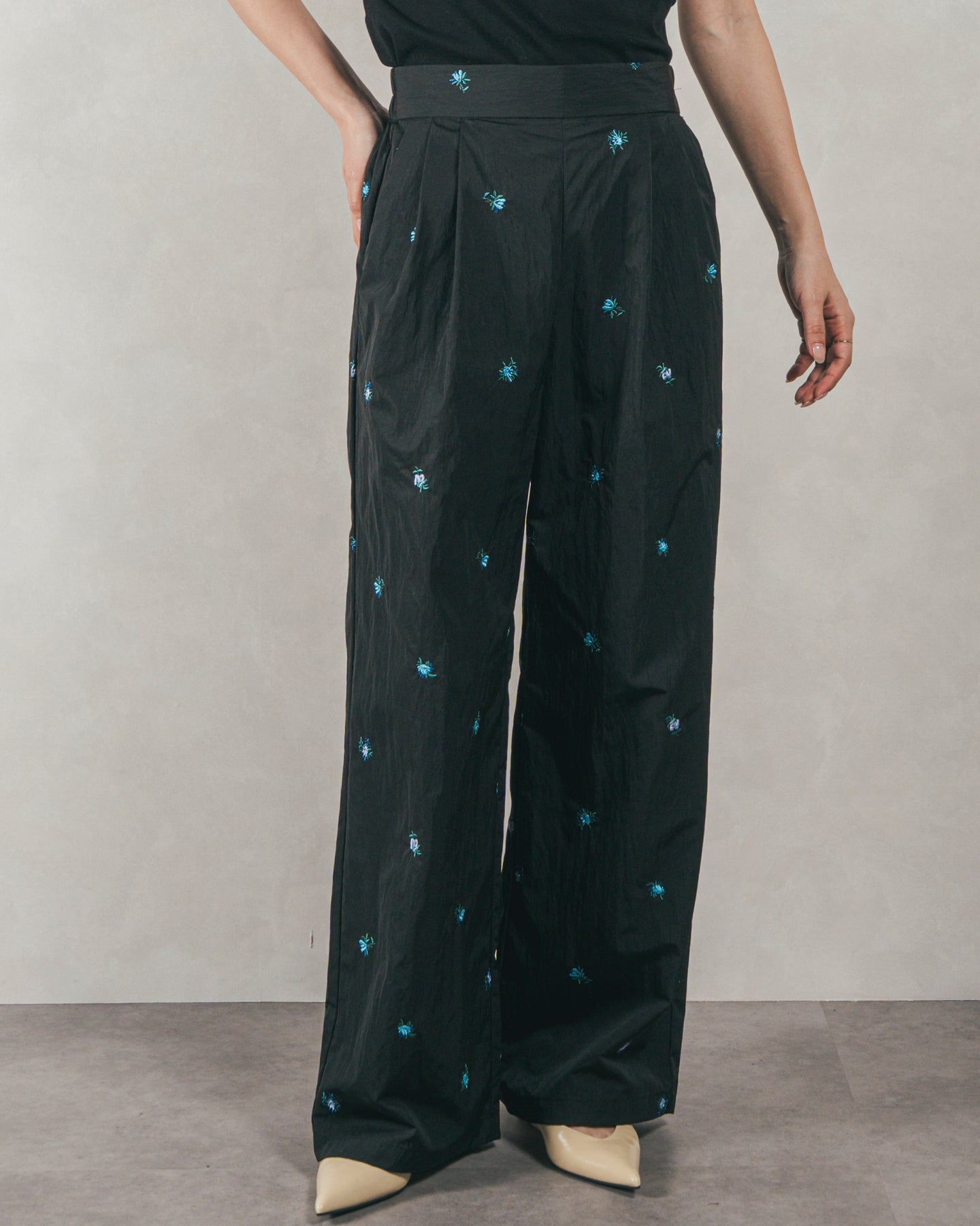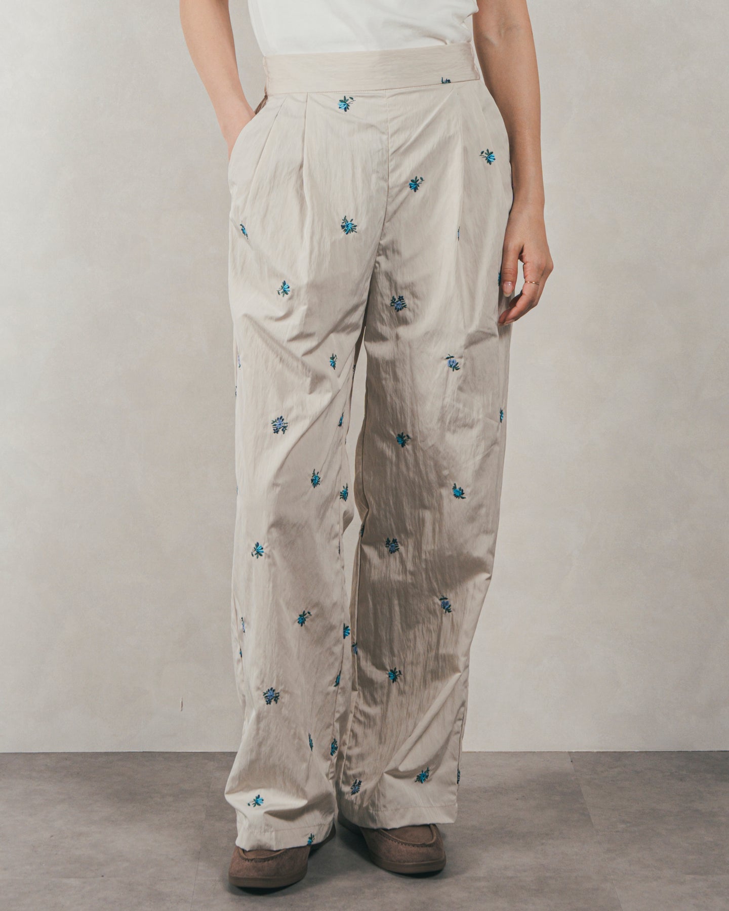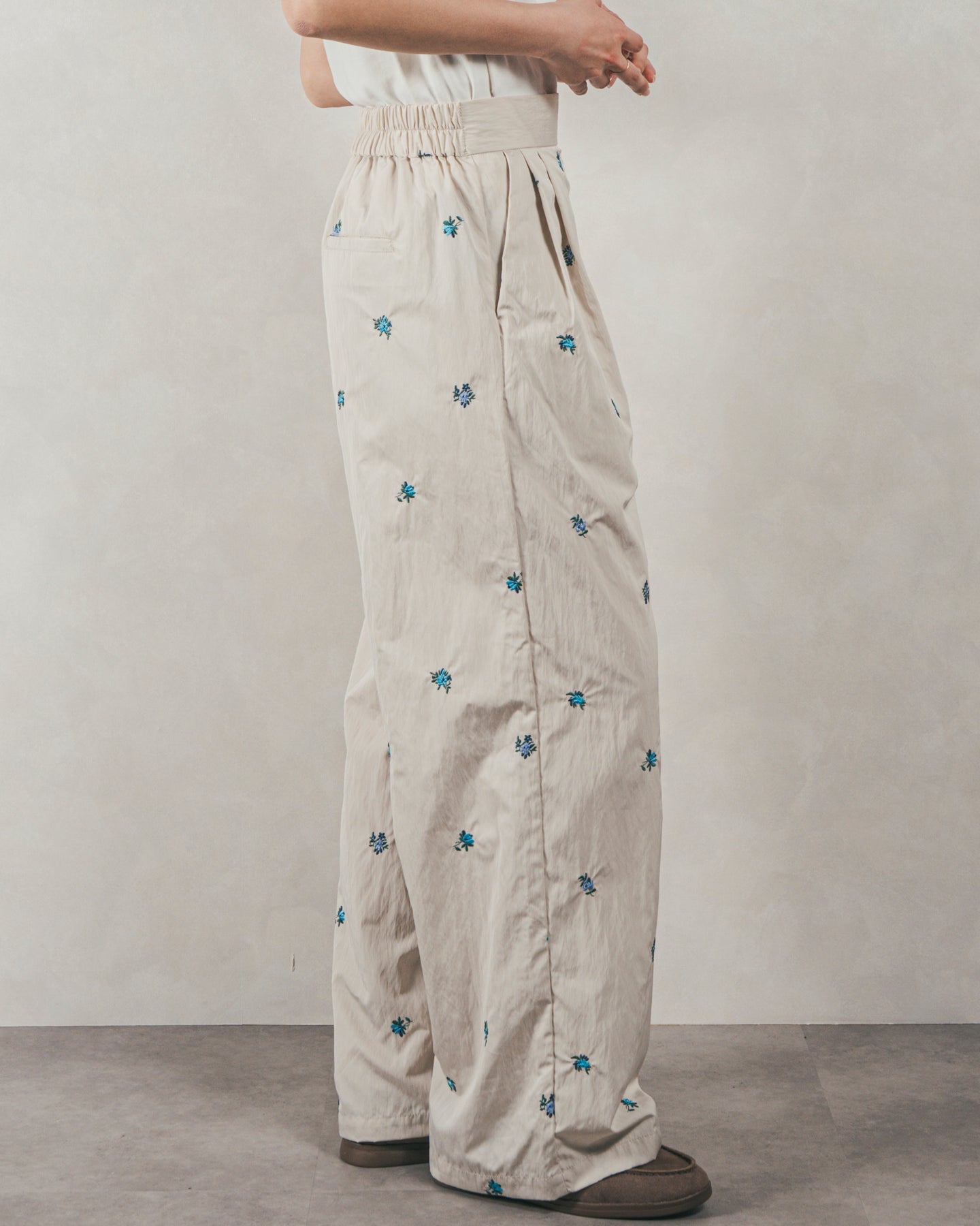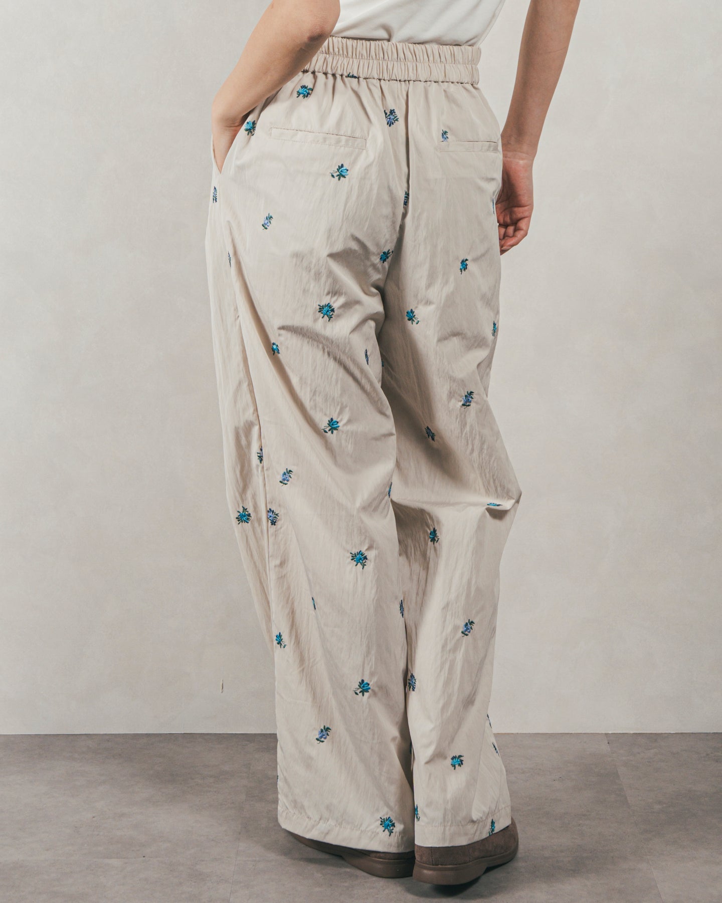 ・Flower刺繍 タックパンツ