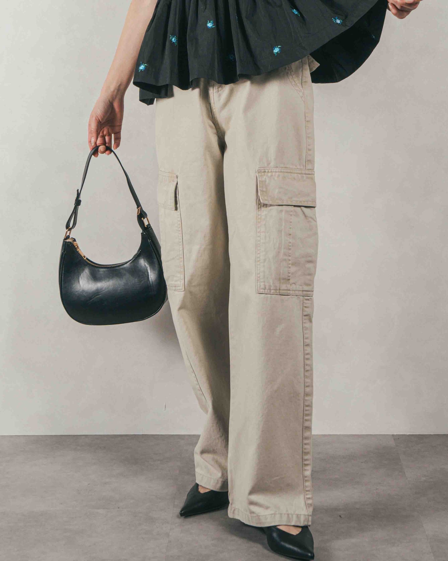 ディテールにこだわりが光る、レディーライクなシルエットのカーゴパンツ