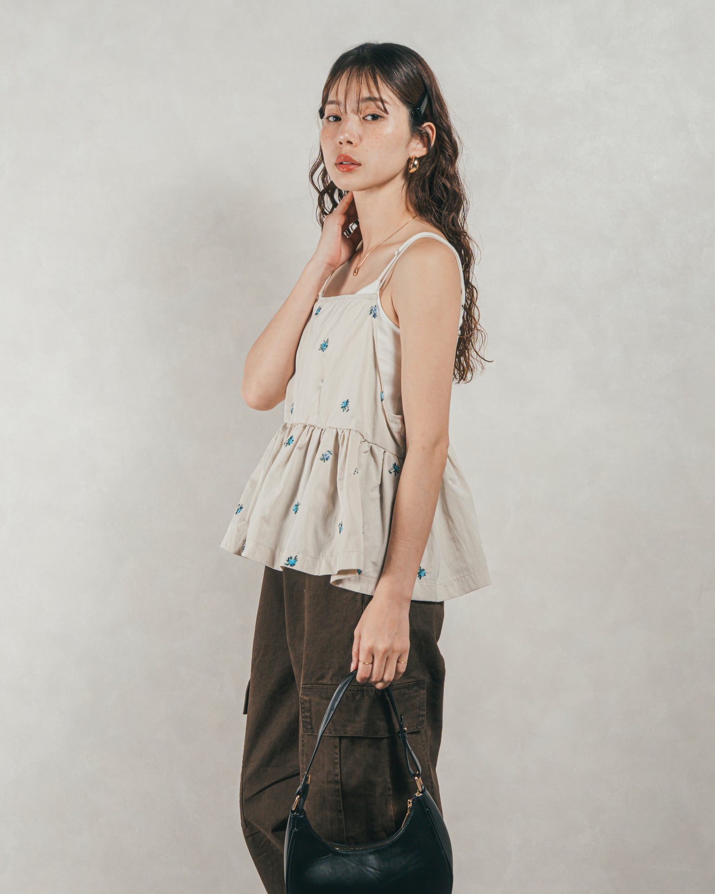 ・Flower刺繍 ボリュームキャミ