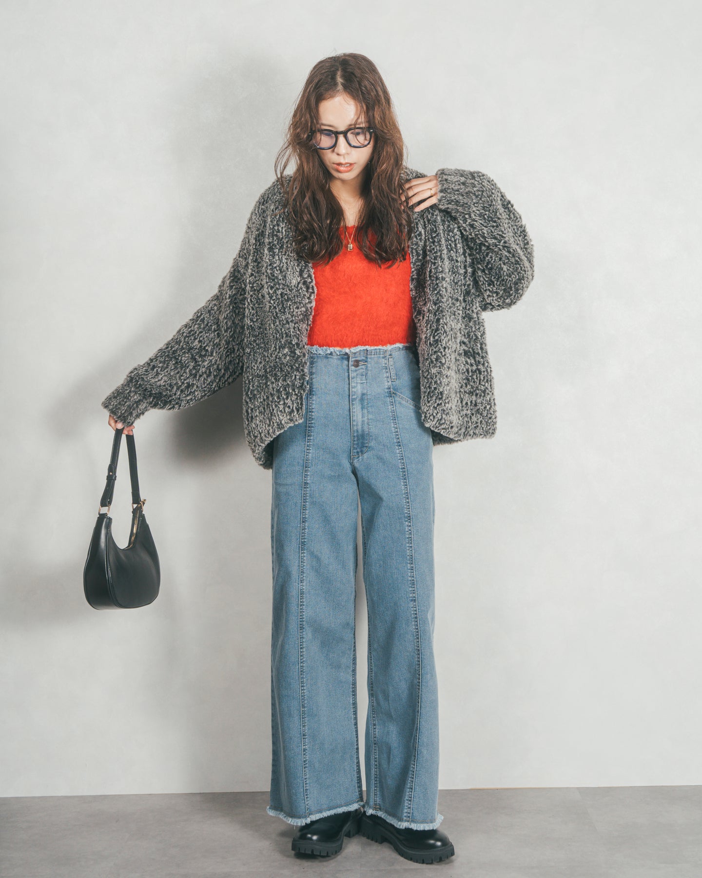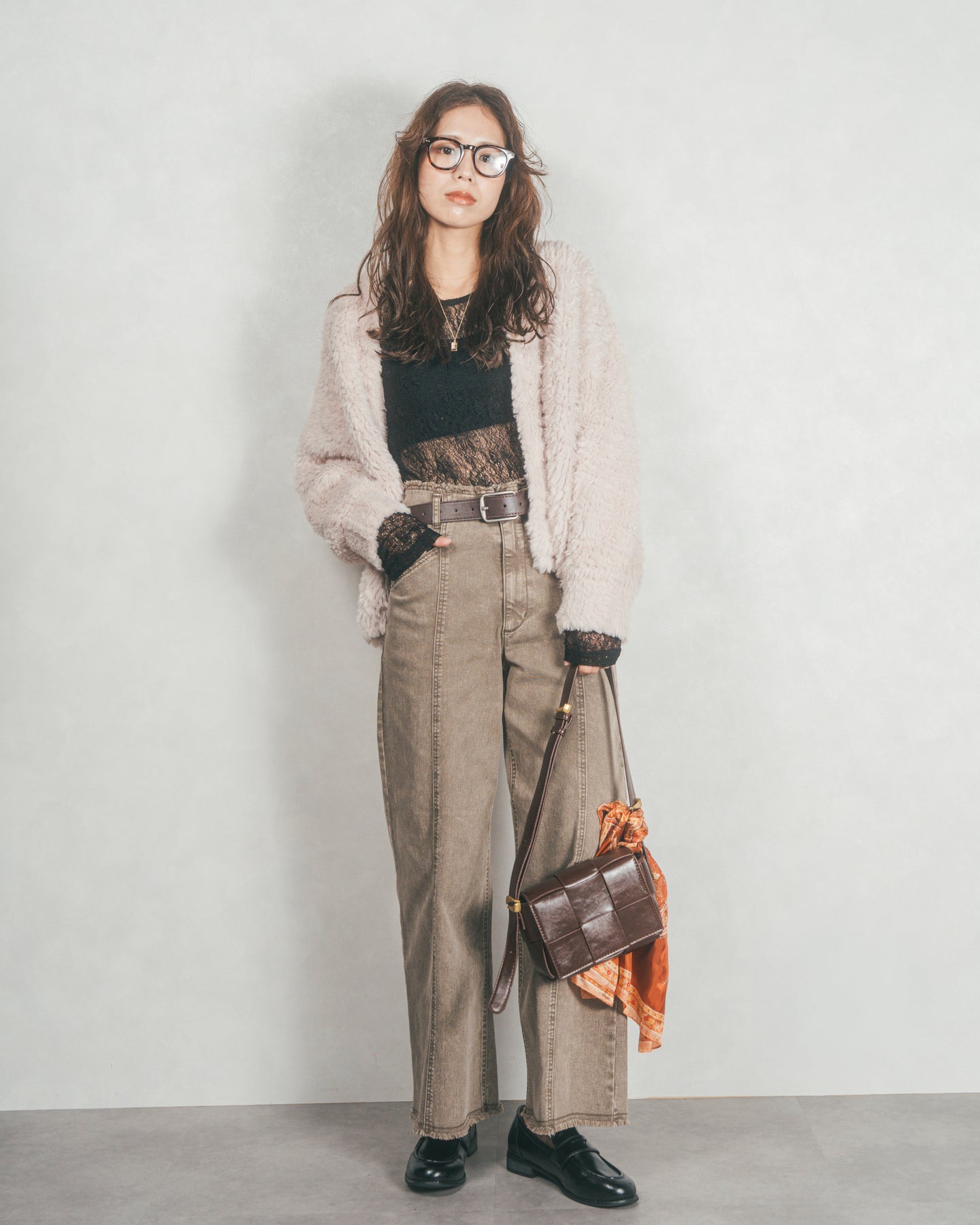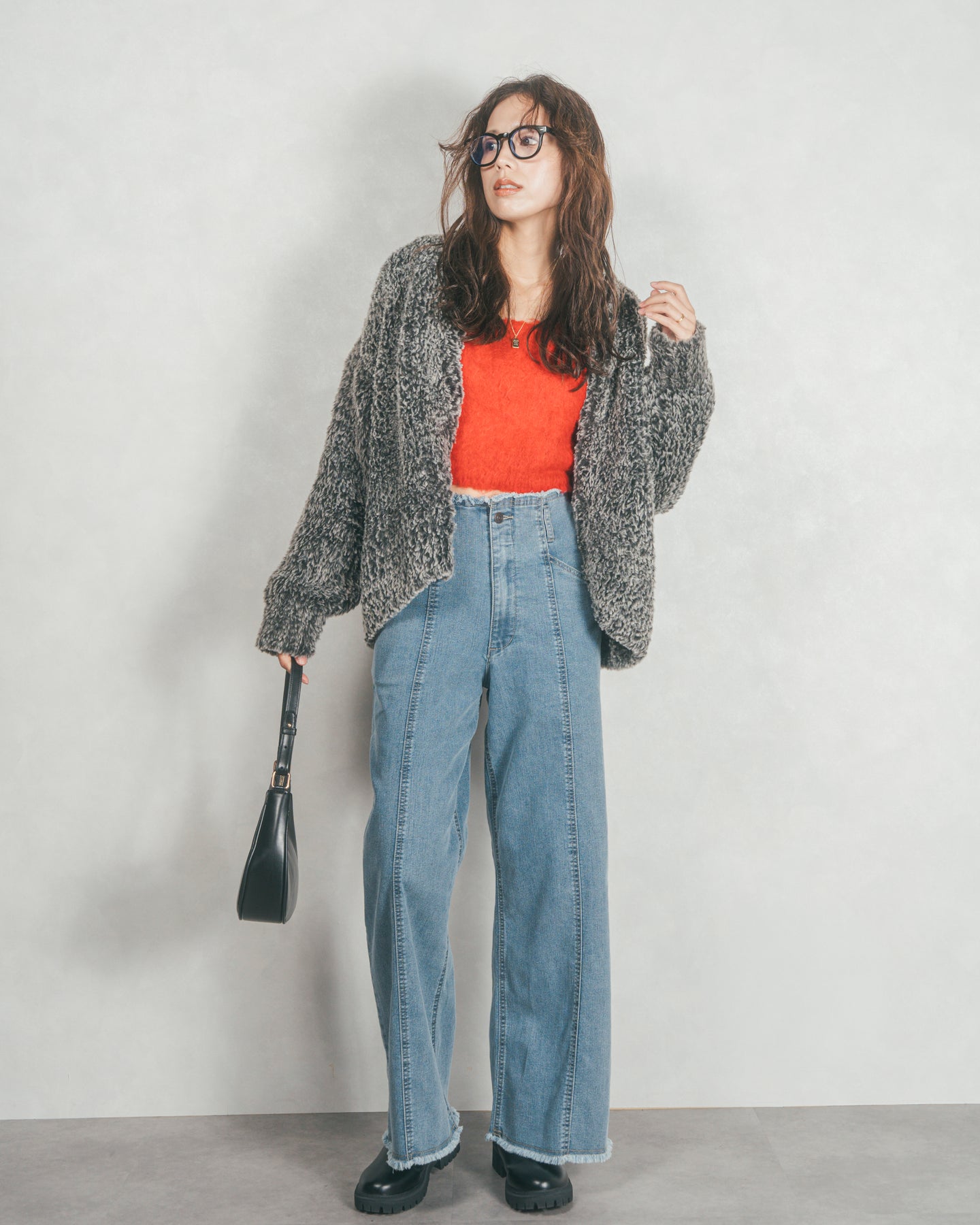 [SET]ファーニットLuxeカーデコート+センターシーム リラックスワイドデニム(2SET)