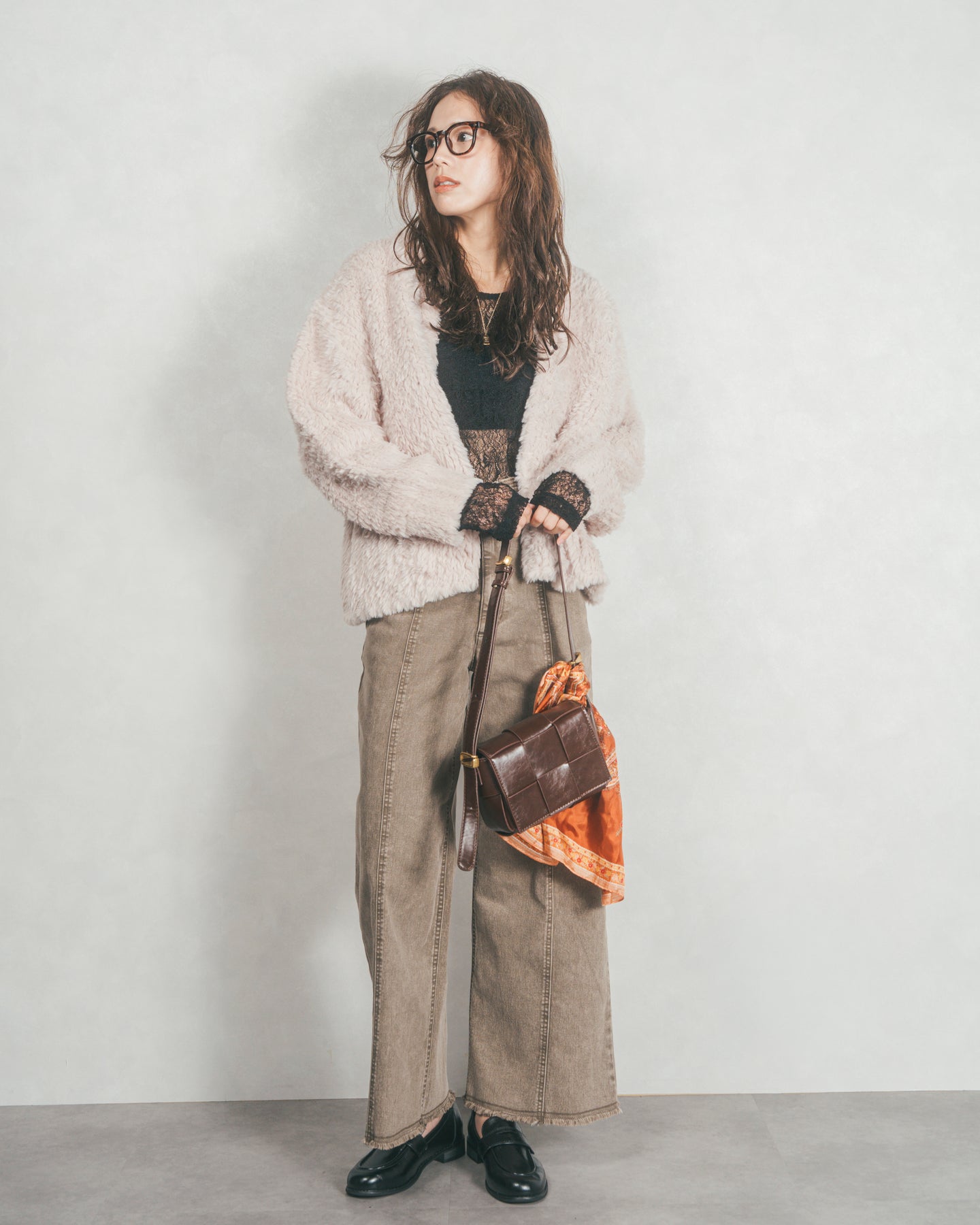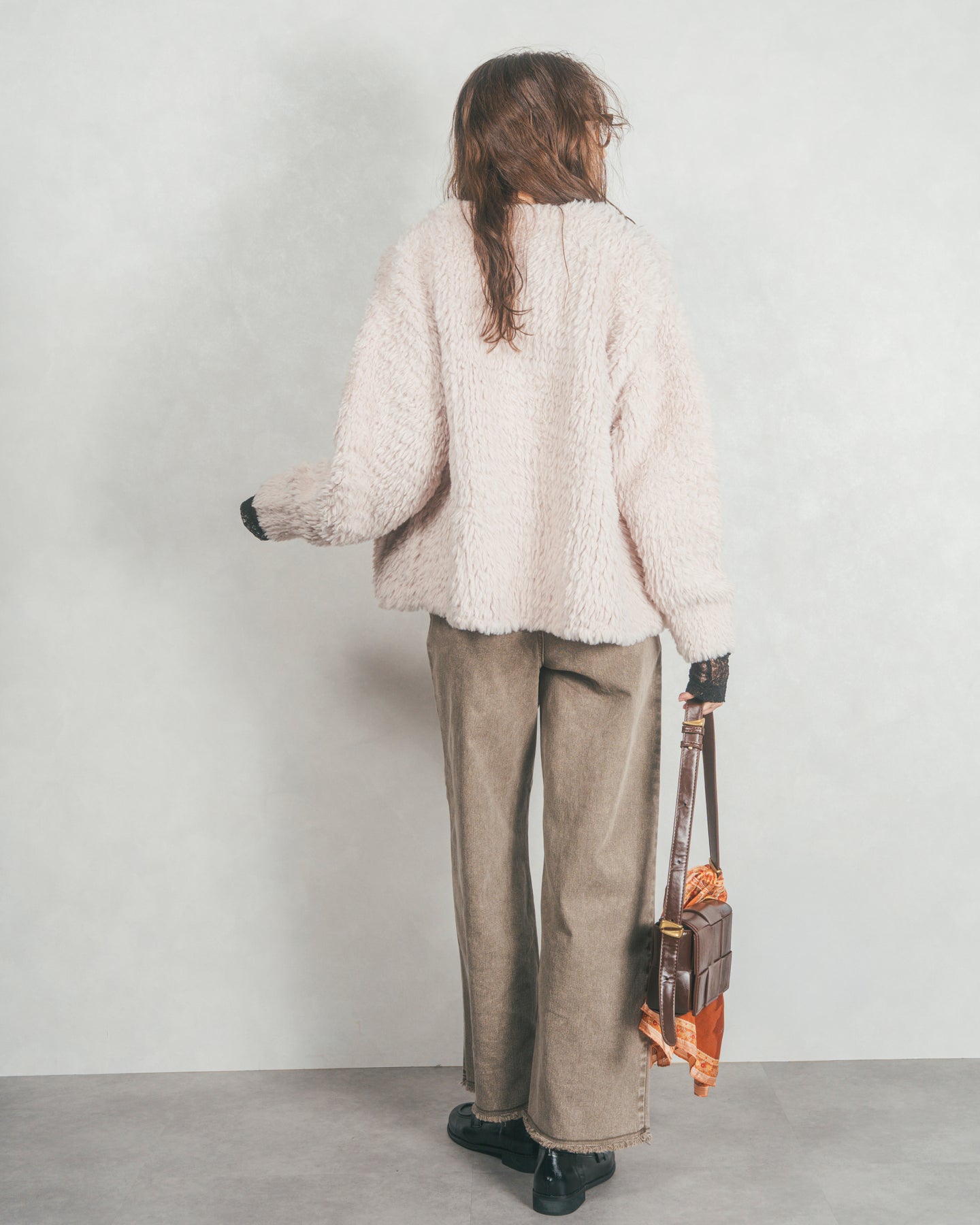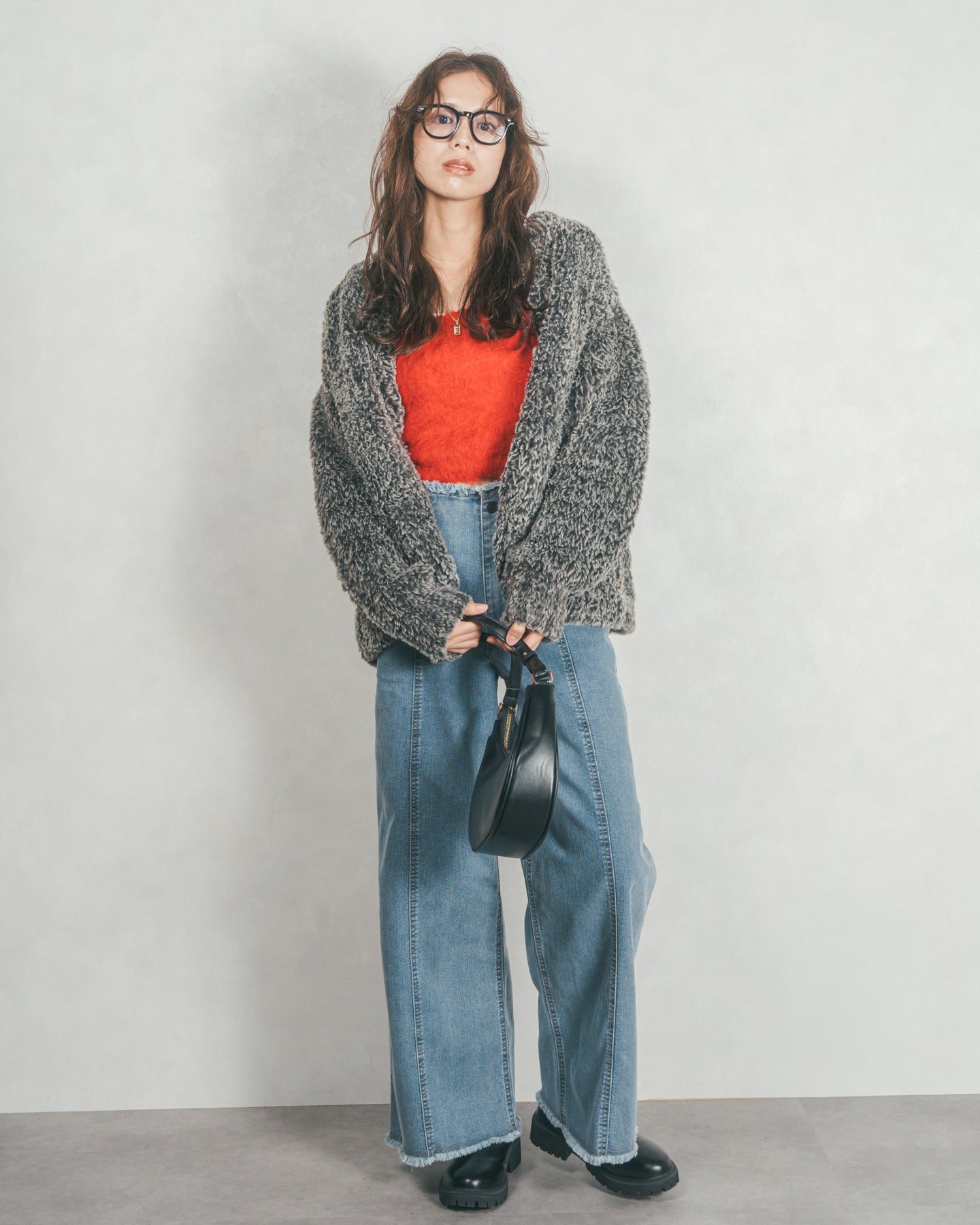 [SET]ファーニットLuxeカーデコート+センターシーム リラックスワイドデニム(2SET)