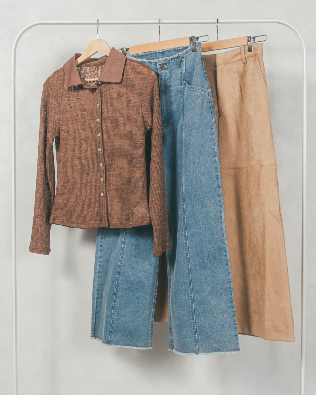 [SET]リラックスサマーニットタンク+ハクデザインカーブデニム(2SET)