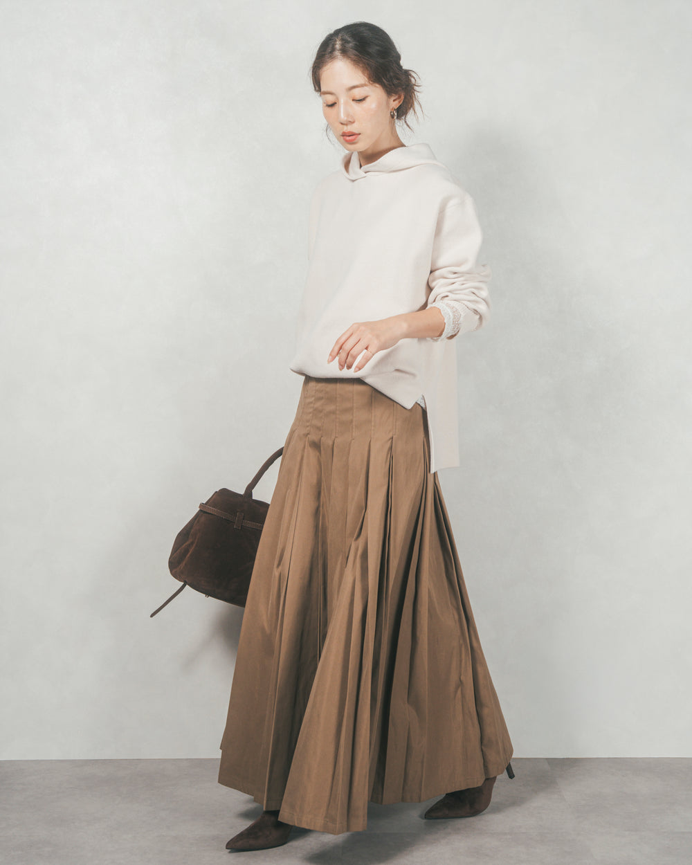 上品なチェックの色味が、大人のカジュアルスタイルにぴったりのマキシスカート。たっぷり布地を使っあフレアなので、歩くたびに揺れて存在感あるコーデに仕上がります。どんなトップスとも相性が良く、日常からお出かけシーンまで幅広く活躍◎
