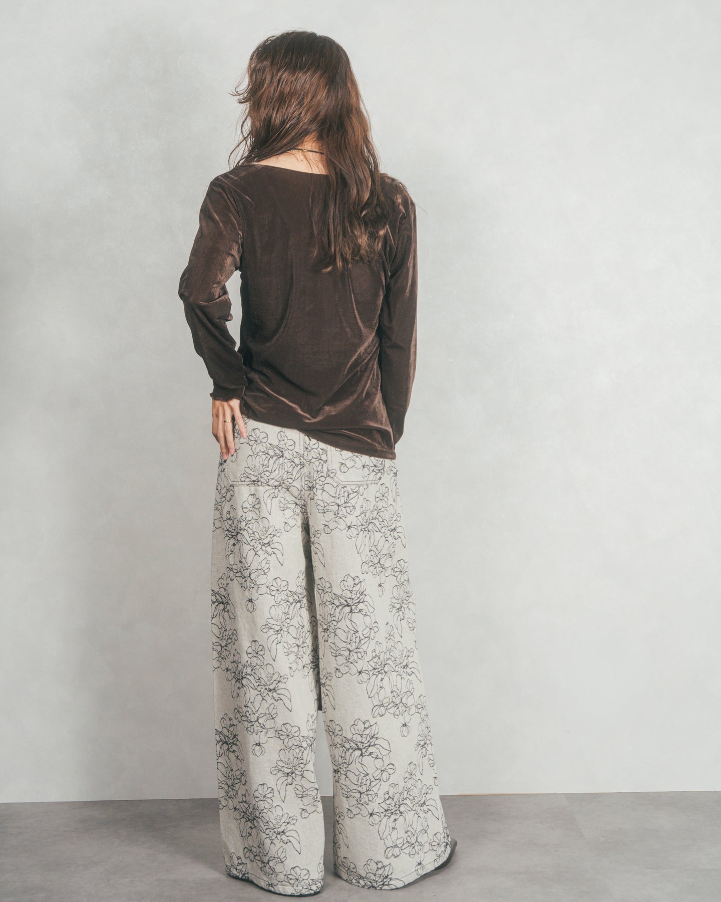 [SET]ベロア Vネックカーディガン+フラワージャガードデニム(2SET)