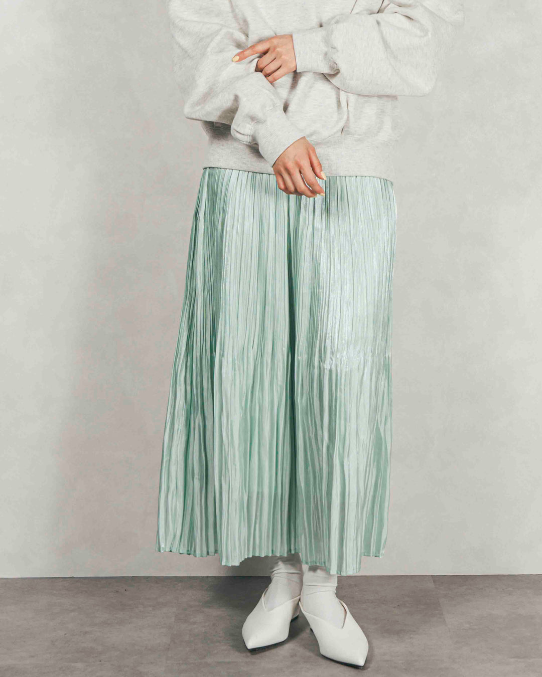 [SET]裏起毛フロッキーLogoスウェット+シャイニーサテンプリーツスカート(2SET)