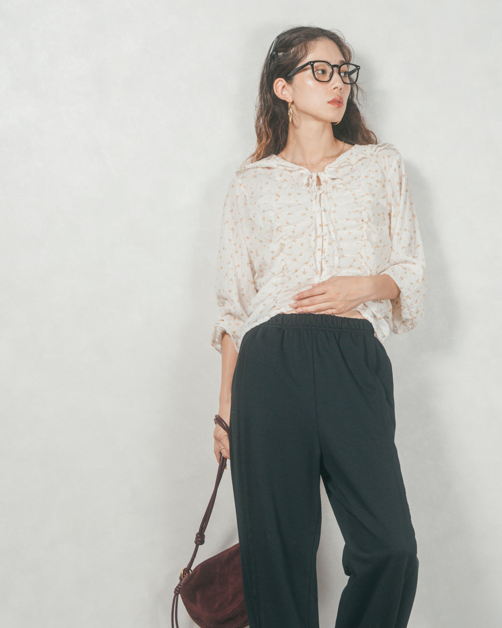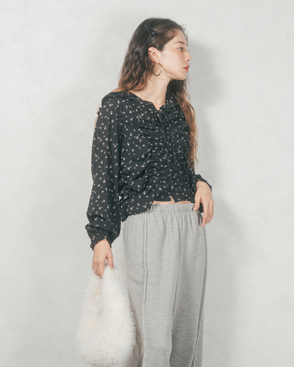 裾ドロストクロップドチェックシャツ (CINNAMON)