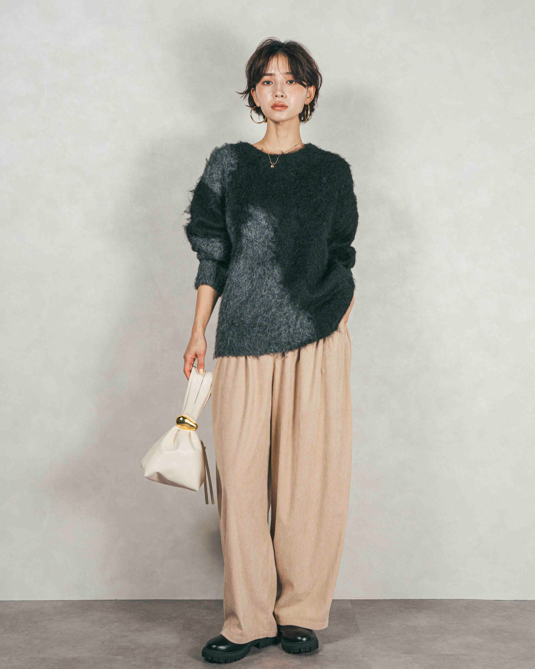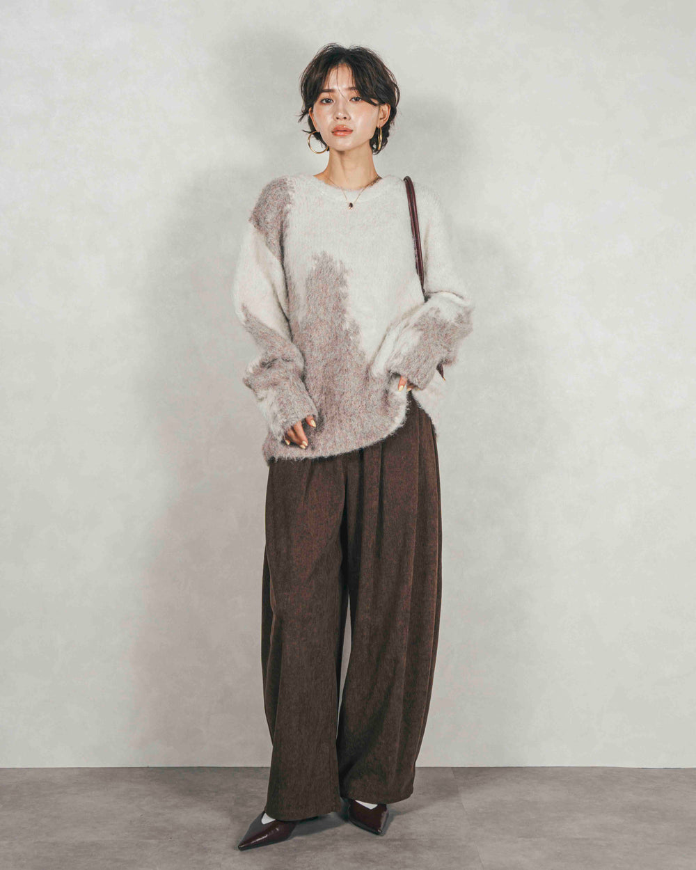 [SET]ニュアンスグラデーションShaggyニット+サイドタックコクーンコーデュロイパンツ(2SET)