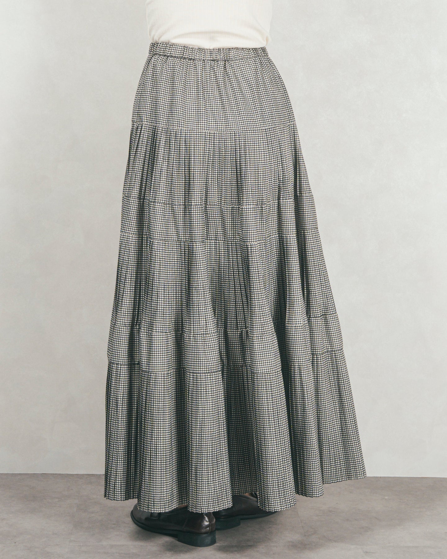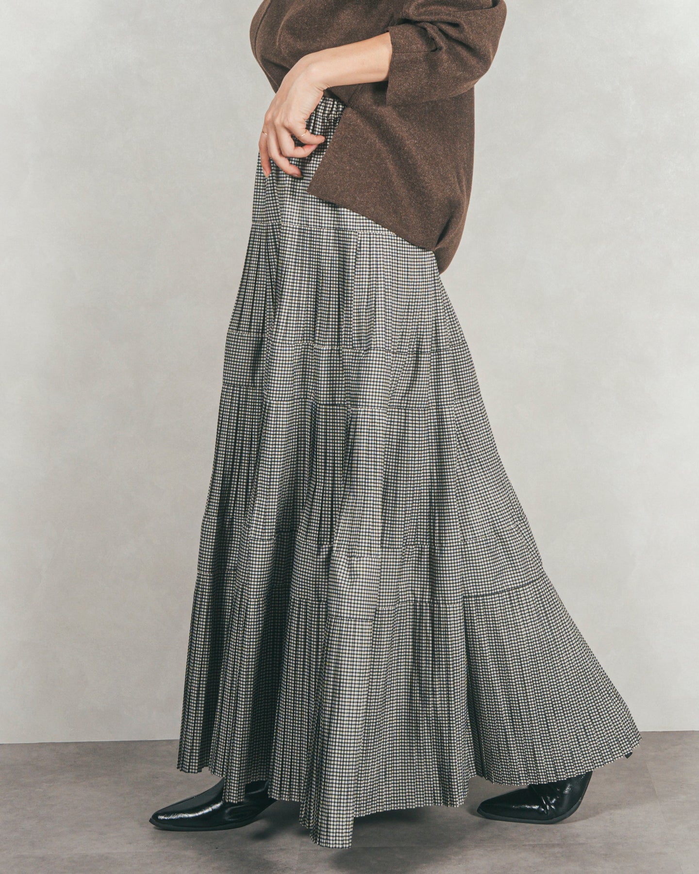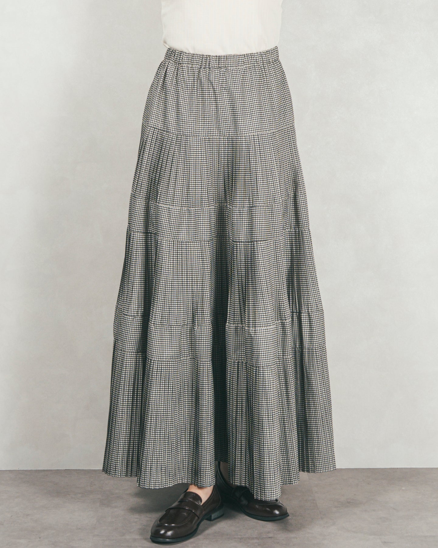プリーツティアードLongスカート (CHECK)