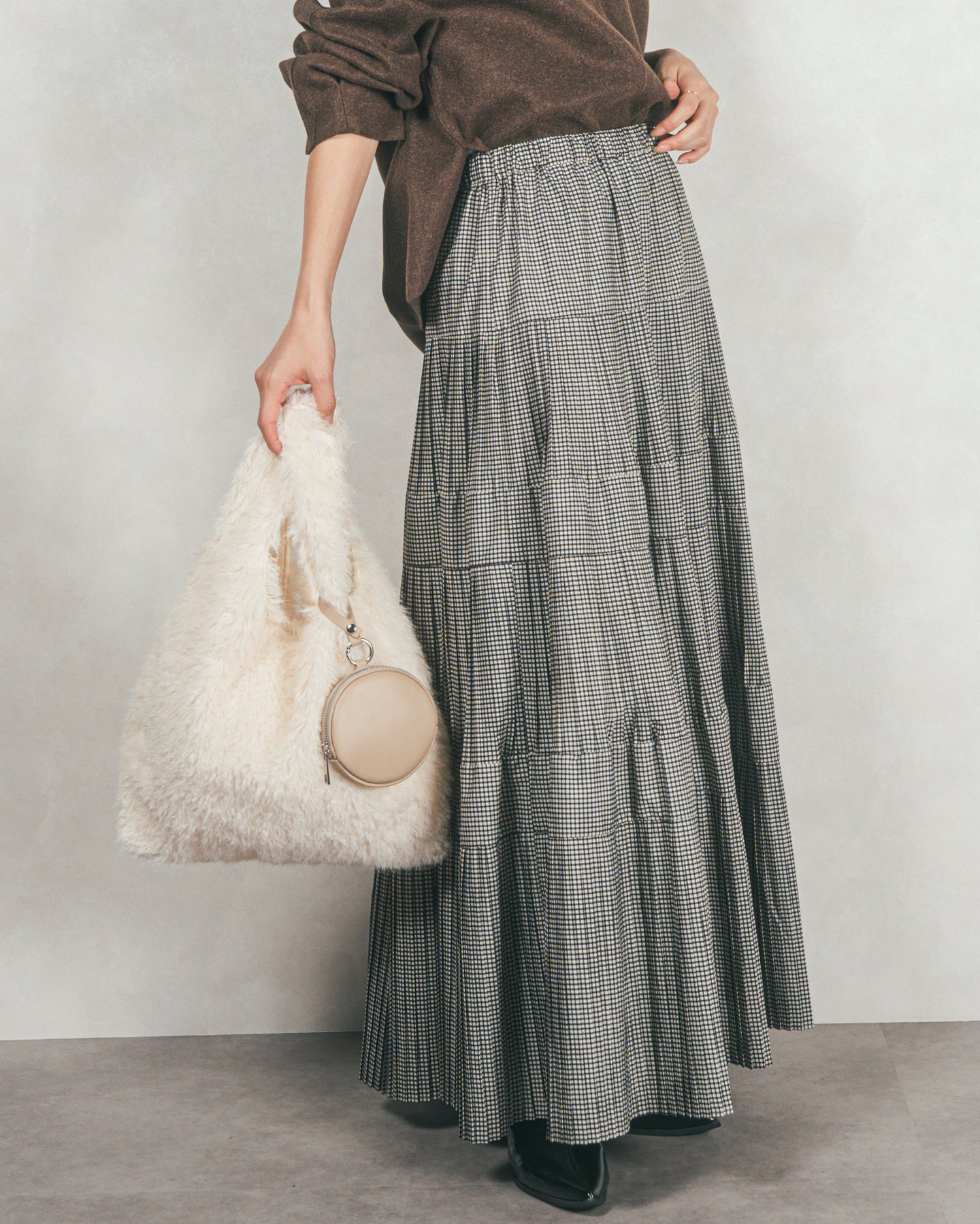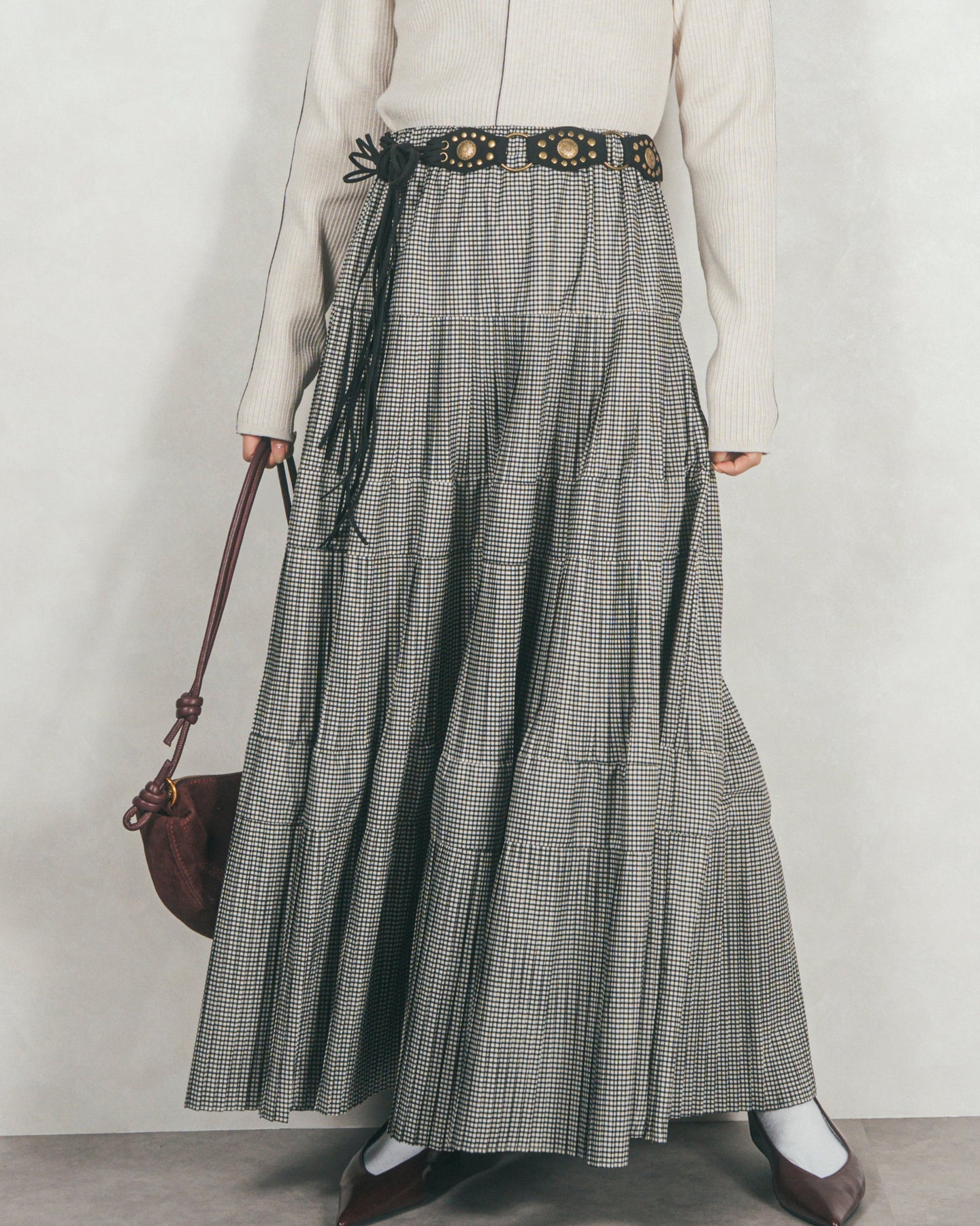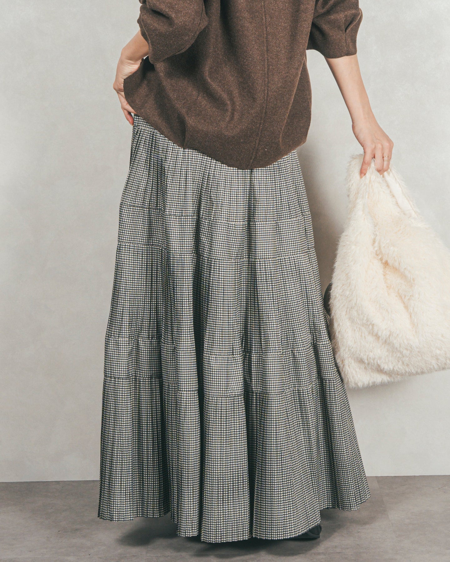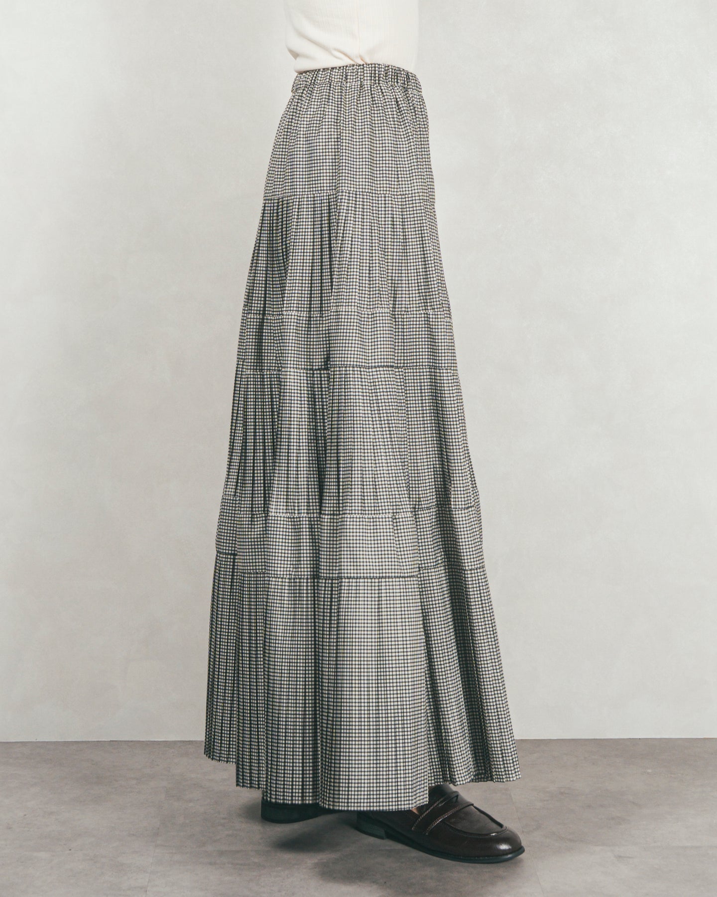 プリーツティアードLongスカート (CHECK)