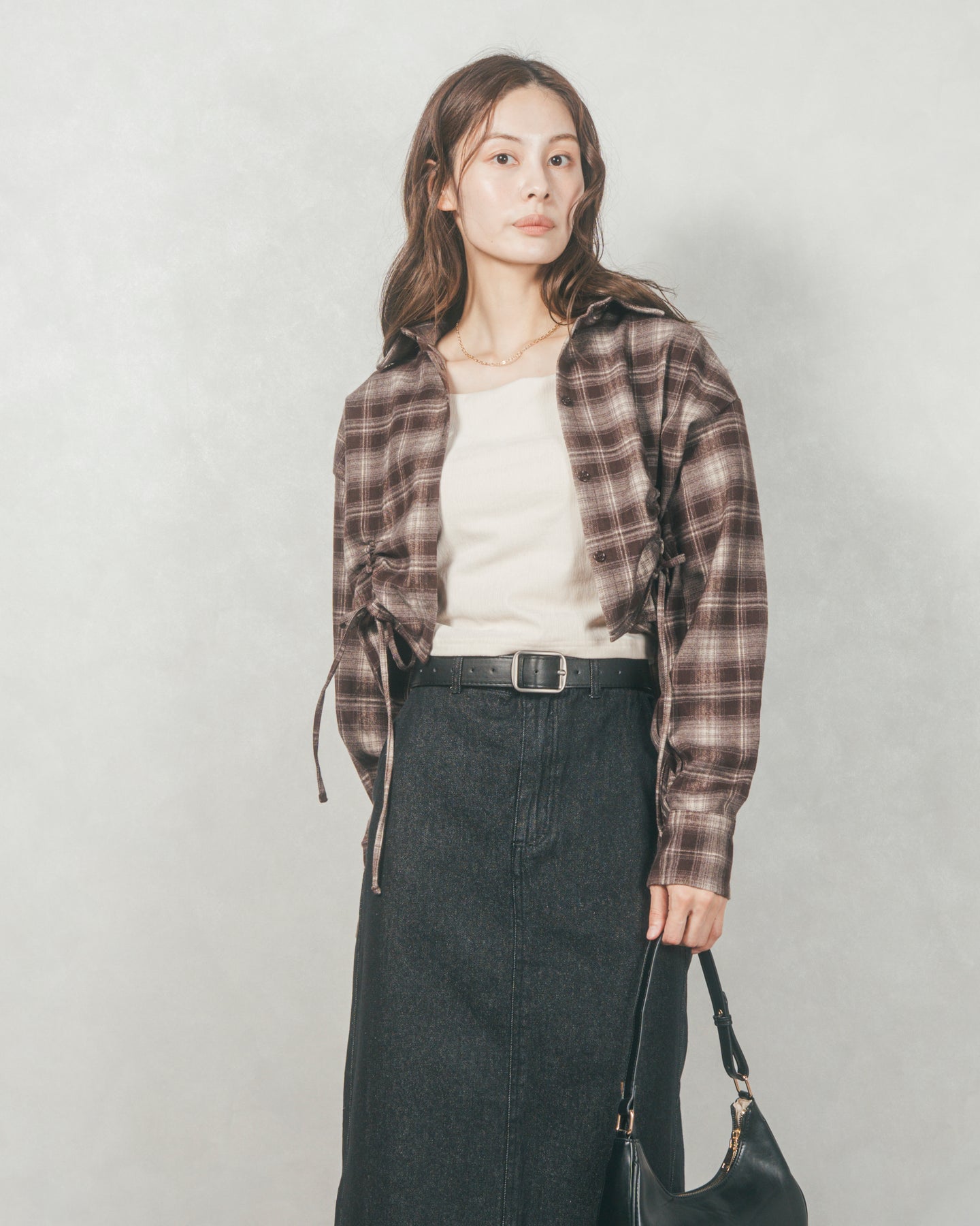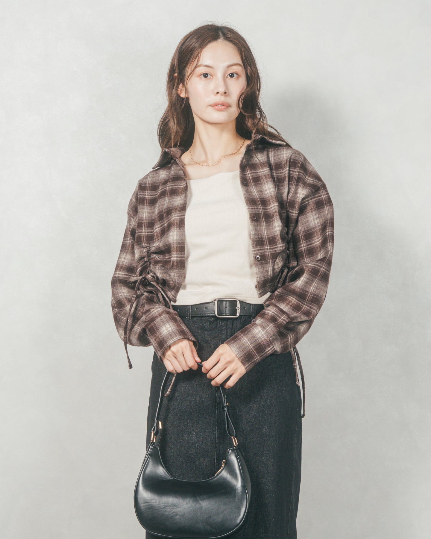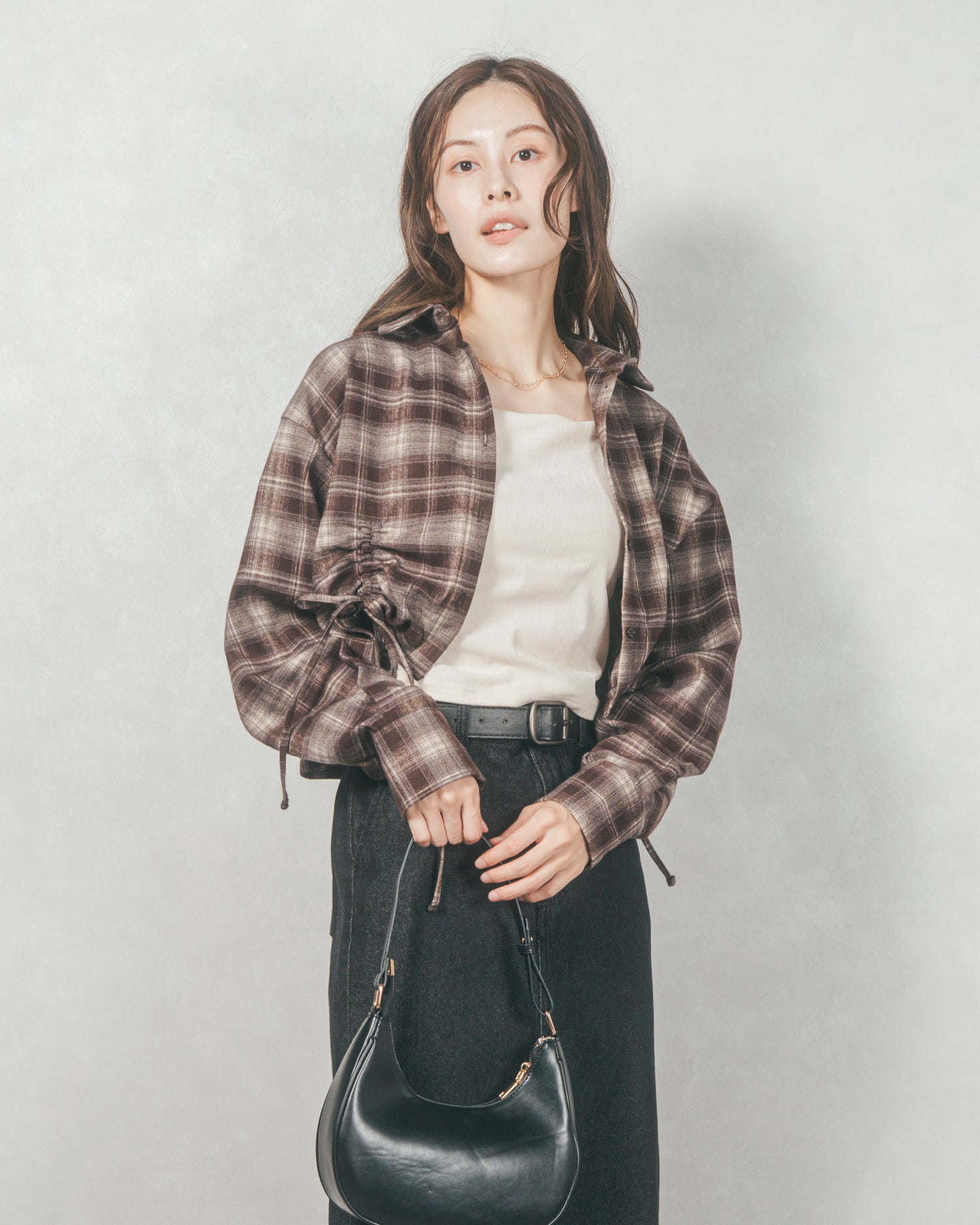トレンド感と着回し力、どちらも欲しいあなたへ。今季の気分をぐっと高めてくれるネルチェック素材のクロップドシャツは、柔らかな肌触りと程よいハリ感が魅力の一着。