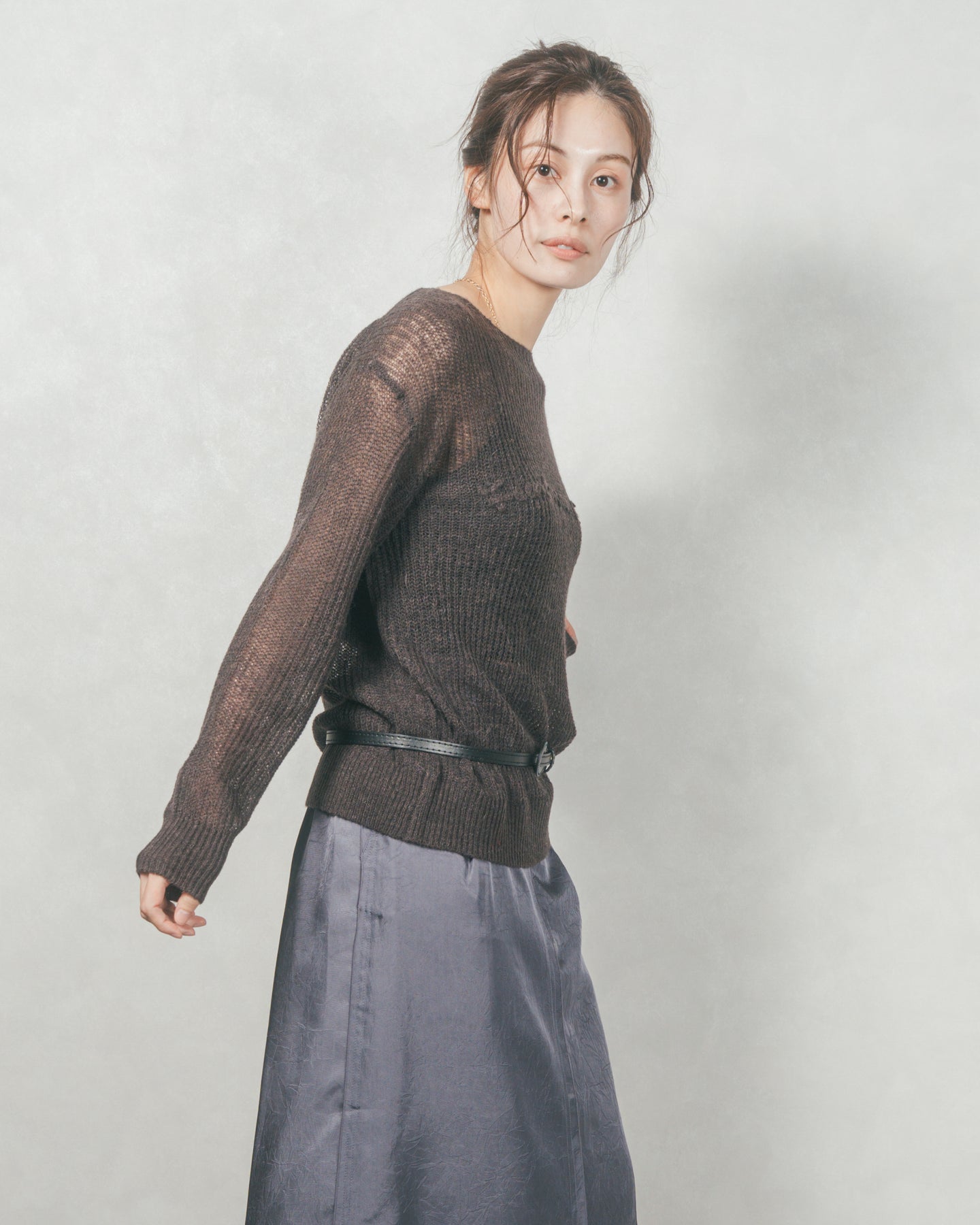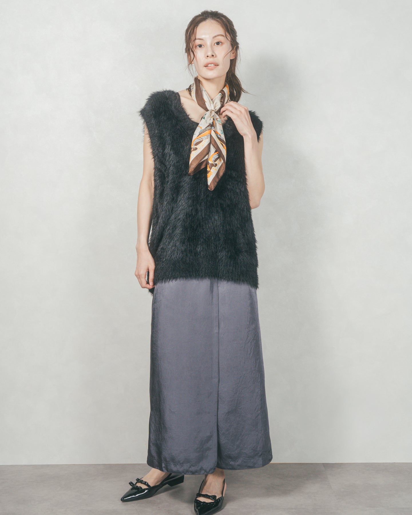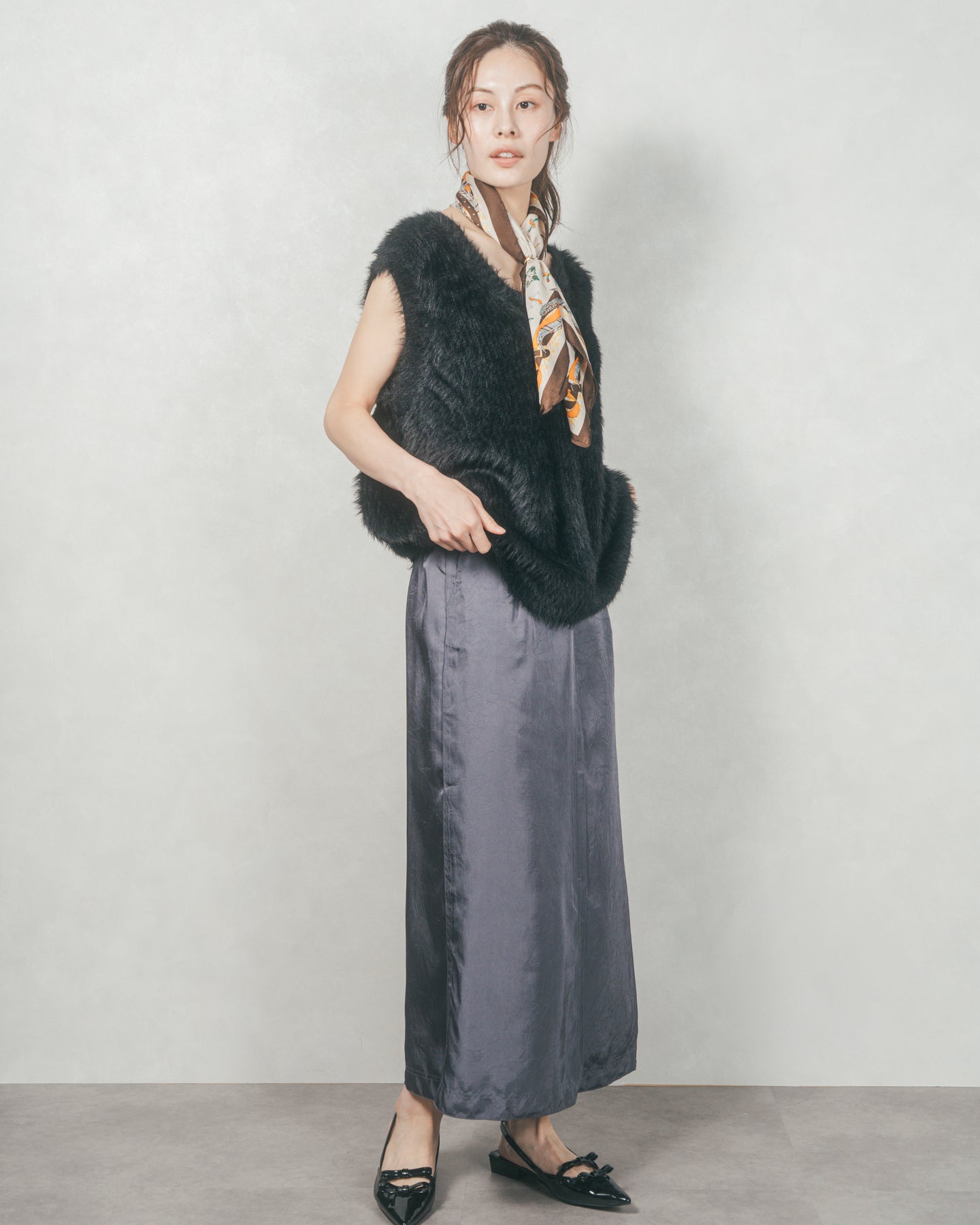 繊細なツヤ感のあるサテン素材に、裾にはメロウ始末を施して、ほんのりカジュアルなムードをひとさじ。きれいめすぎず、毎日のコーデに自然と馴染む絶妙なバランスに仕上げました。裏地付きで透ける心配もなく、デイリーに安心して着られるのも嬉しいポイント。