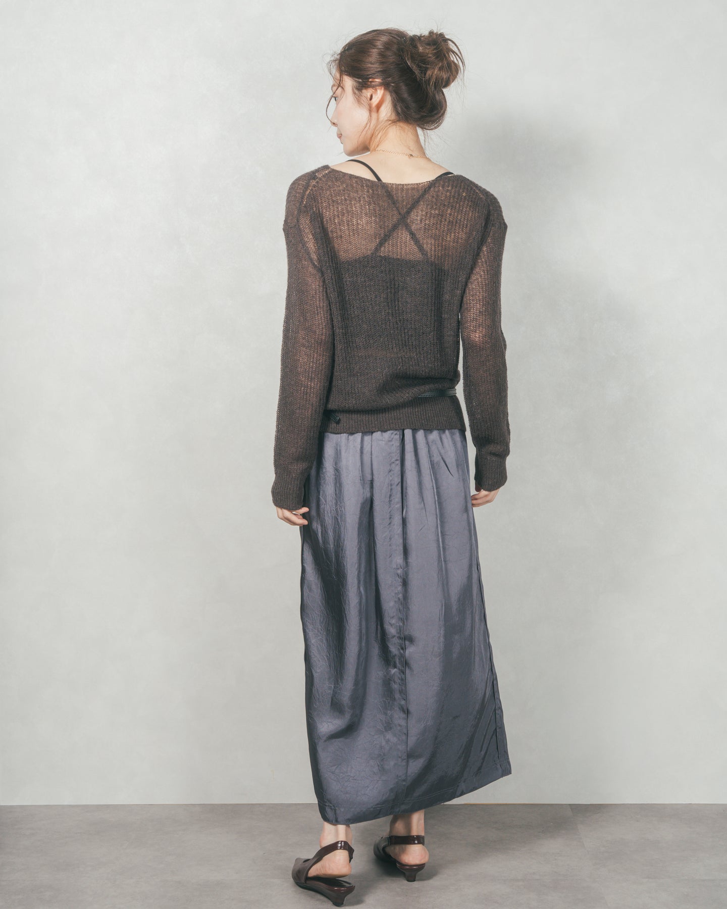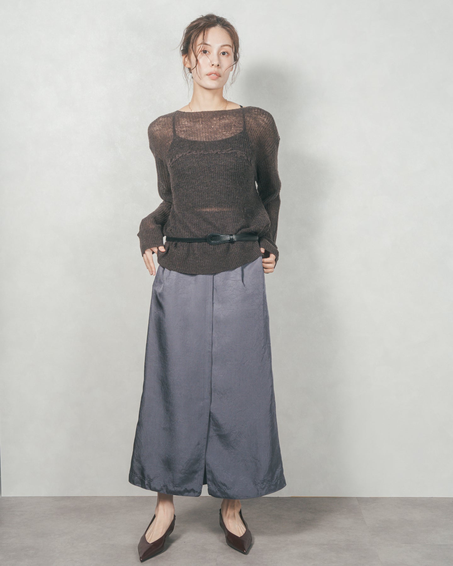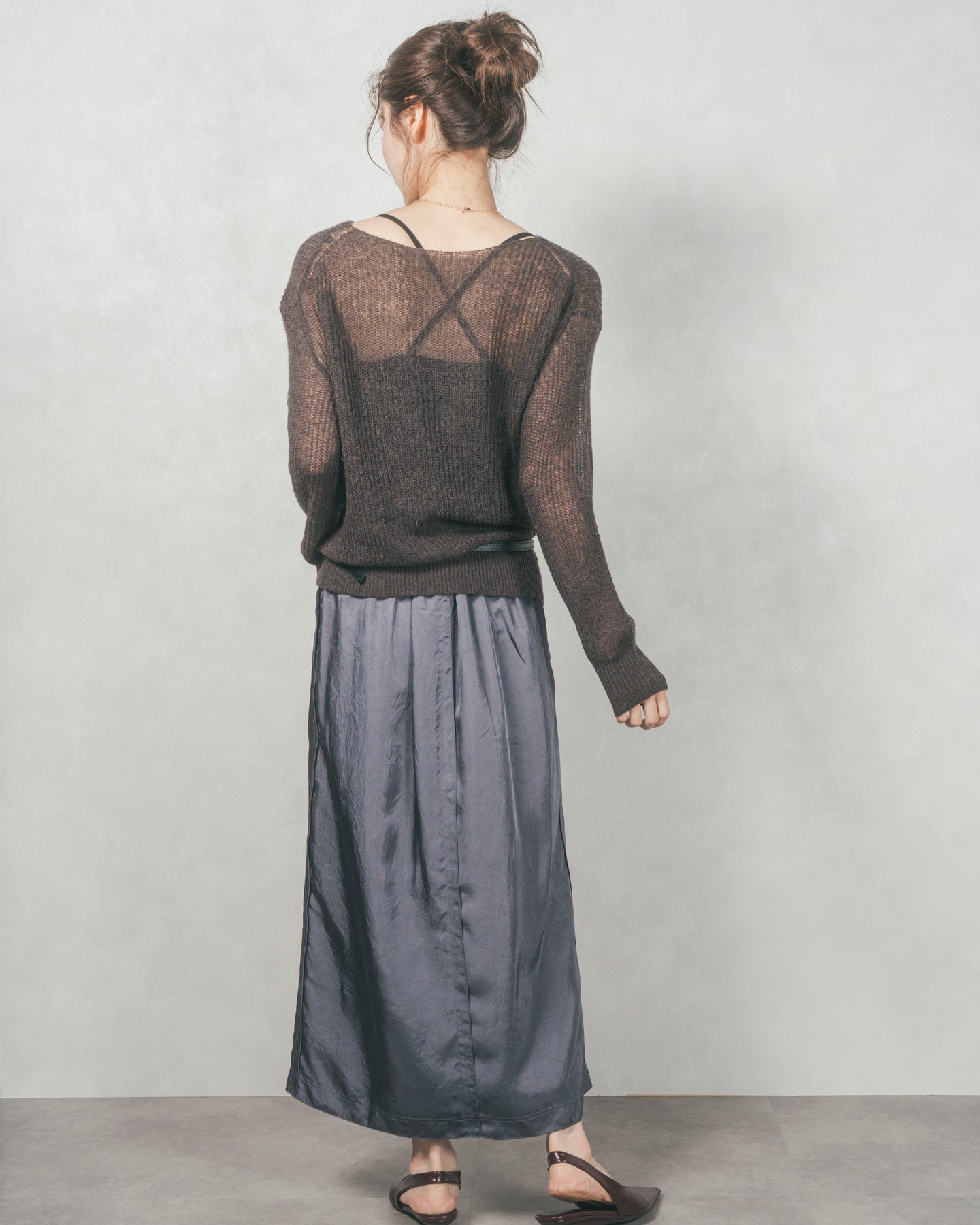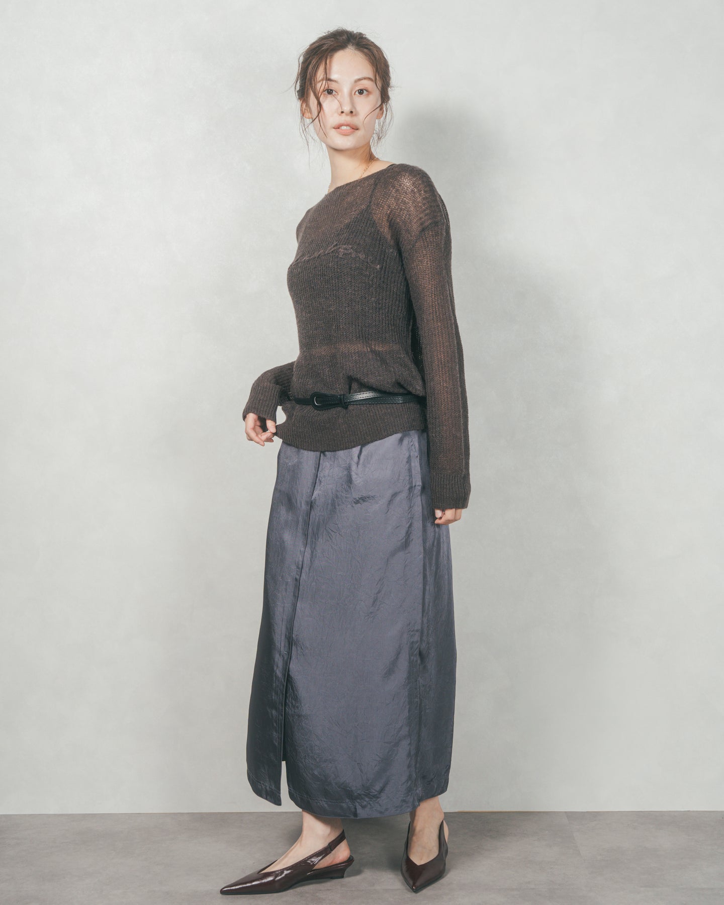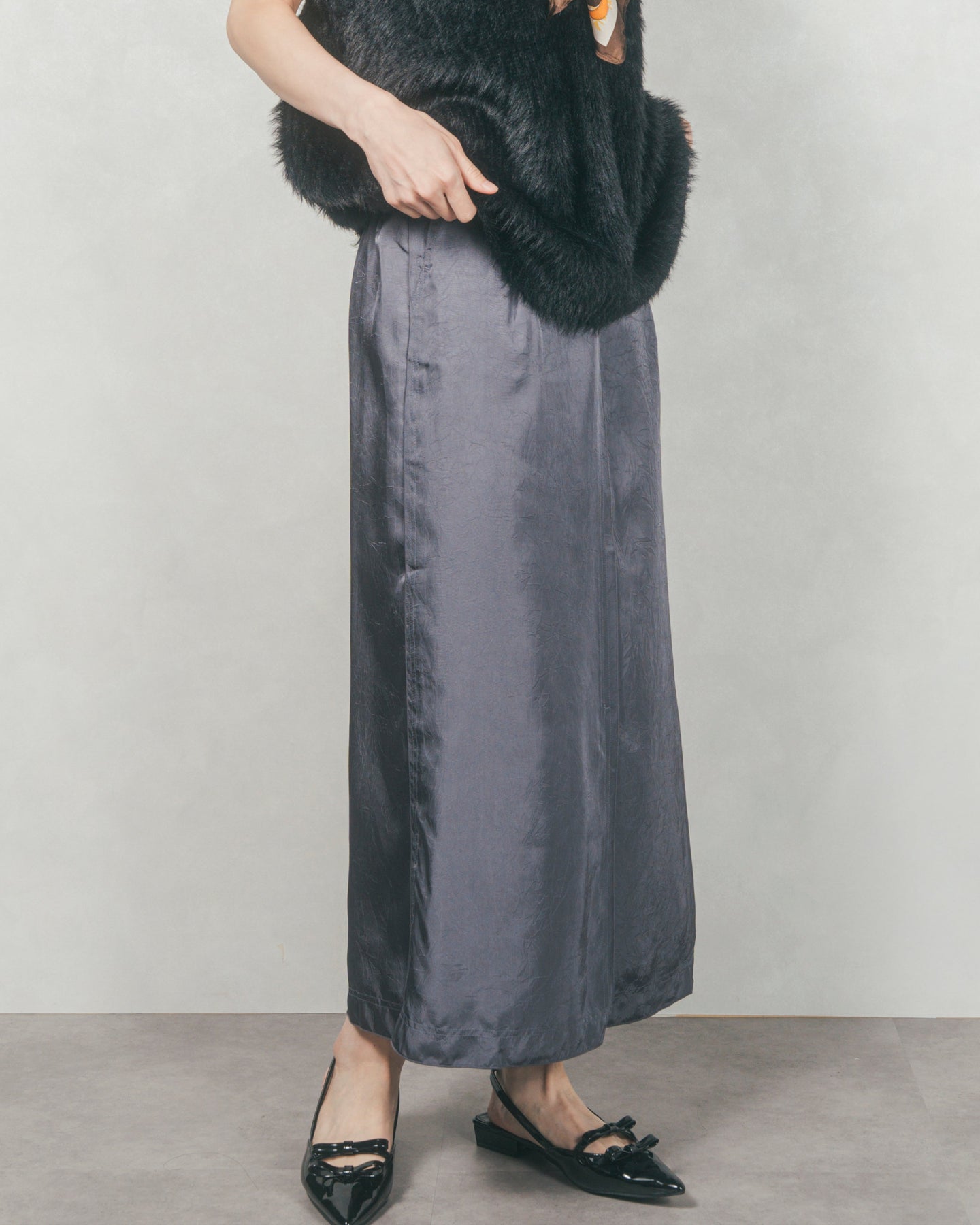 Mellowサテン セミフレアスカート (GRAY BLUE)