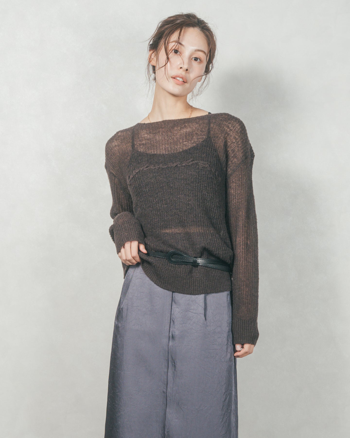 ざっくりニットやスウェットとのミックススタイルで、抜け感のあるカジュアルダウンコーデはもちろん、シアーシャツやジャケットを合わせてちょっとしたお出かけにも。