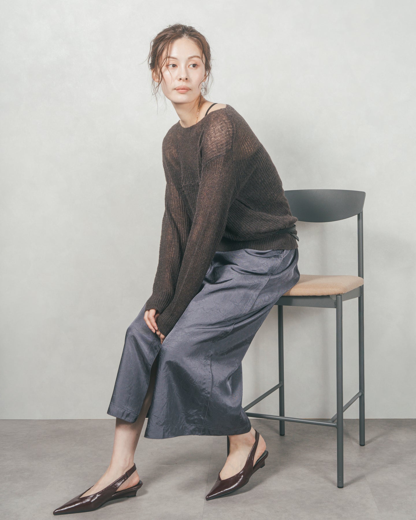 ほのかに揺れる光沢が、大人の余裕を感じさせるサテンセミフレアスカートが登場。