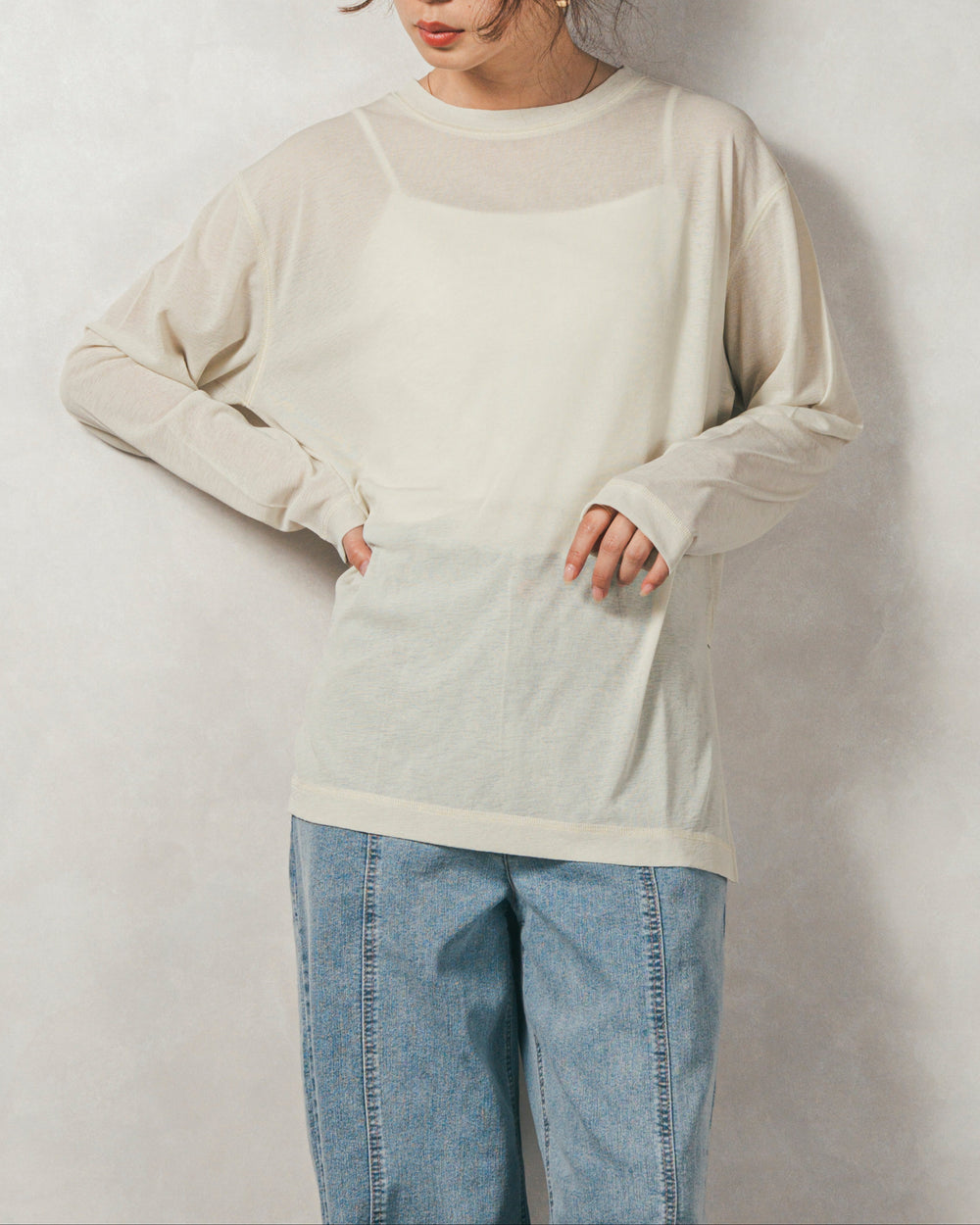 [SET]ミックスヤーン2WAYカーディガン+スラブシアークルーネックT+センターシーム リラックスカラーデニム(3SET)