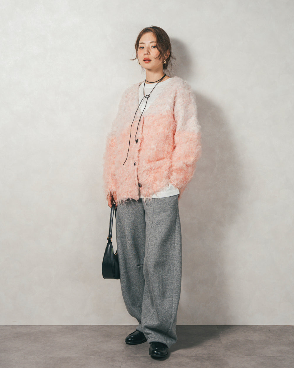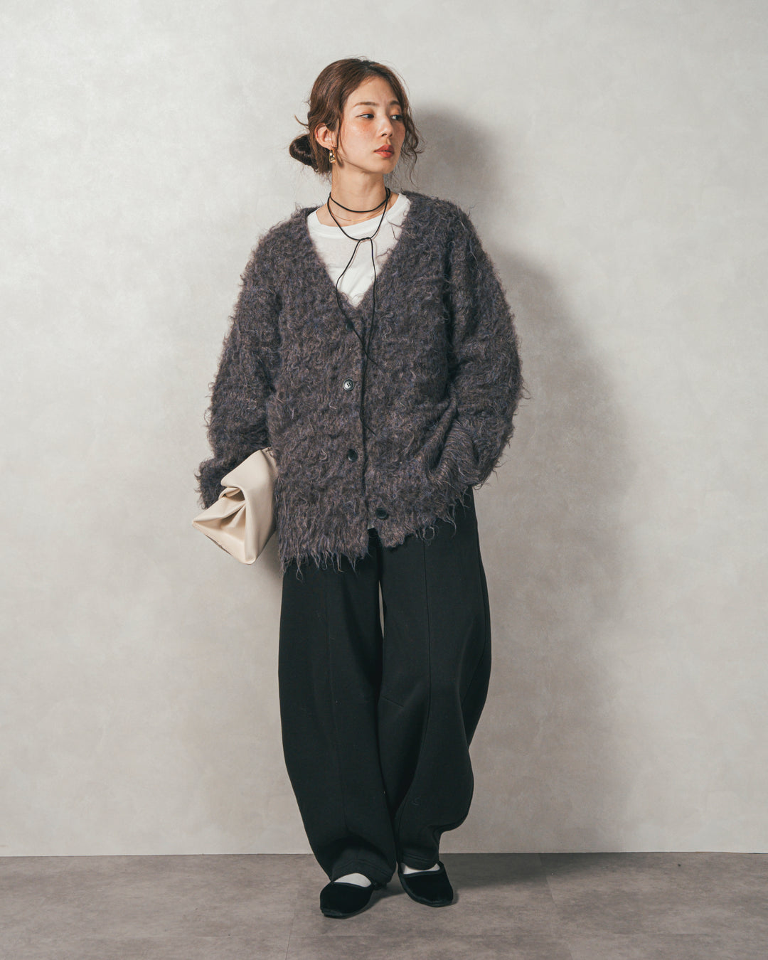 [SET]Airyフェザー ニットカーディガン+スラブシアークルーネックT+Relax 裏起毛カーブパンツ(3SET)