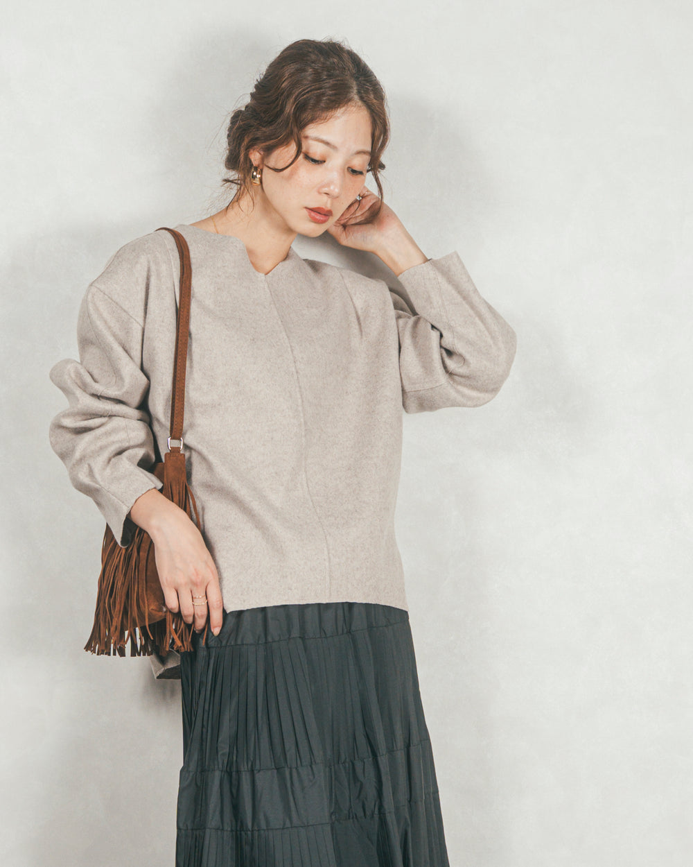 Smoothニットソー Vネックプルオーバー(BEIGE)