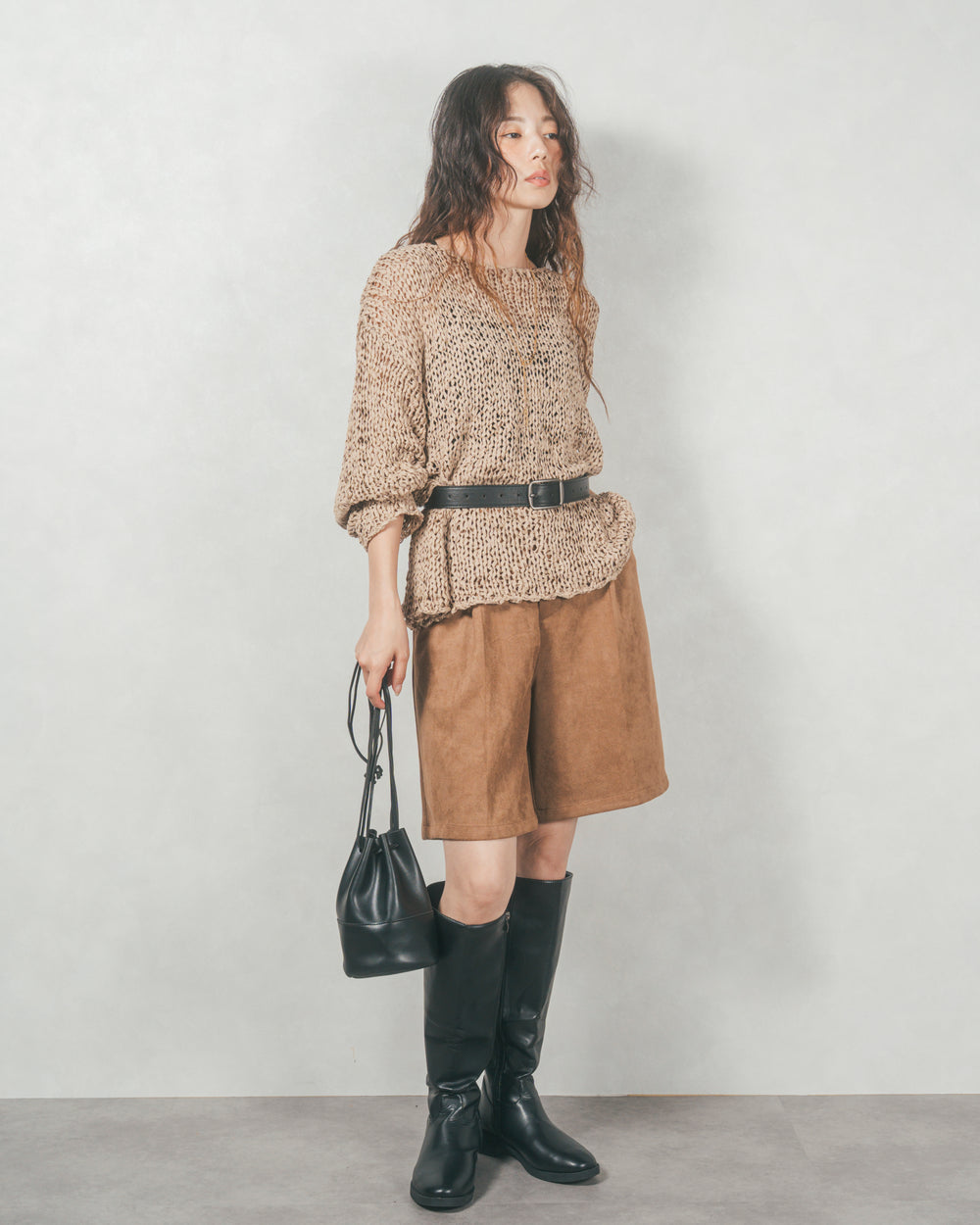 [SET]エアリールーズオーバーニット+スウェードライクハーフパンツ(2SET)