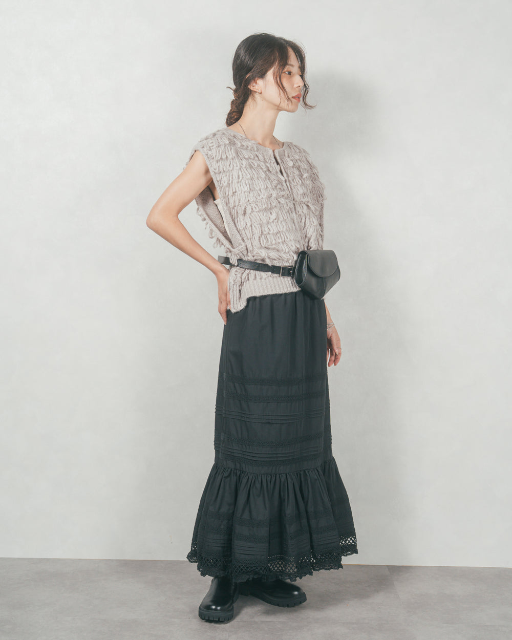 裾フリルベース部分 ポリエステル90%、ポリウレタン10%