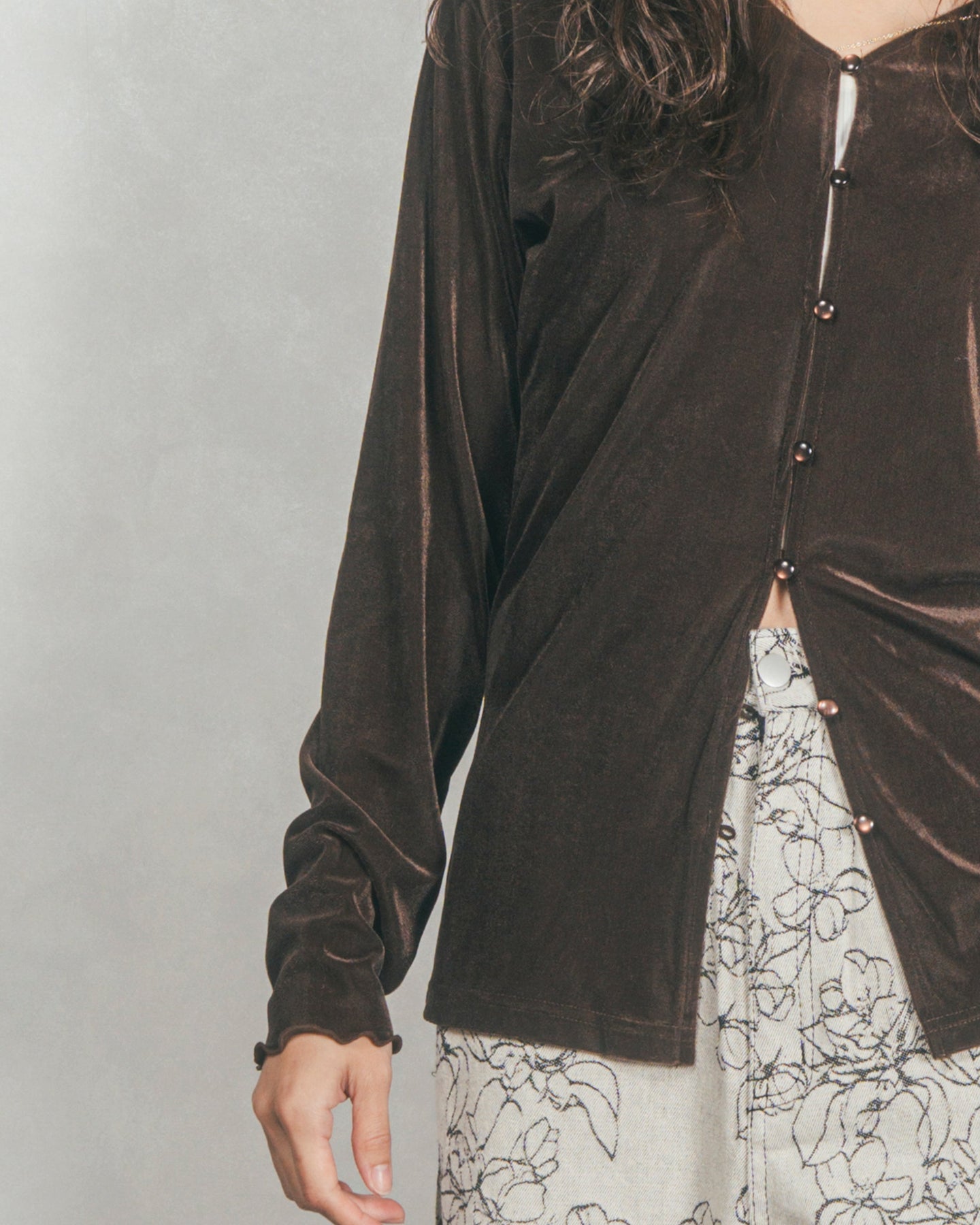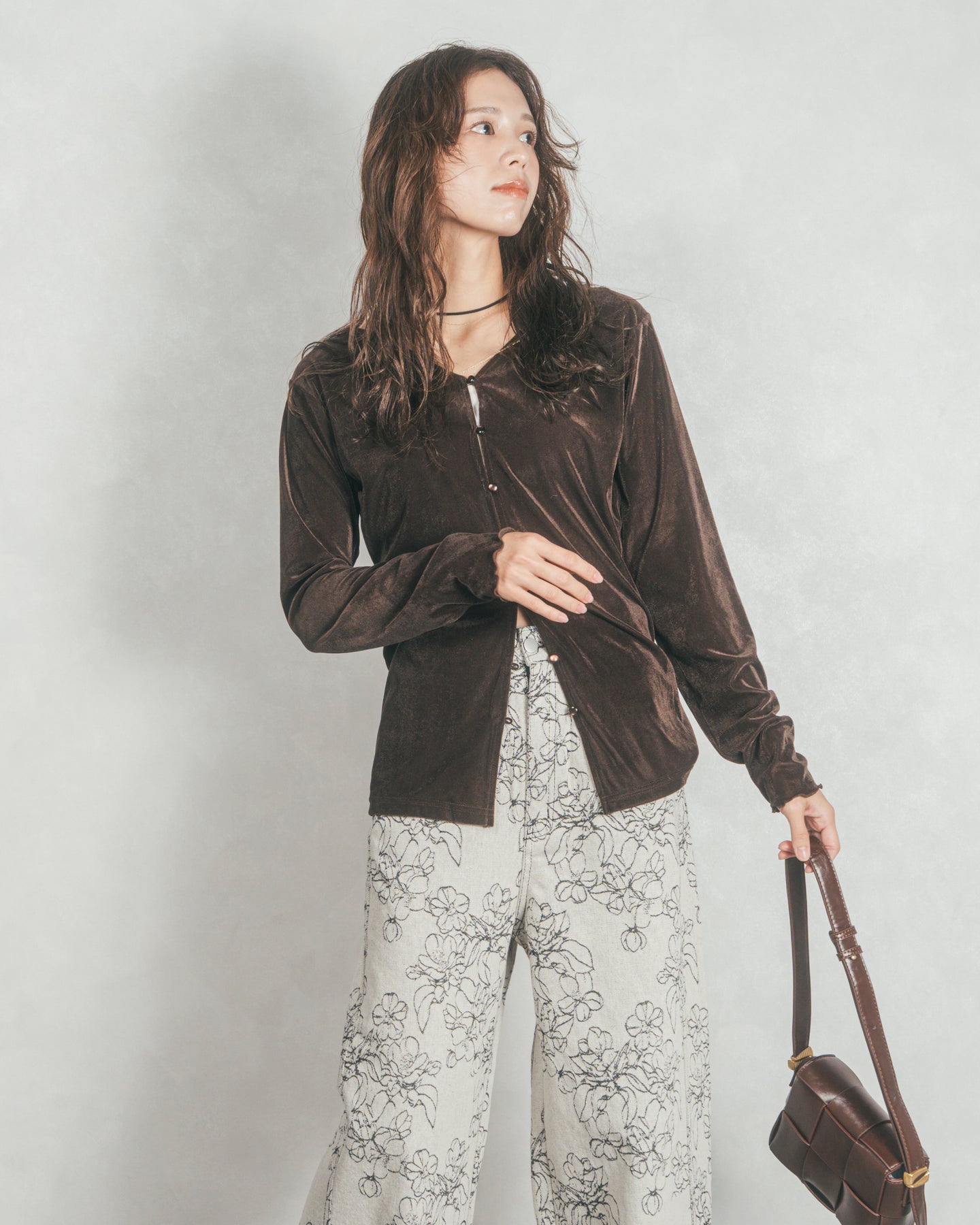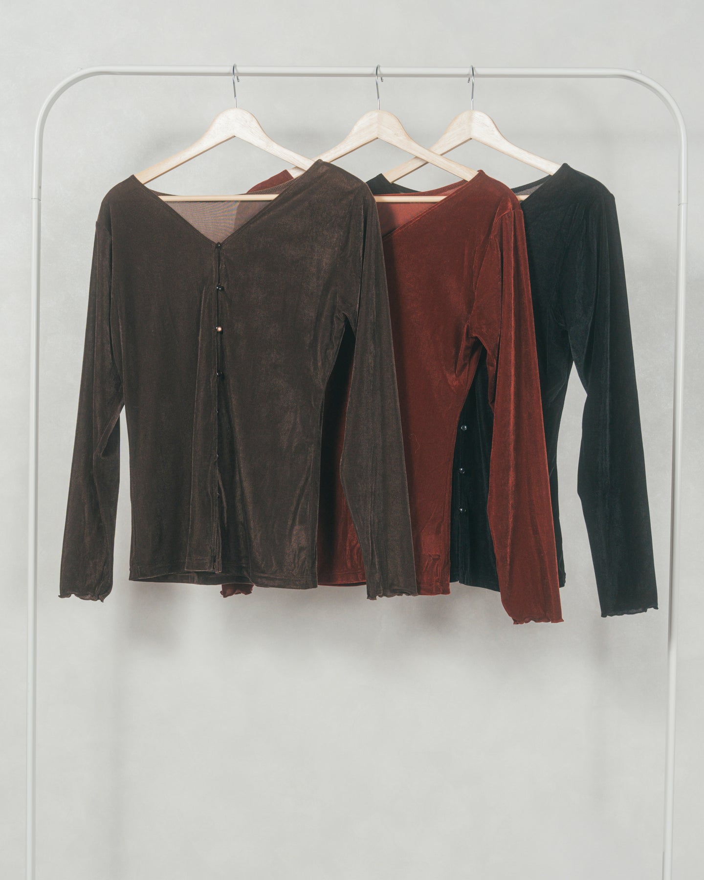 ベロア Vネックカーディガン (BROWN)