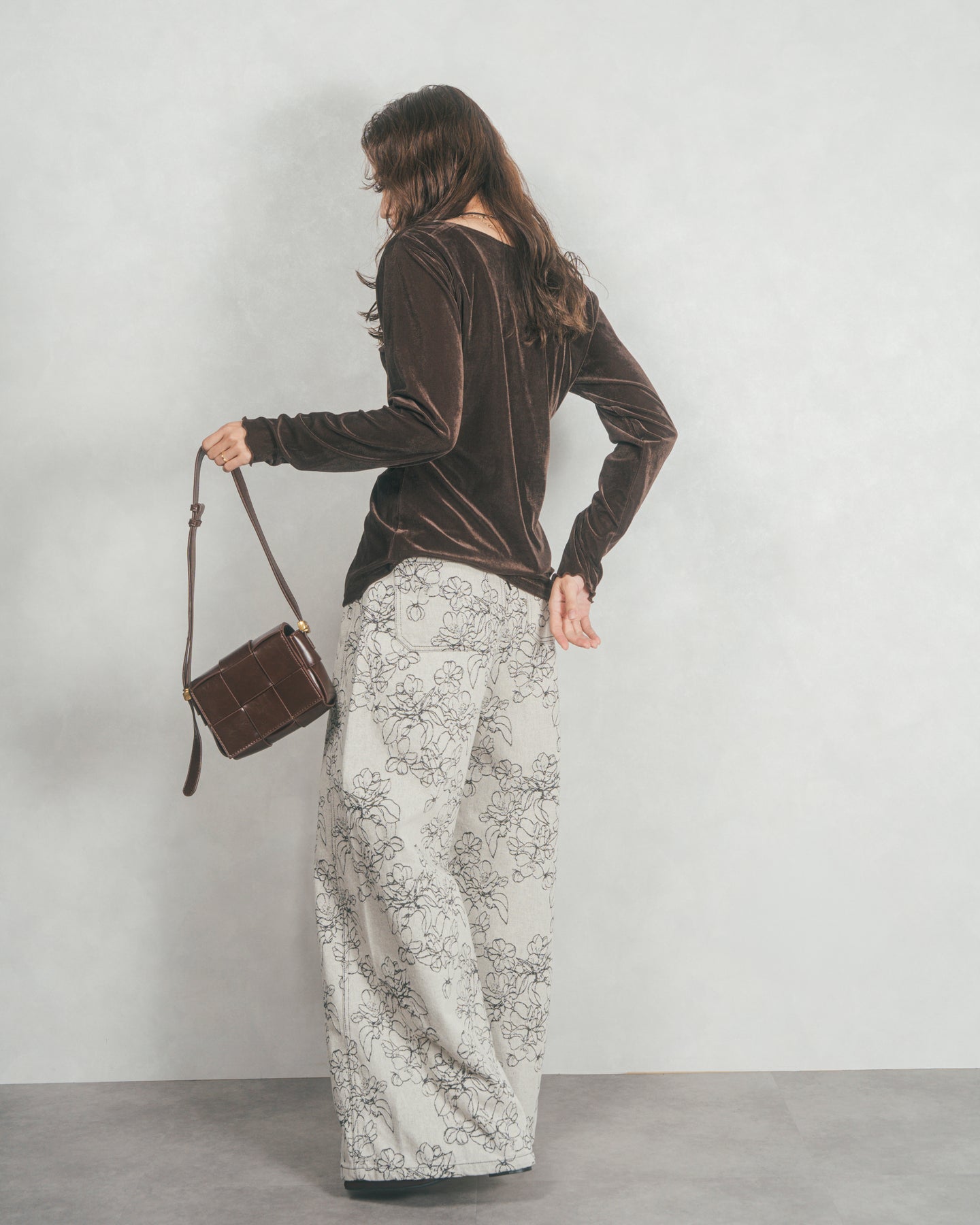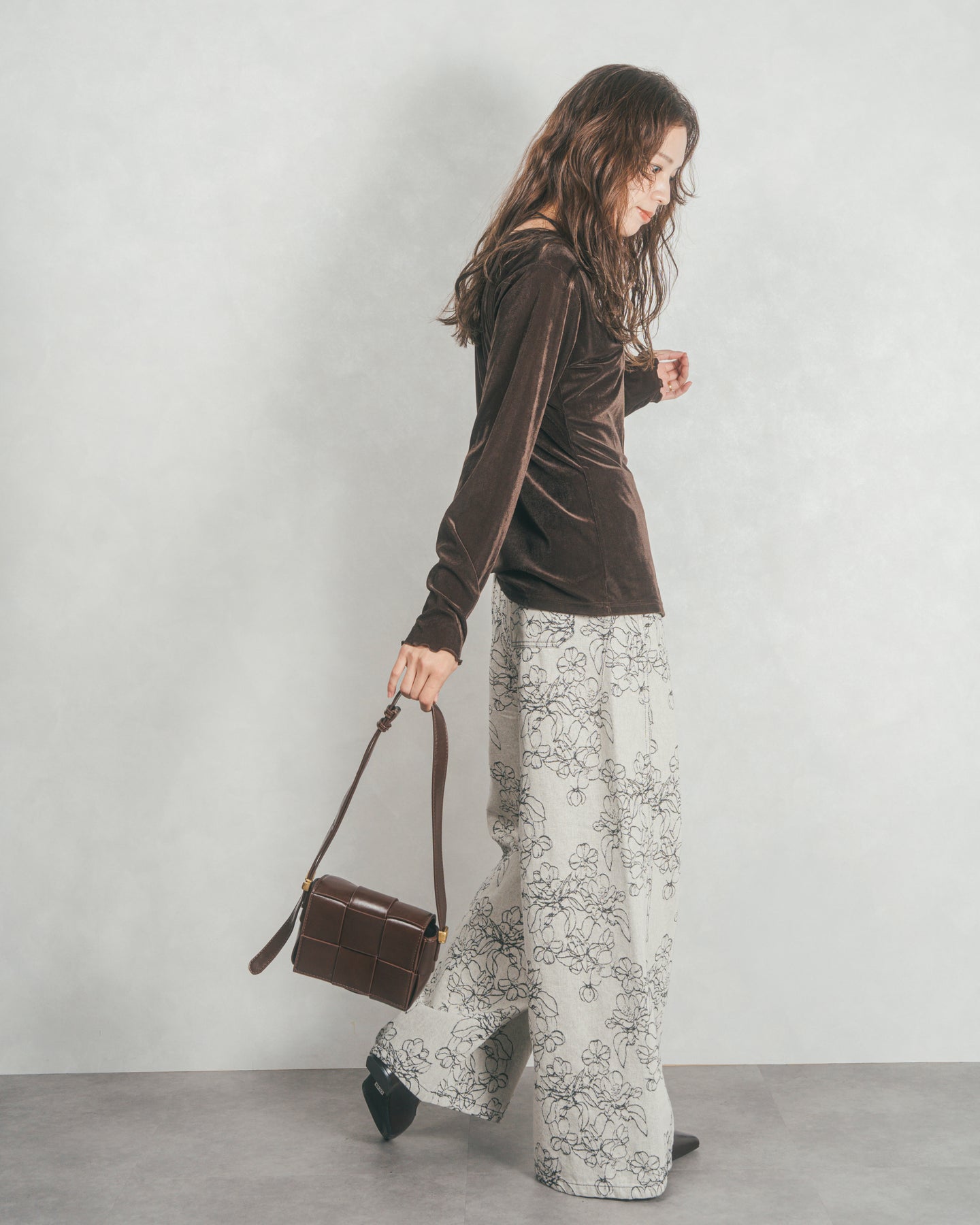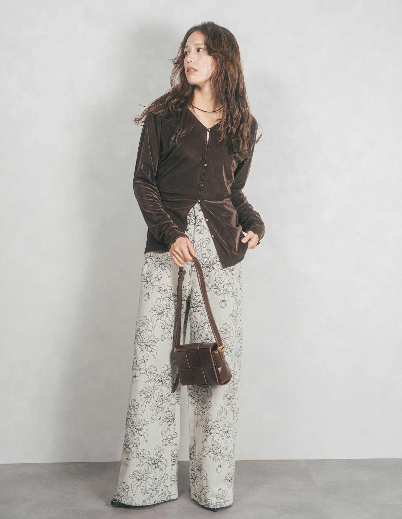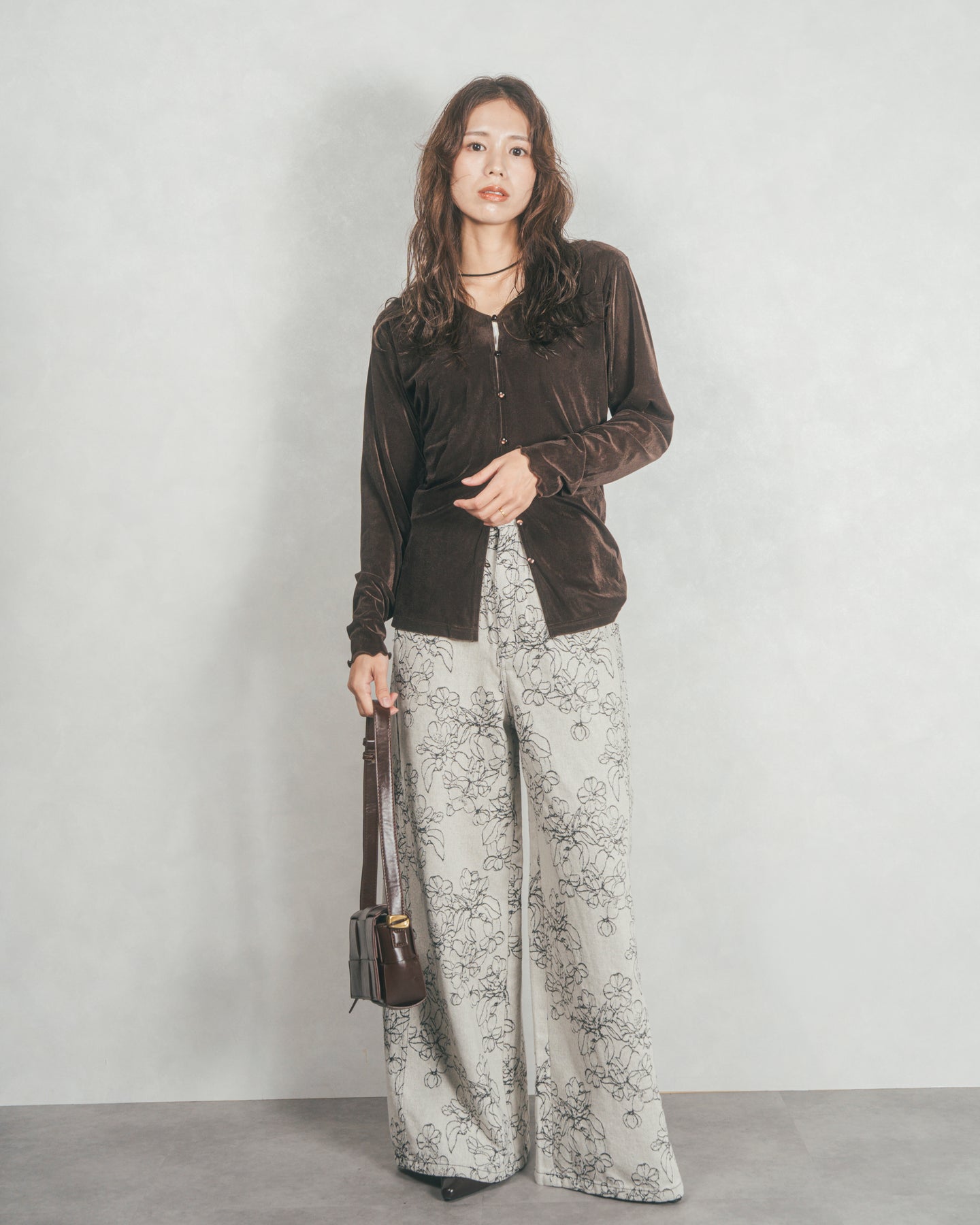 ベロア Vネックカーディガン (BROWN)