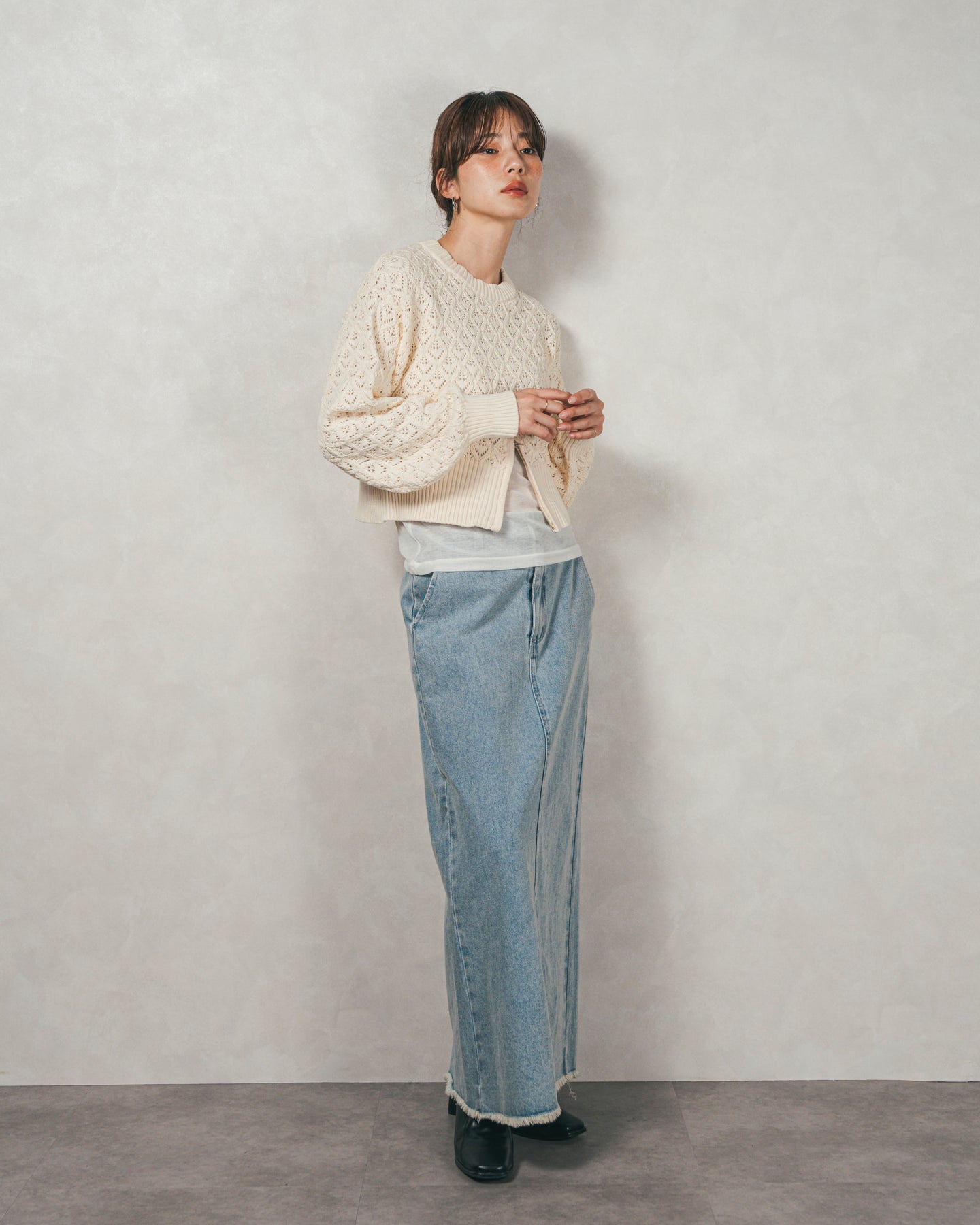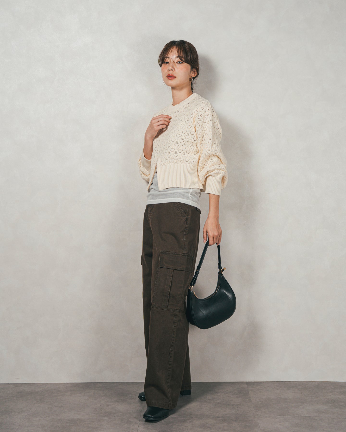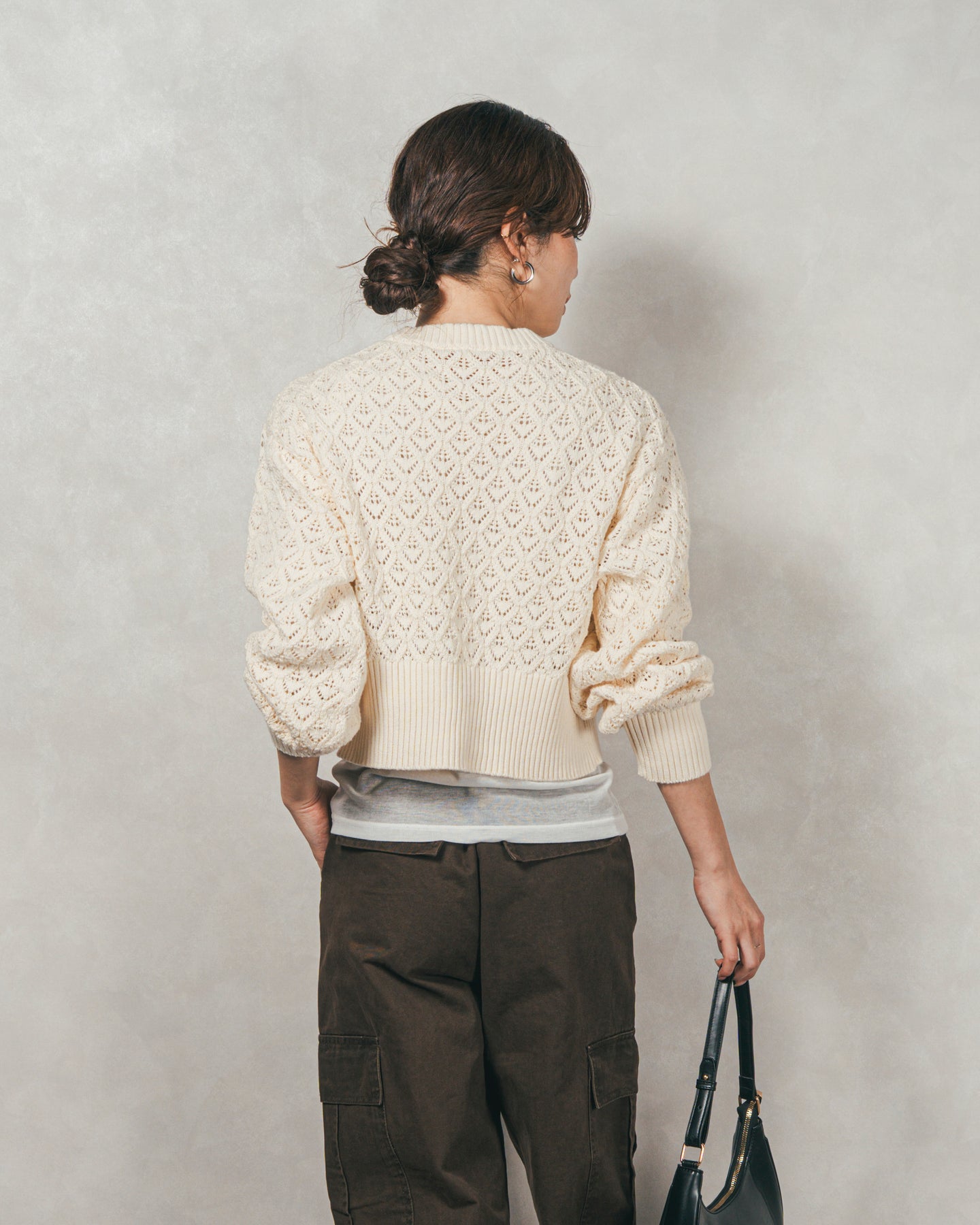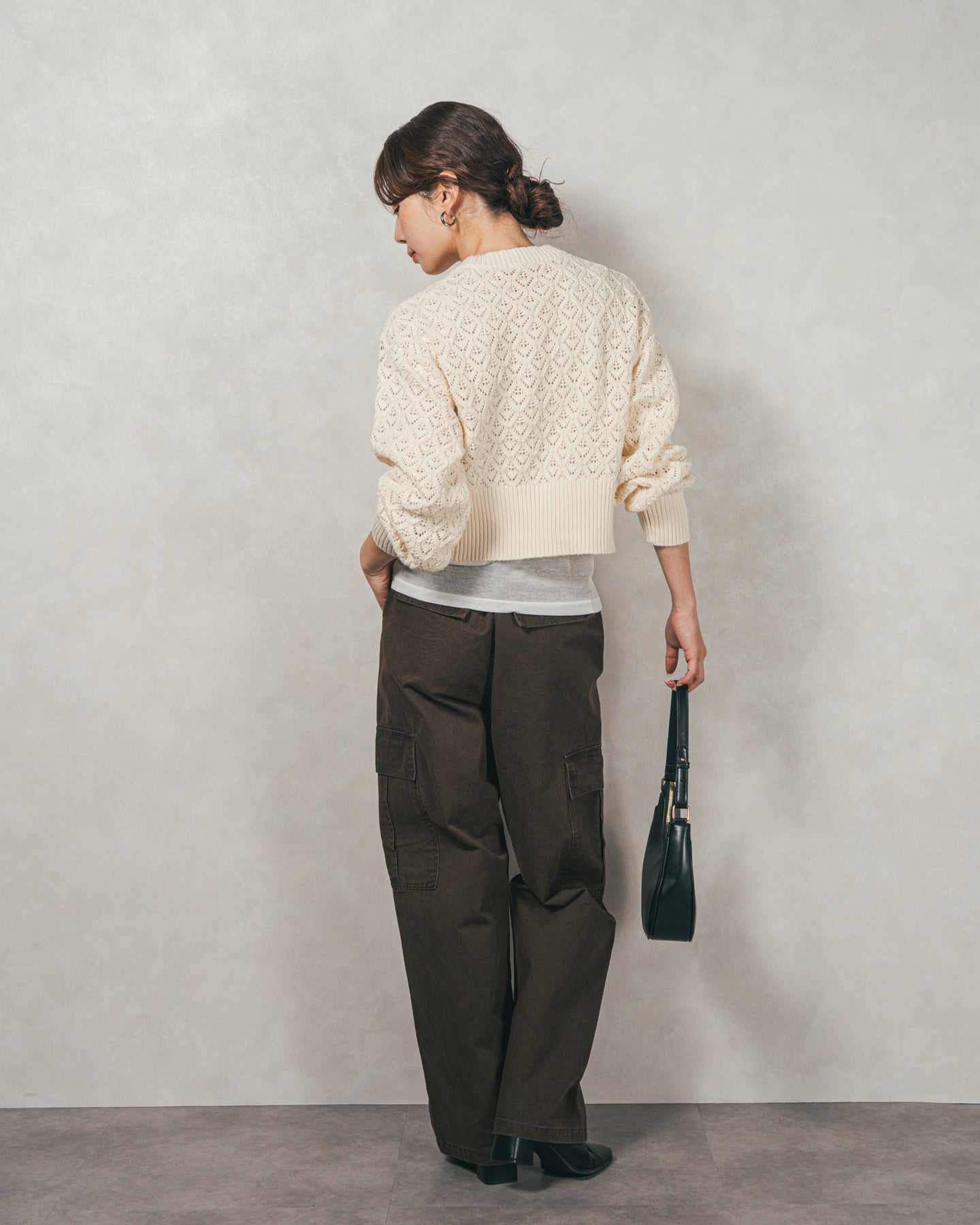 ジップで遊ぶ抜け感バランス。人気継続中の透かし編みニット