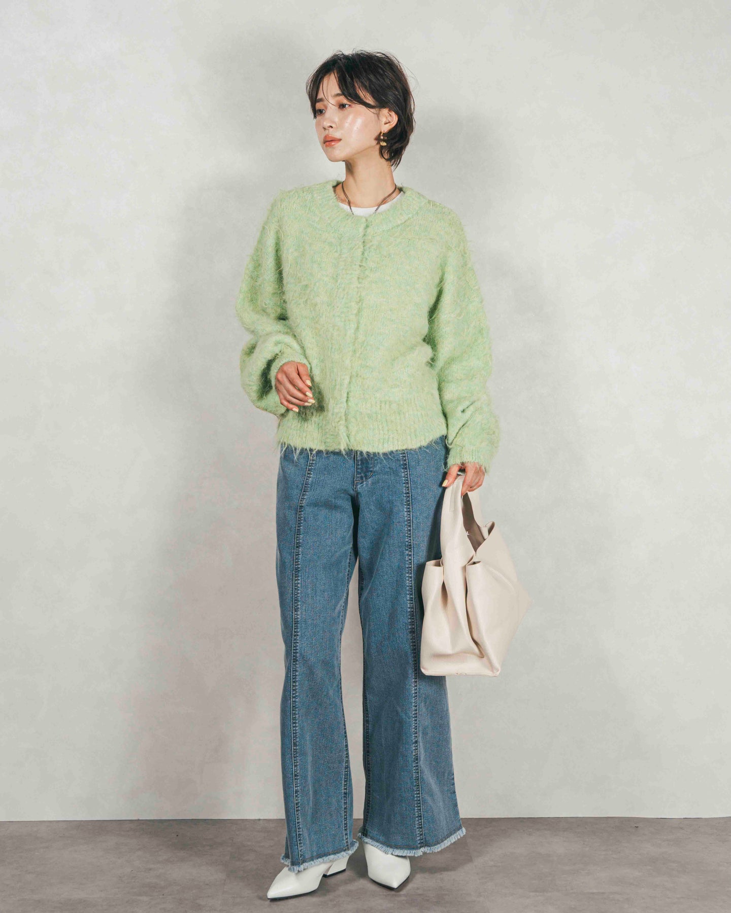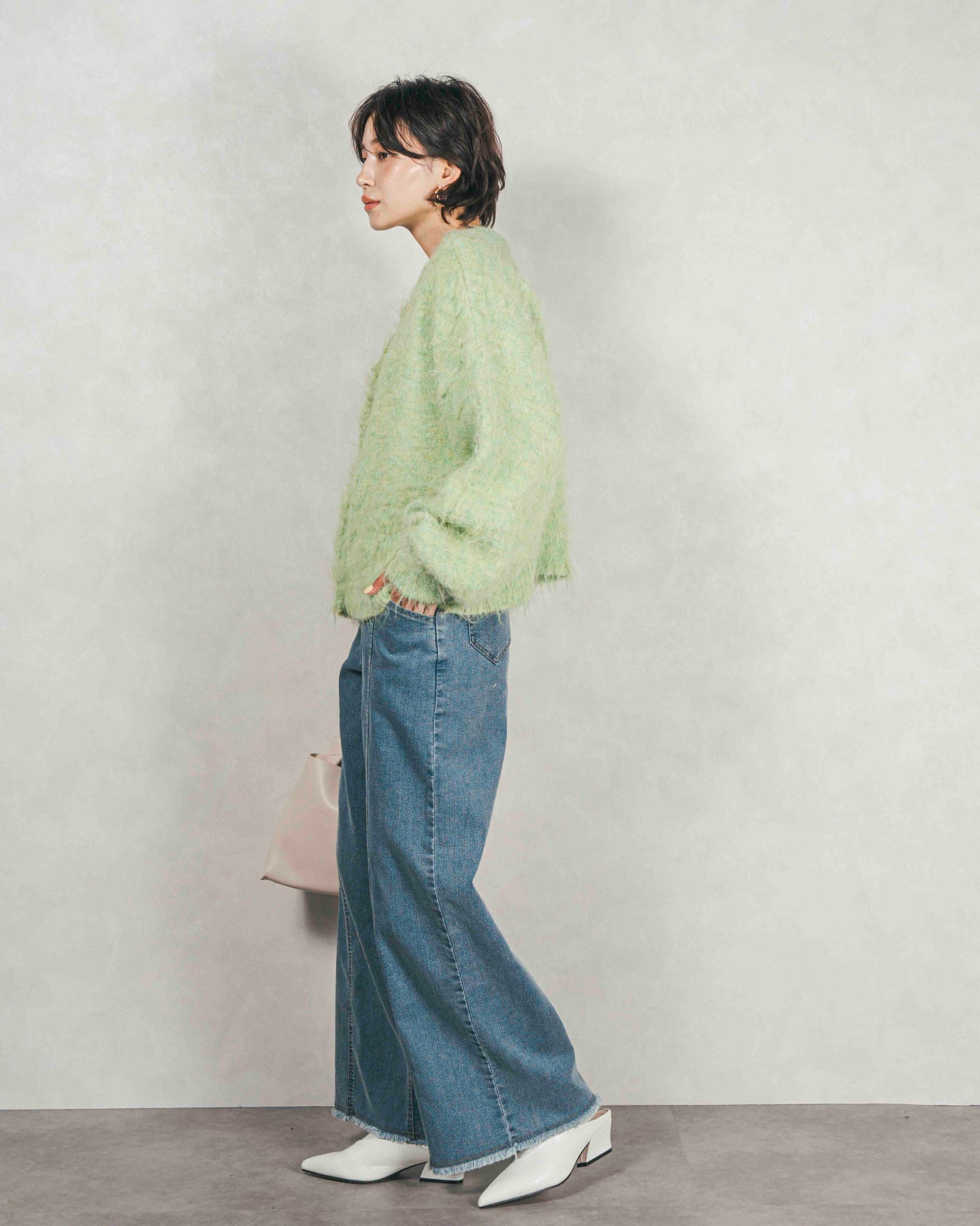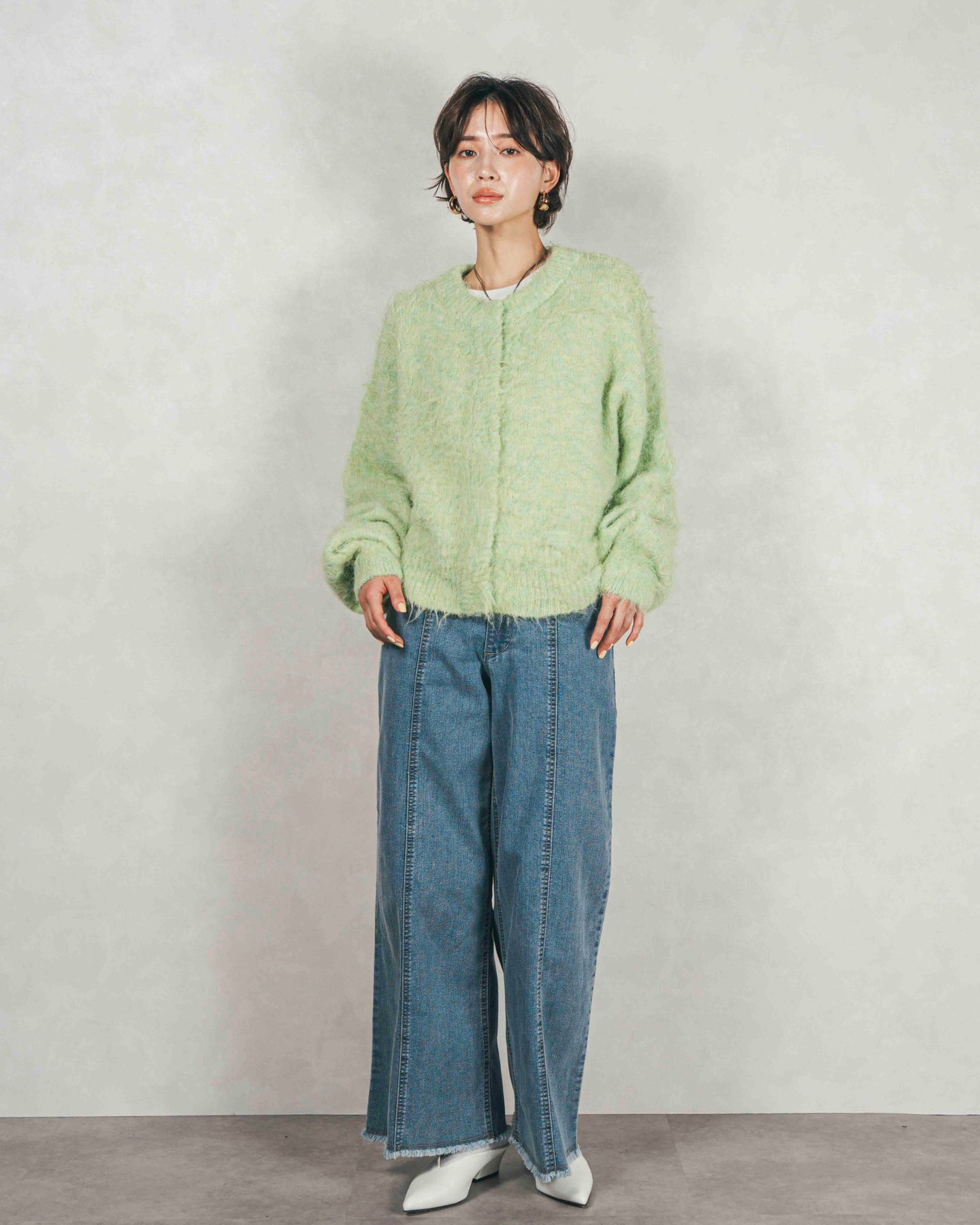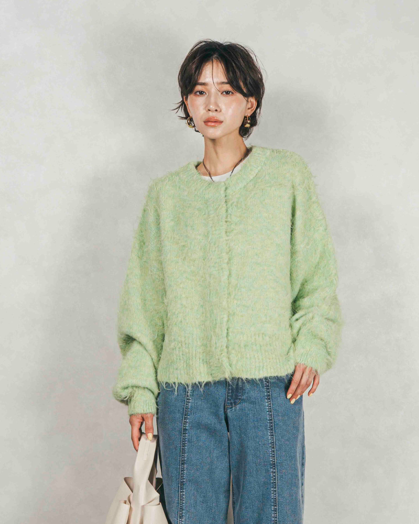 ふわふわの質感がかわいい。着るだけで雰囲気が変わる、着回し力抜群のミックスヤーンカーデ