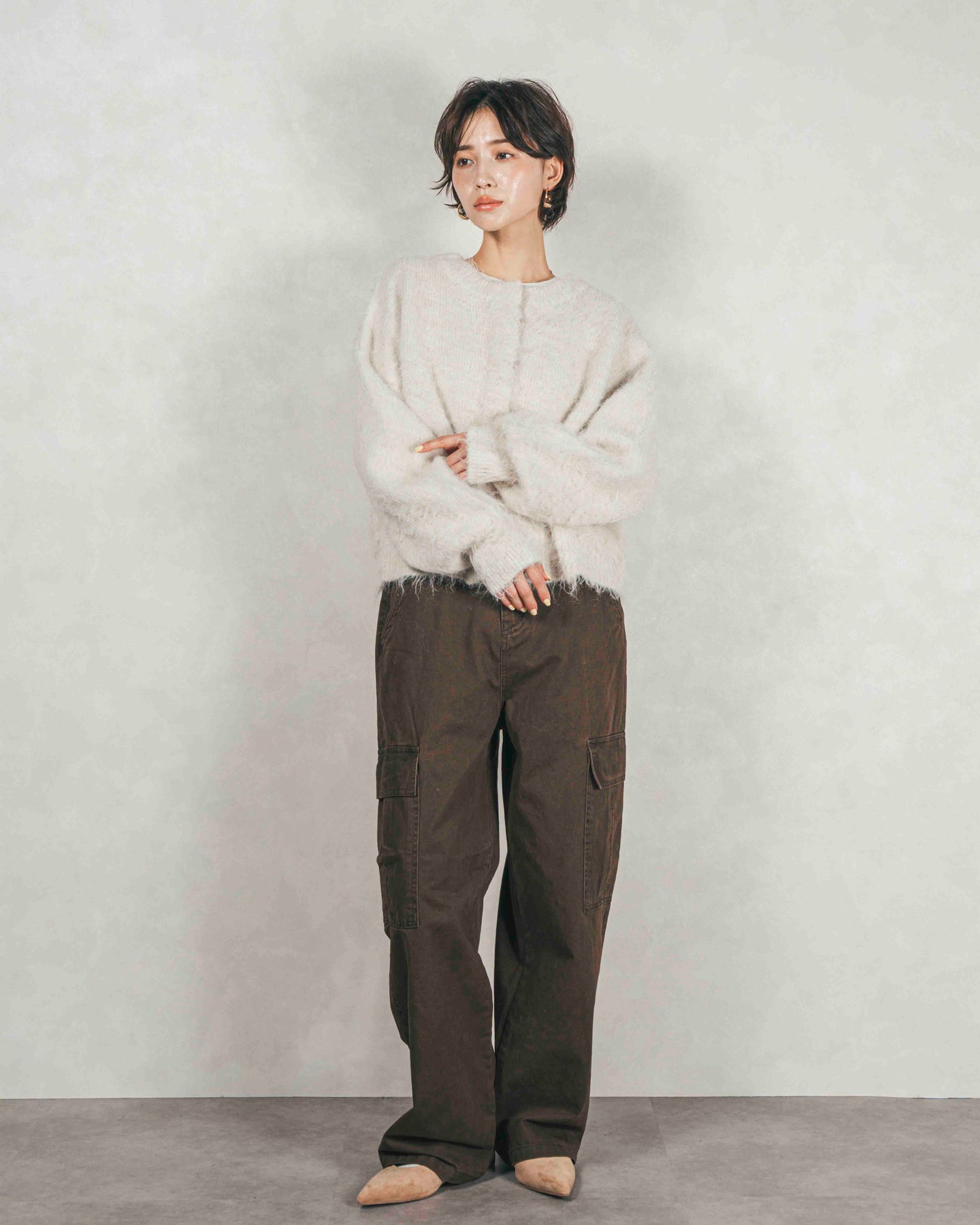 [SET]ミックスヤーン2WAYカーディガン+ピグメントツイルカーゴパンツ(2SET)