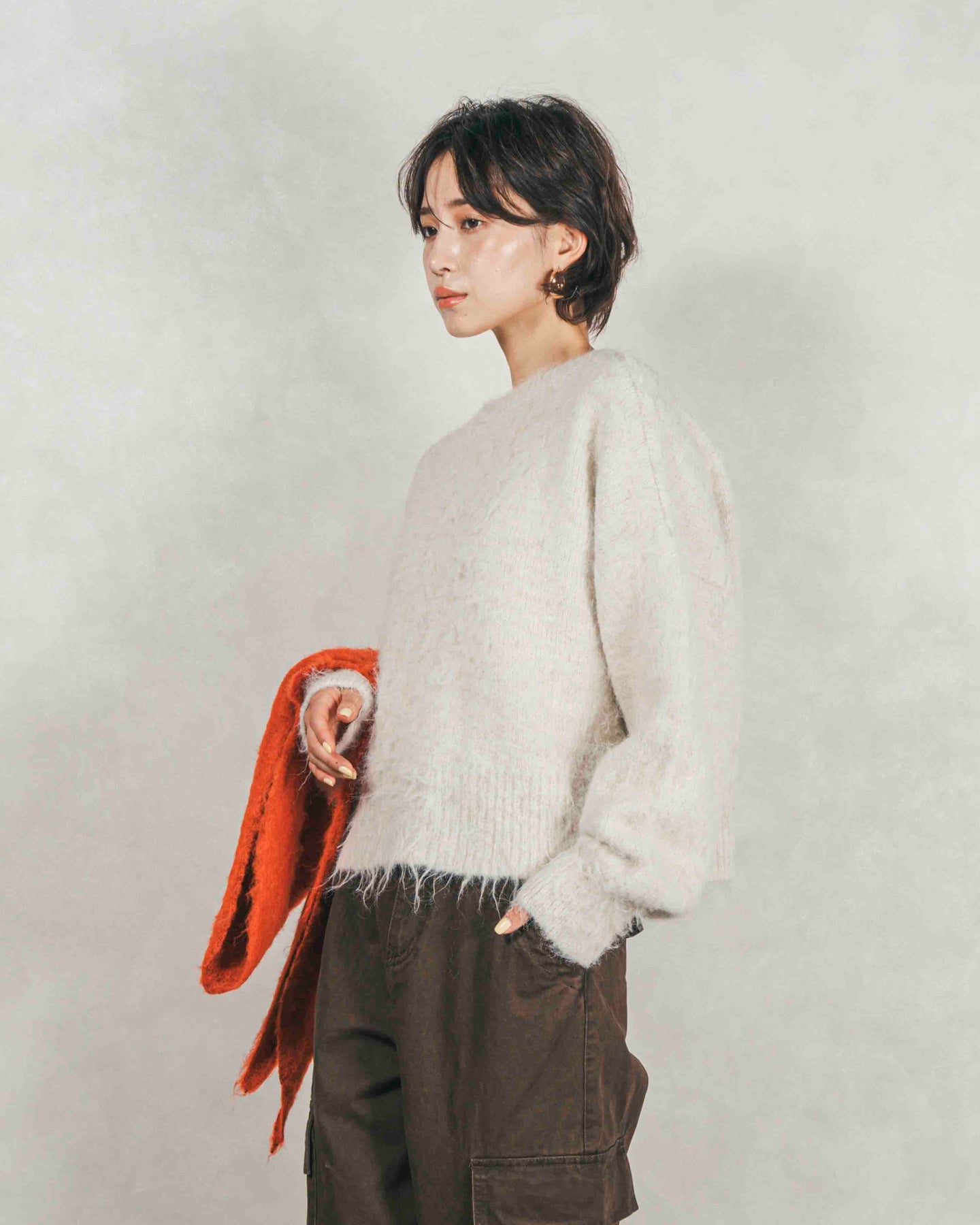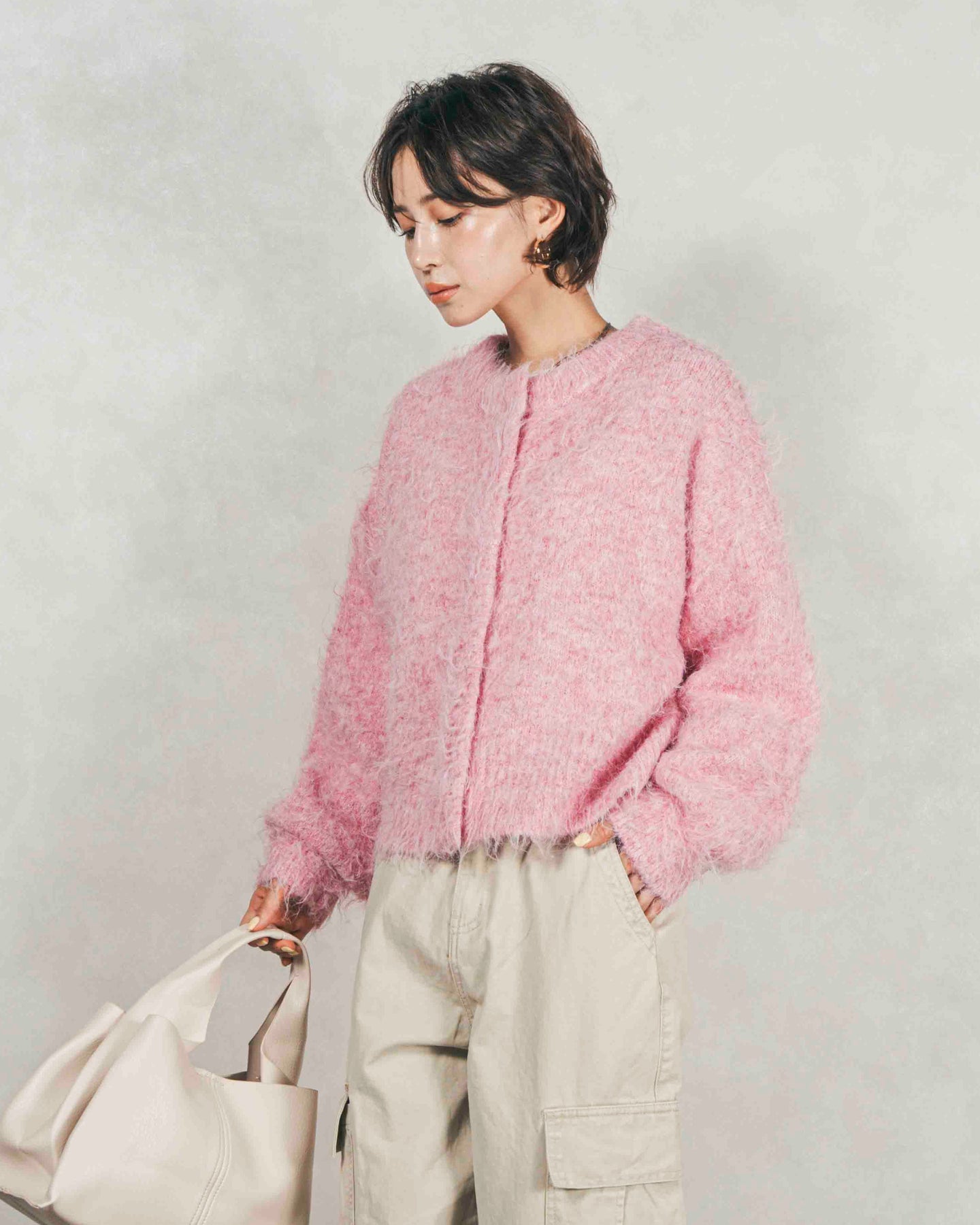 ふわふわの質感がかわいい。着るだけで雰囲気が変わる、着回し力抜群のミックスヤーンカーデ