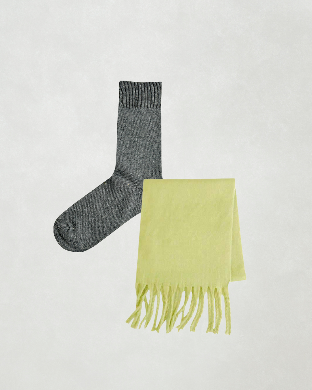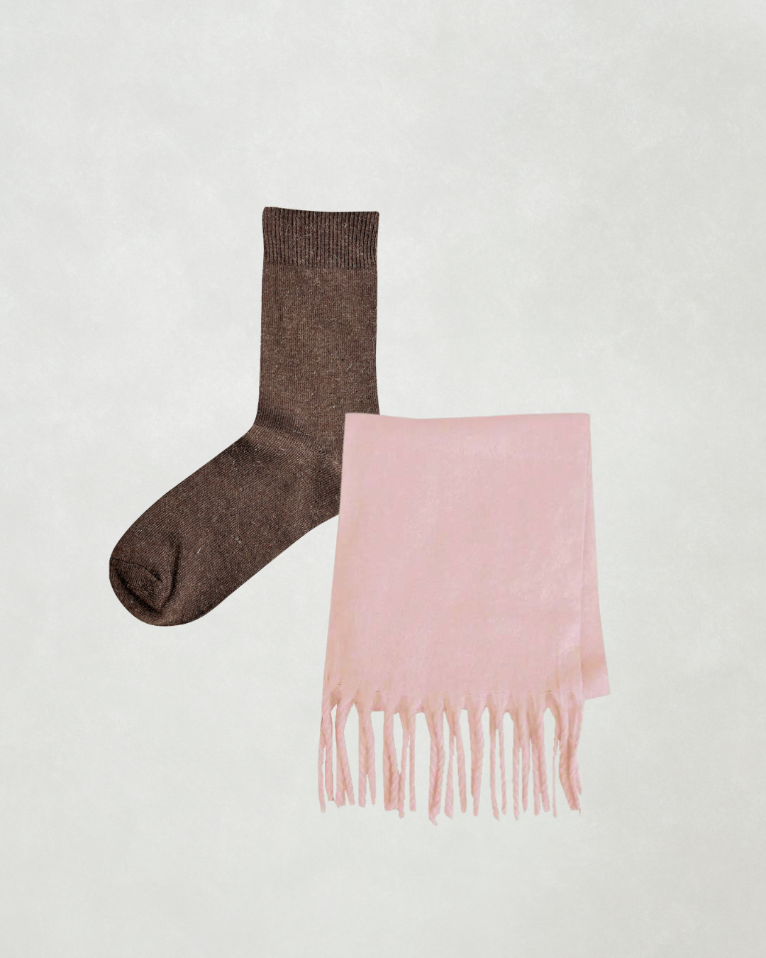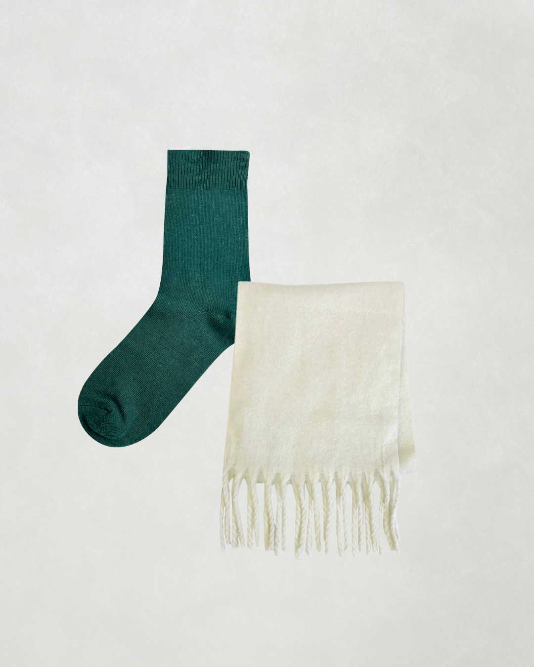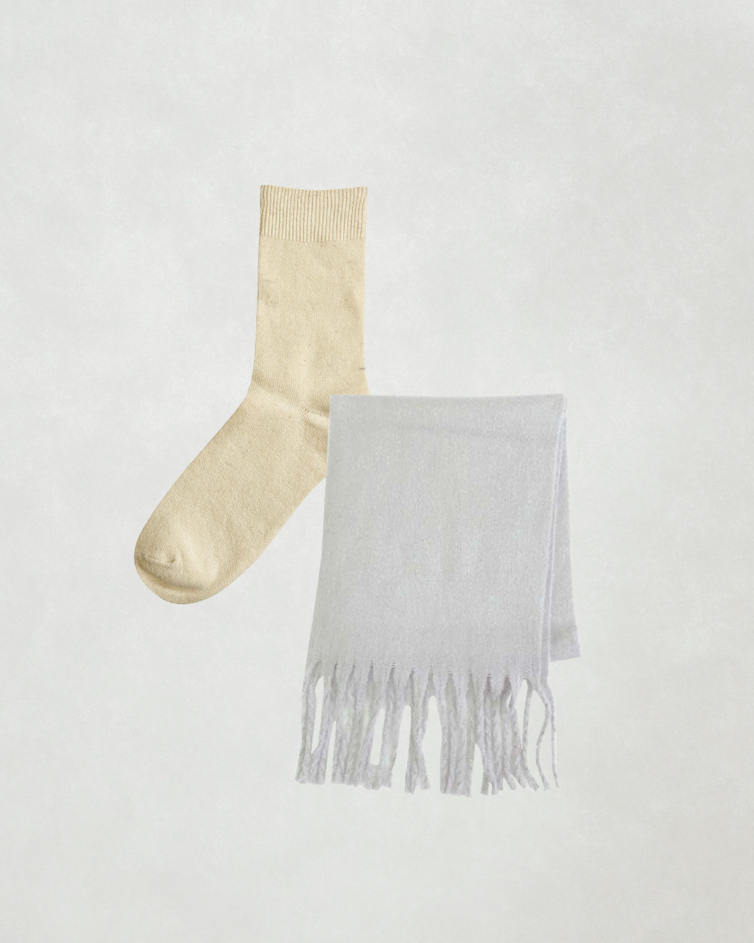 [SET]ボリュームフリンジ Shaggyマフラー+Cozyアンゴラ混ソックス(2SET)