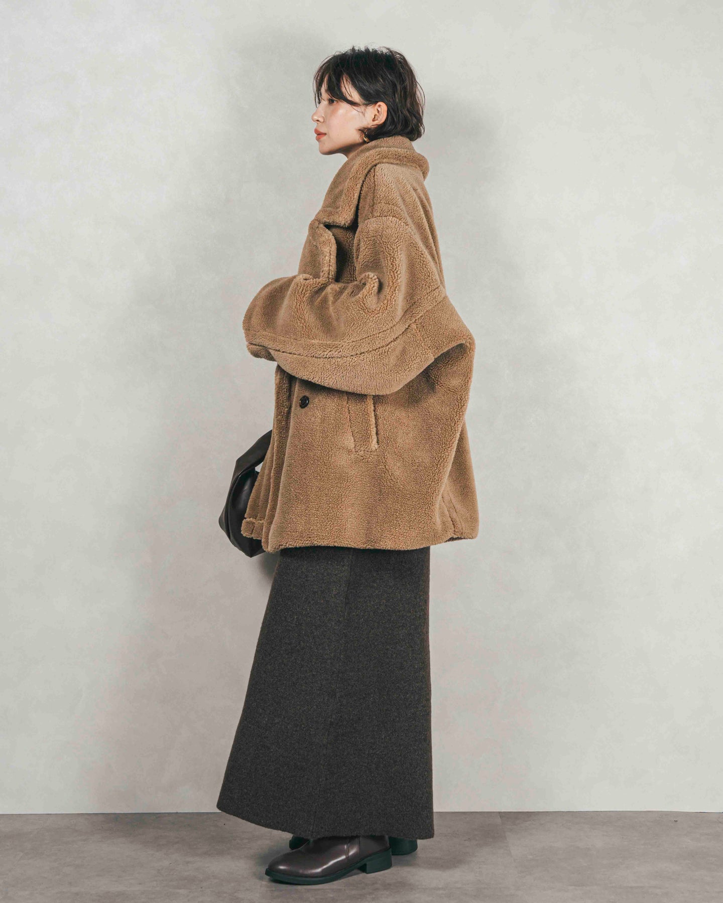 大人気のテディボアアウター。細身のパンツやナロースカートと合わせると、メリハリがついてバランス良く決まります。ワイドパンツと合わせたリラックススタイルもおすすめ◎