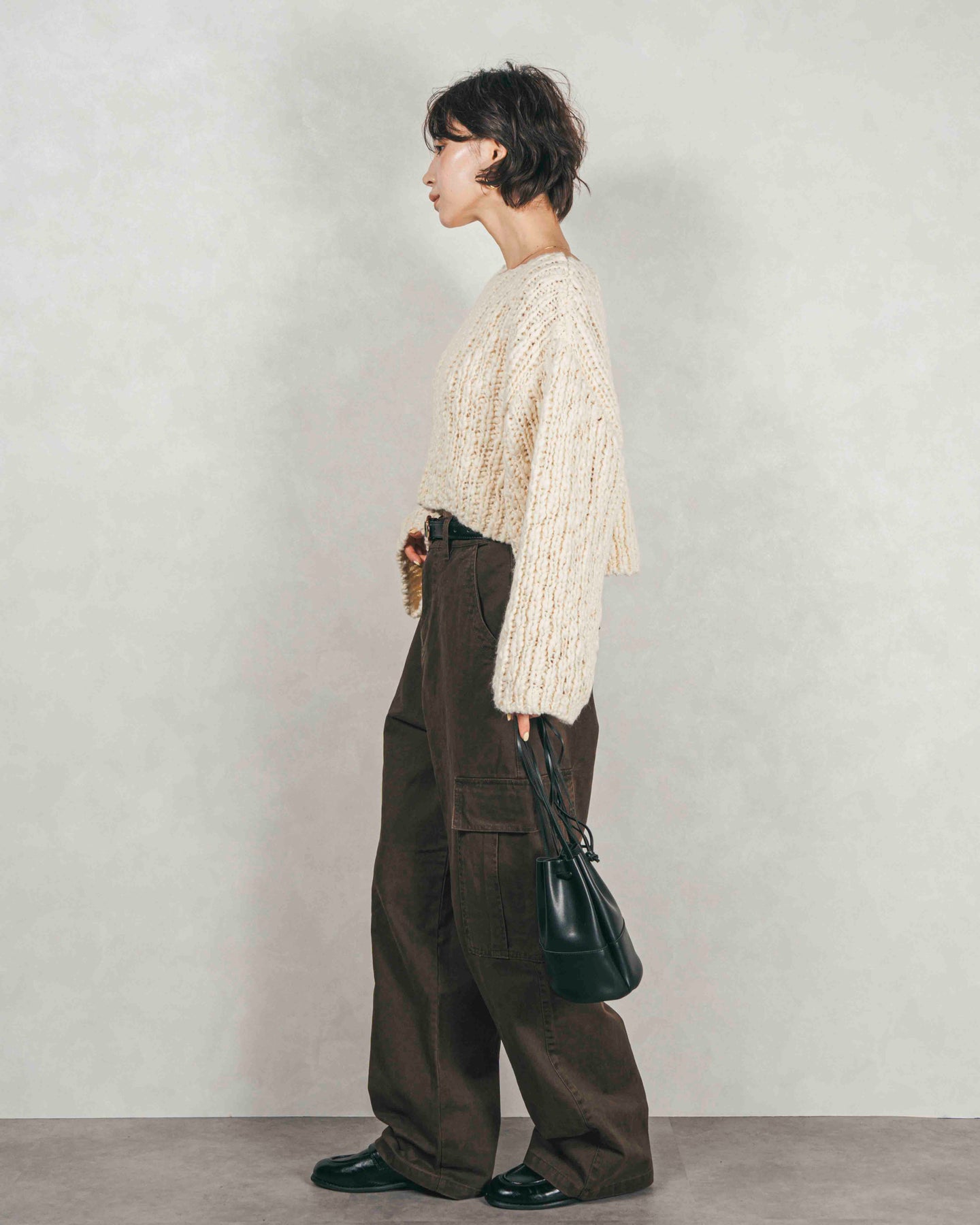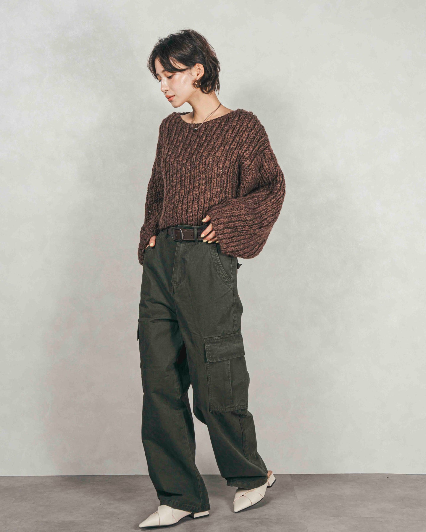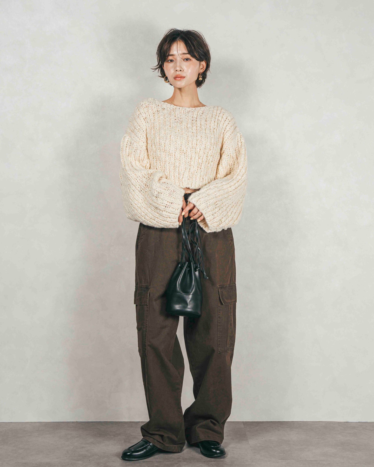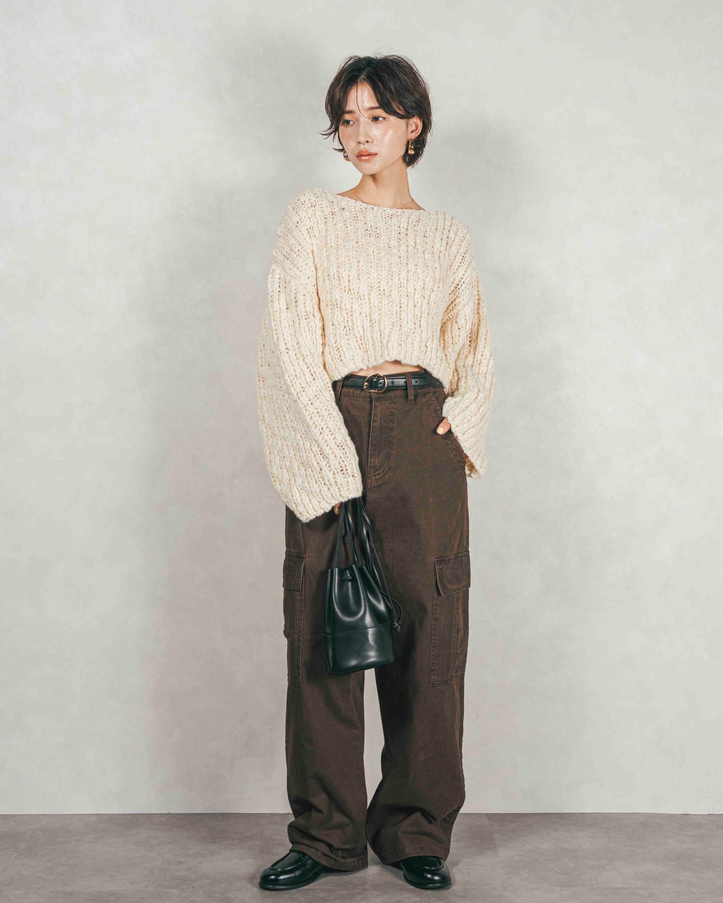 [SET]ボリュームチャンキースラブ クロップドニット+ピグメントツイルカーゴパンツ(2SET)