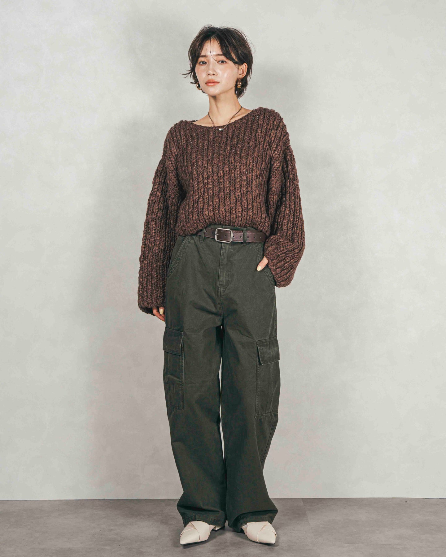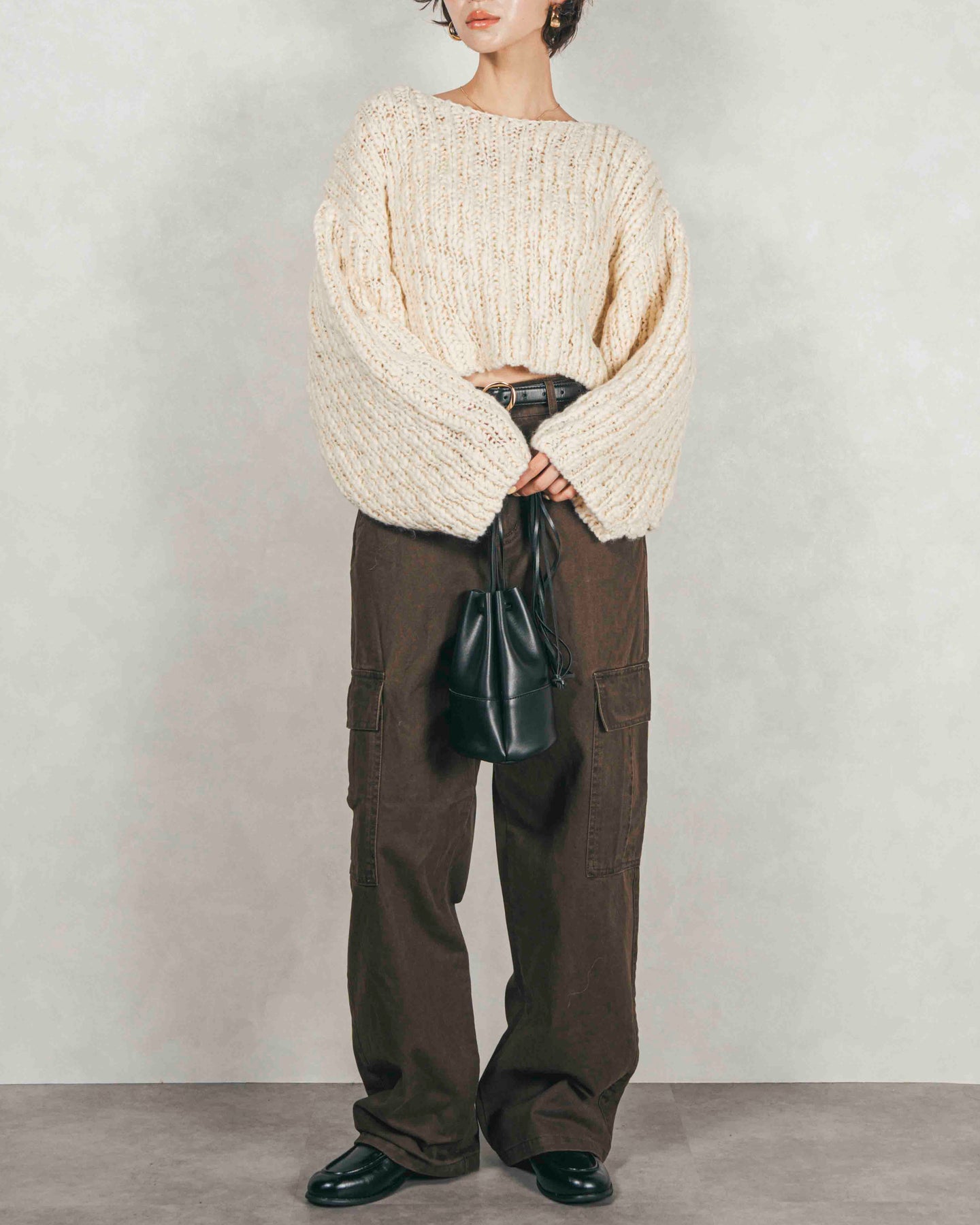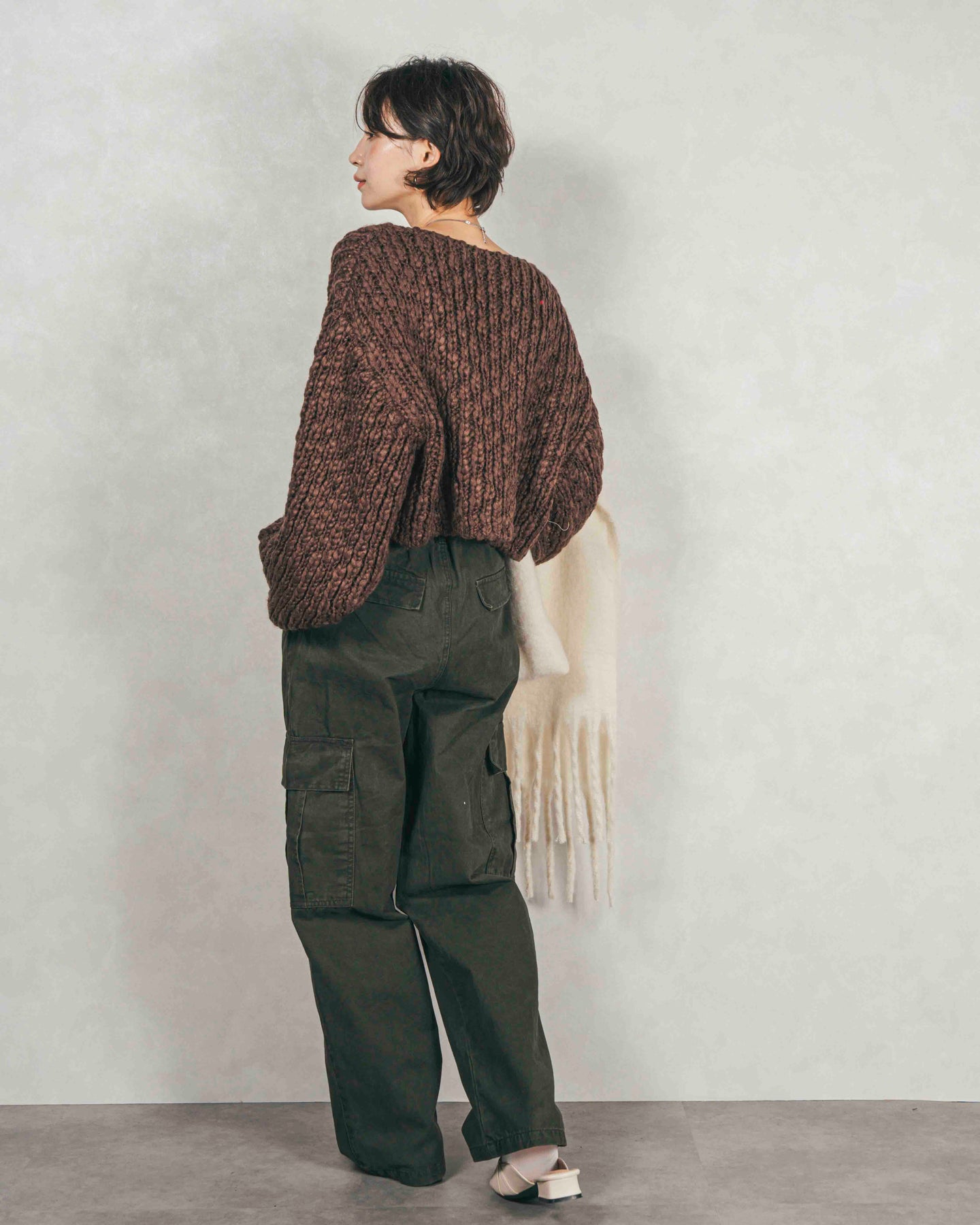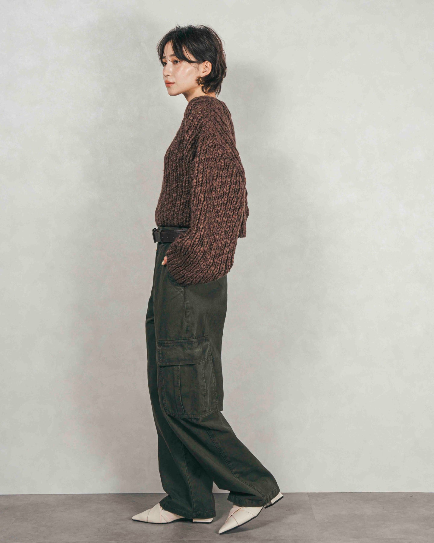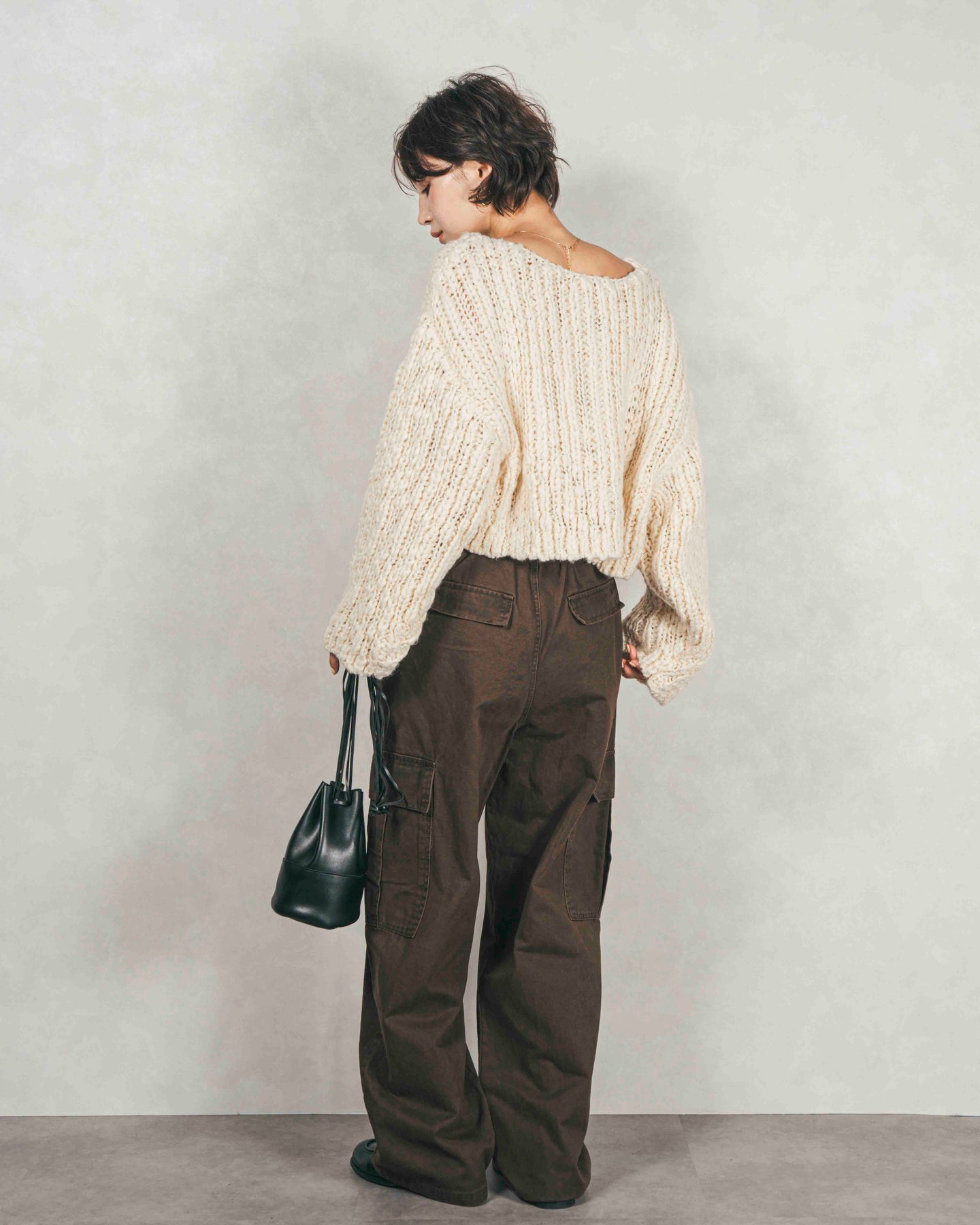 [SET]ボリュームチャンキースラブ クロップドニット+ピグメントツイルカーゴパンツ(2SET)