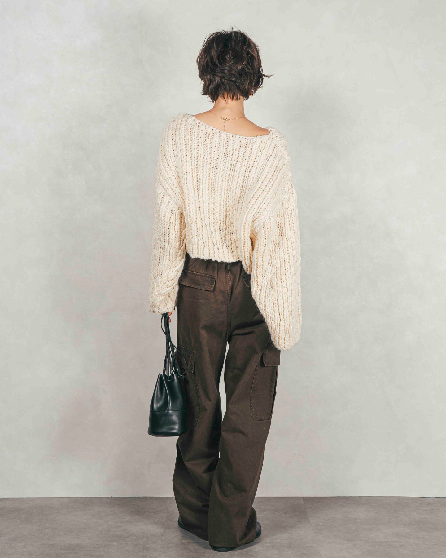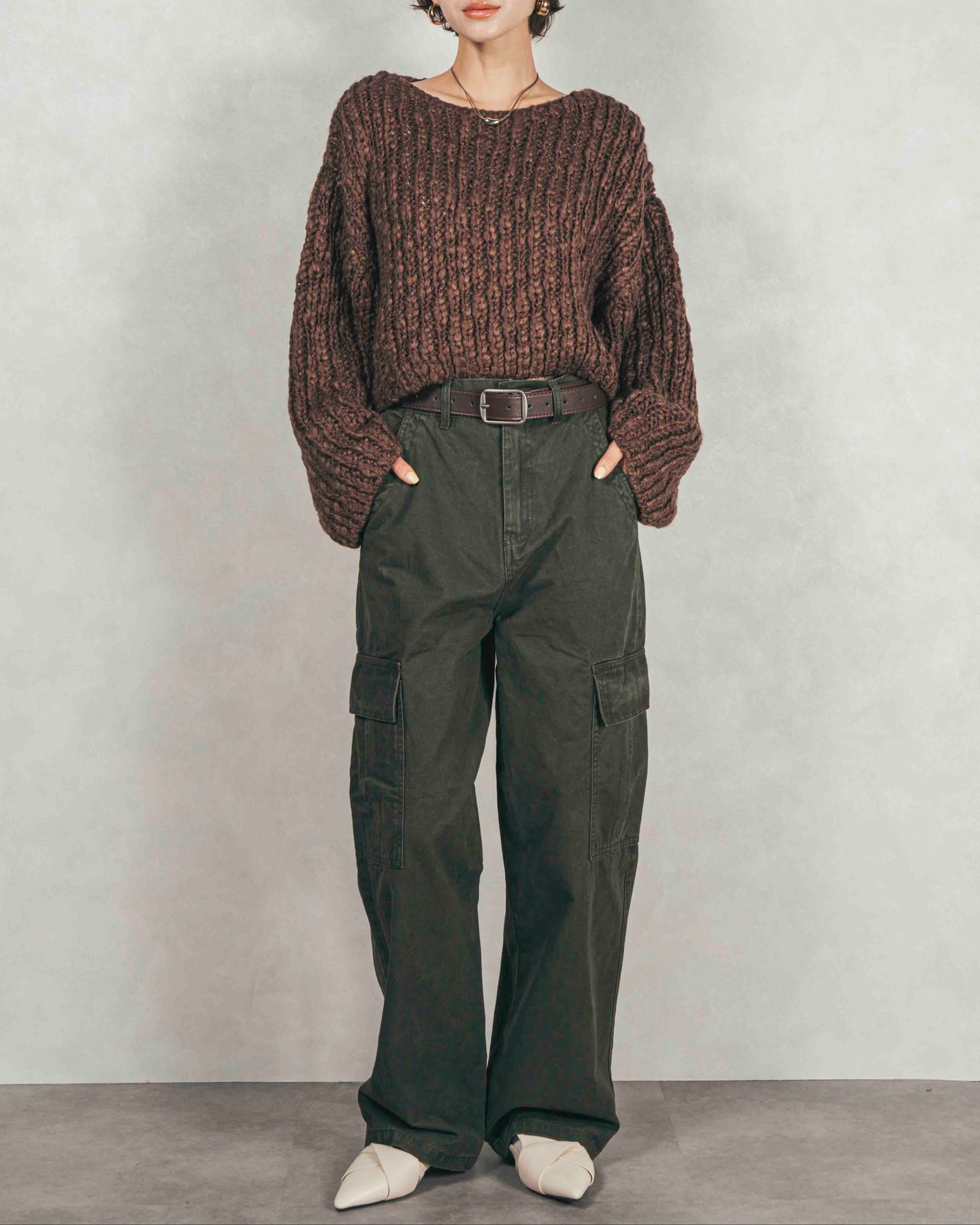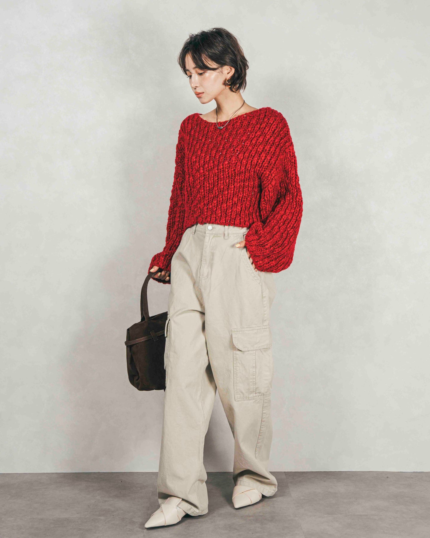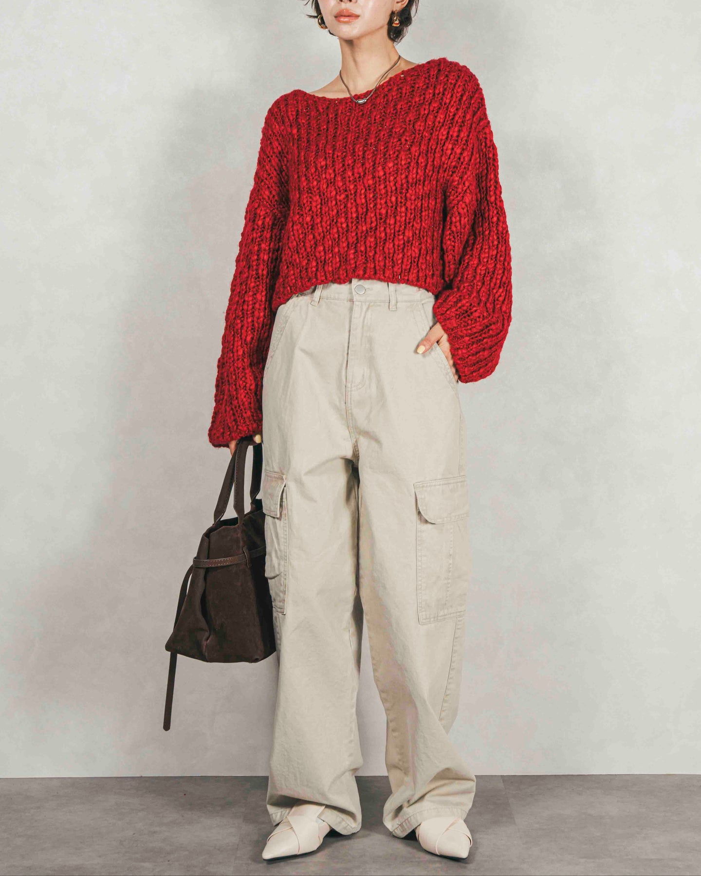 [SET]ボリュームチャンキースラブ クロップドニット+ピグメントツイルカーゴパンツ(2SET)