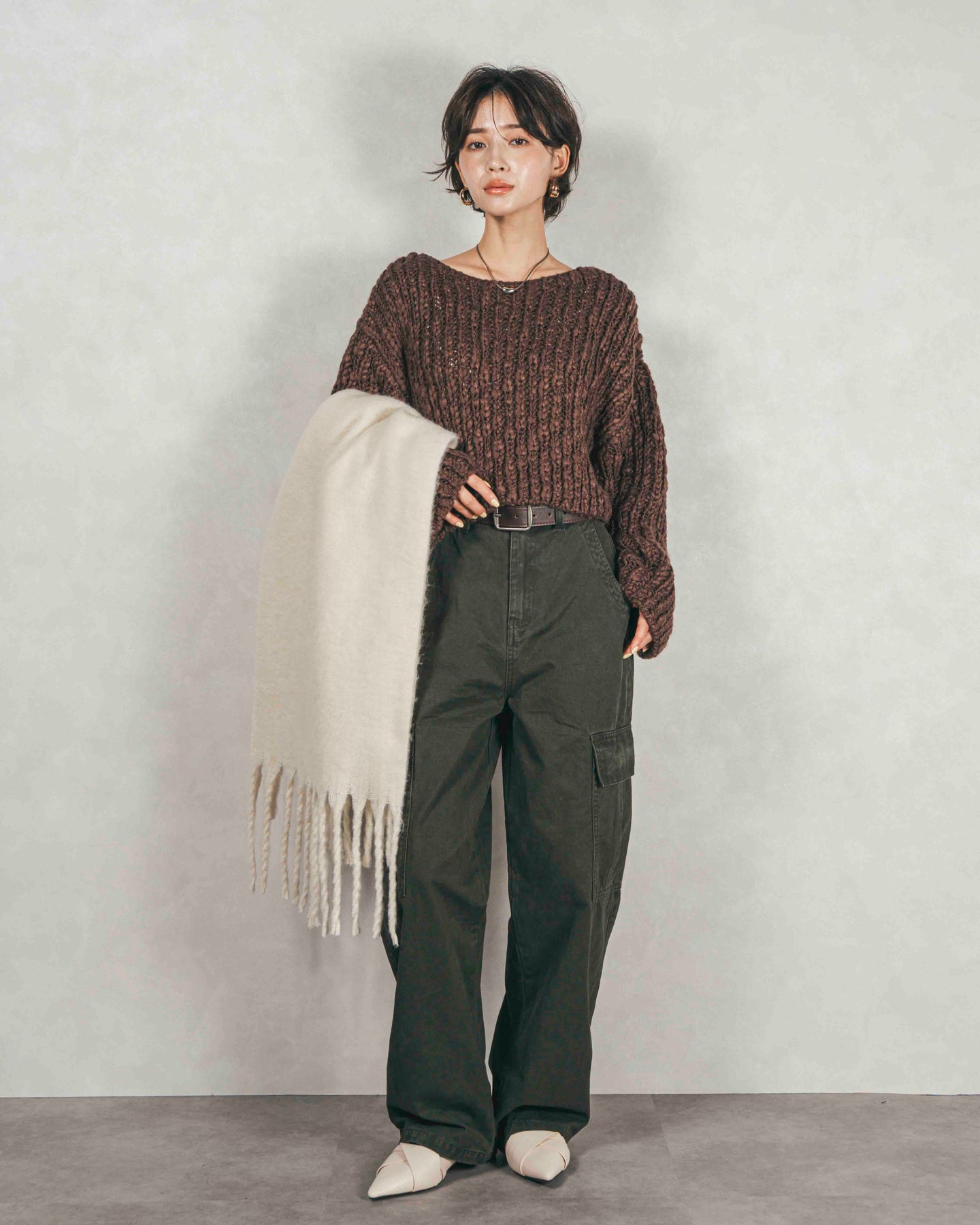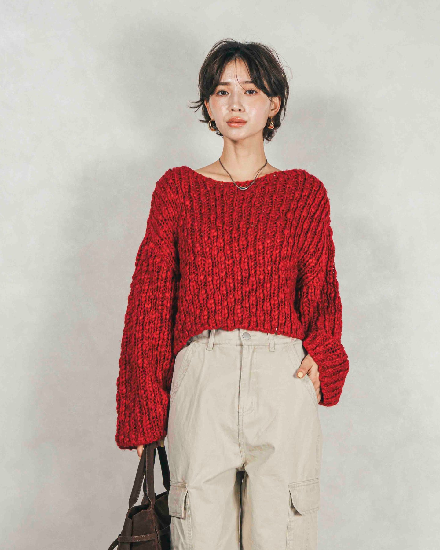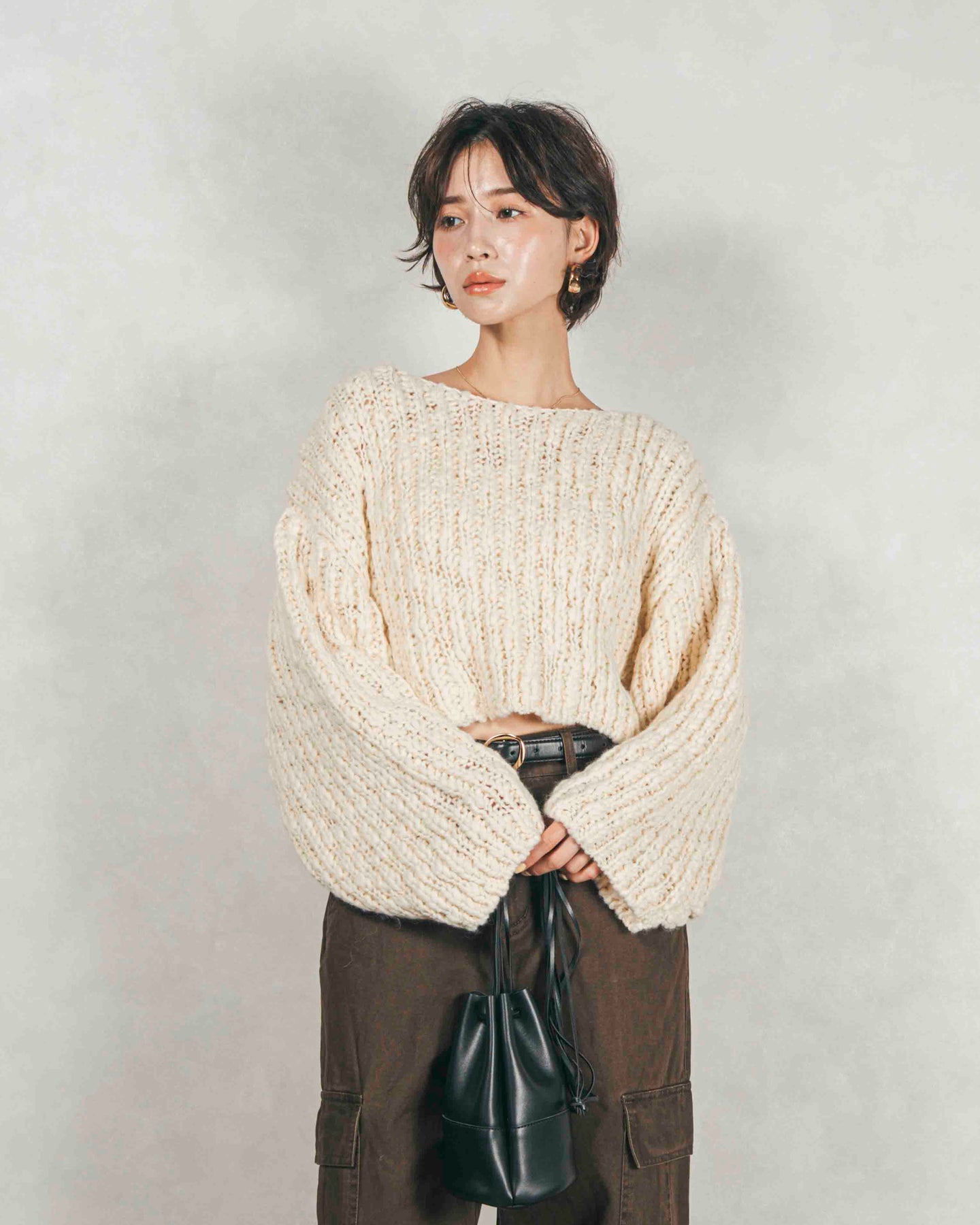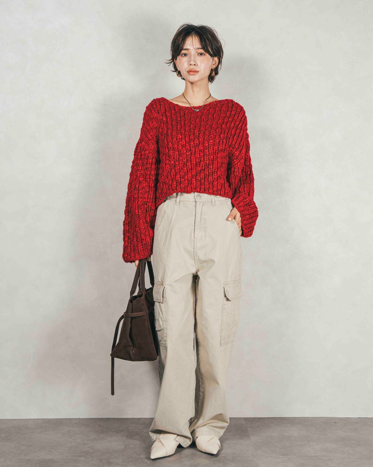 ざっくりとしたチャンキーニットが印象的。肩の力を抜いたおしゃれを楽しみたい日の主役ニット