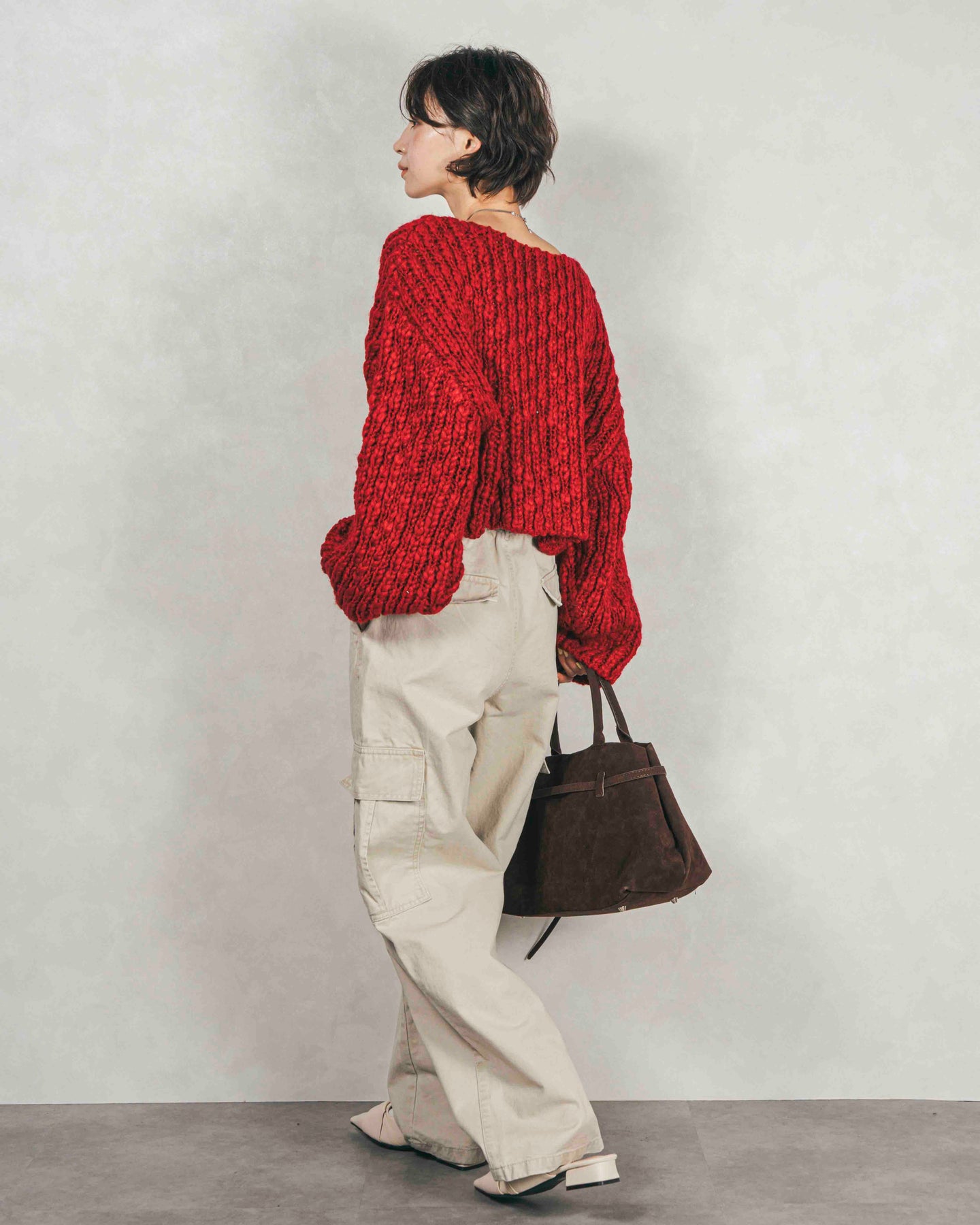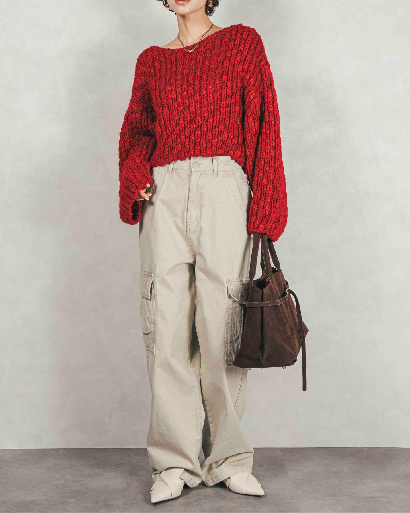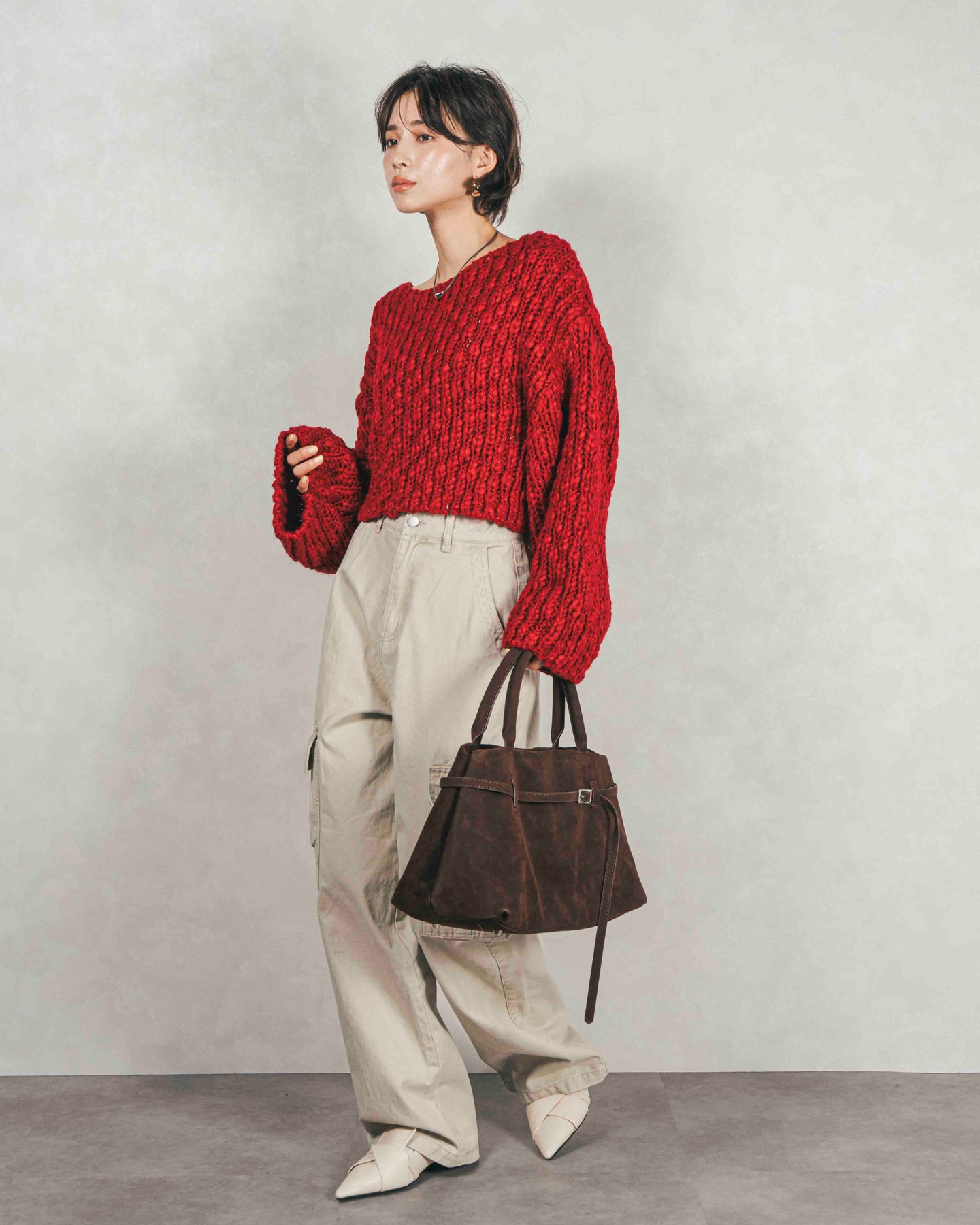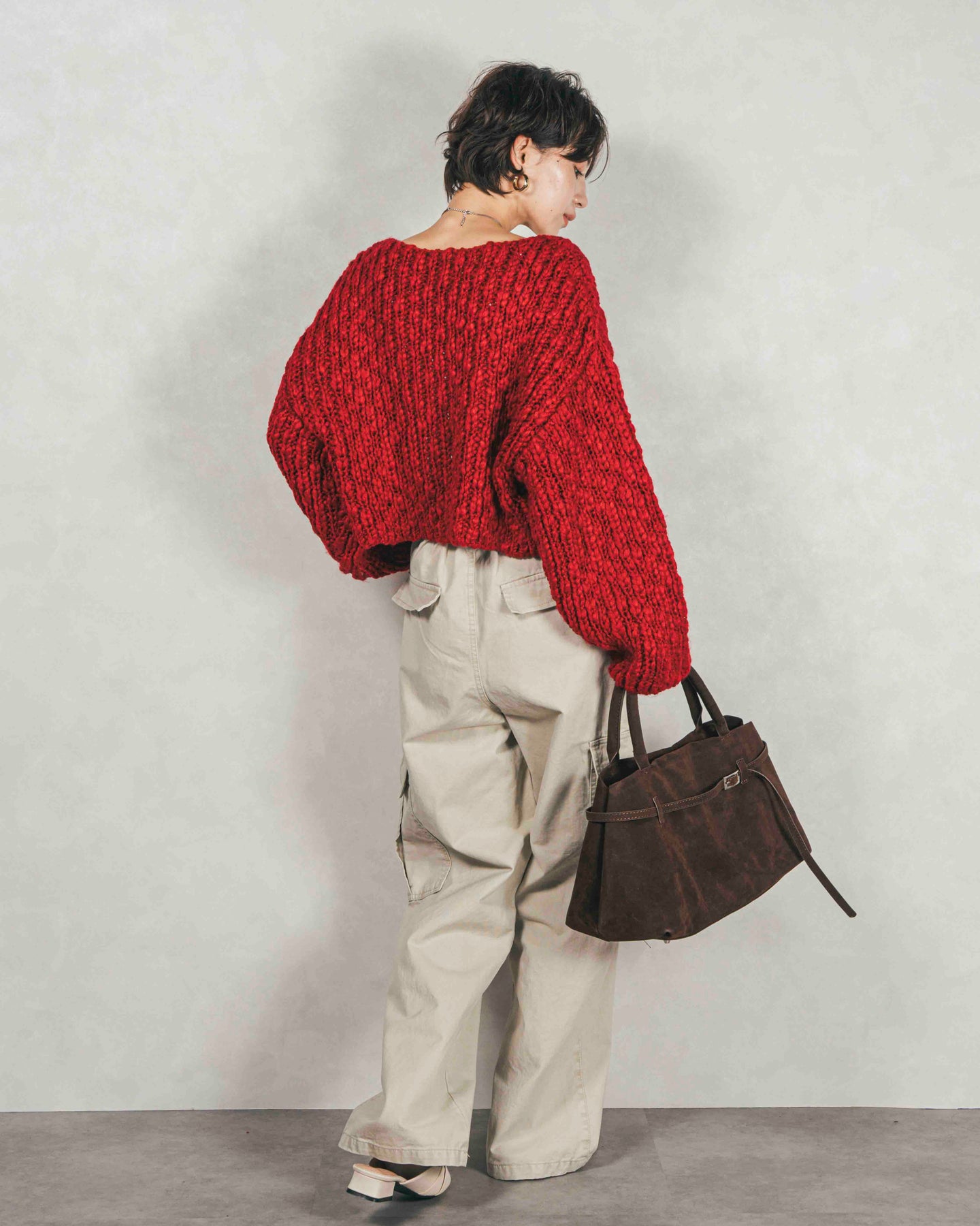 ざっくりとしたチャンキーニットが印象的。肩の力を抜いたおしゃれを楽しみたい日の主役ニット