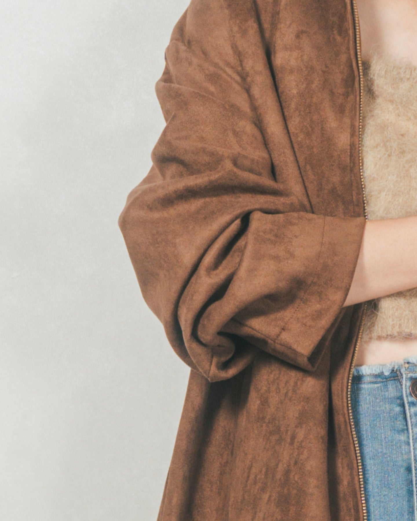 この秋、一枚は持っておきたい大人のオーバーブルゾン。しっとりとした手触りと上品な風合いが魅力のスエード素材に、ストレッチを効かせた着心地の良さが魅力です。ほどよい厚みとハリ感がありながら、柔らかく体になじむ絶妙なバランス。