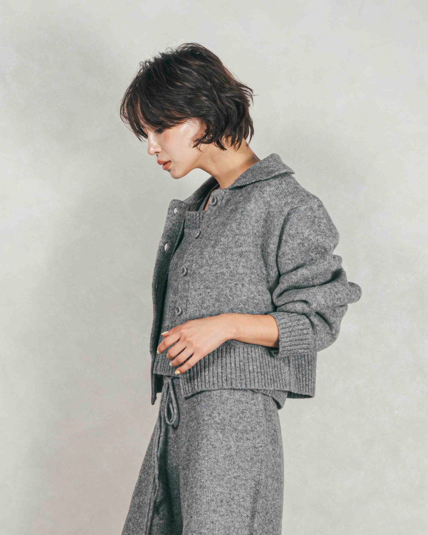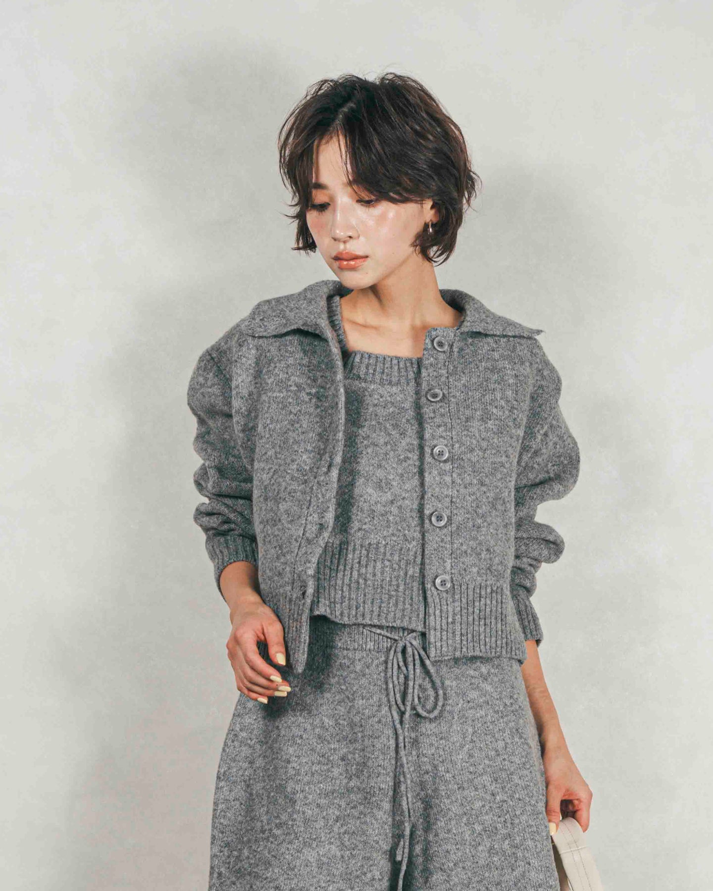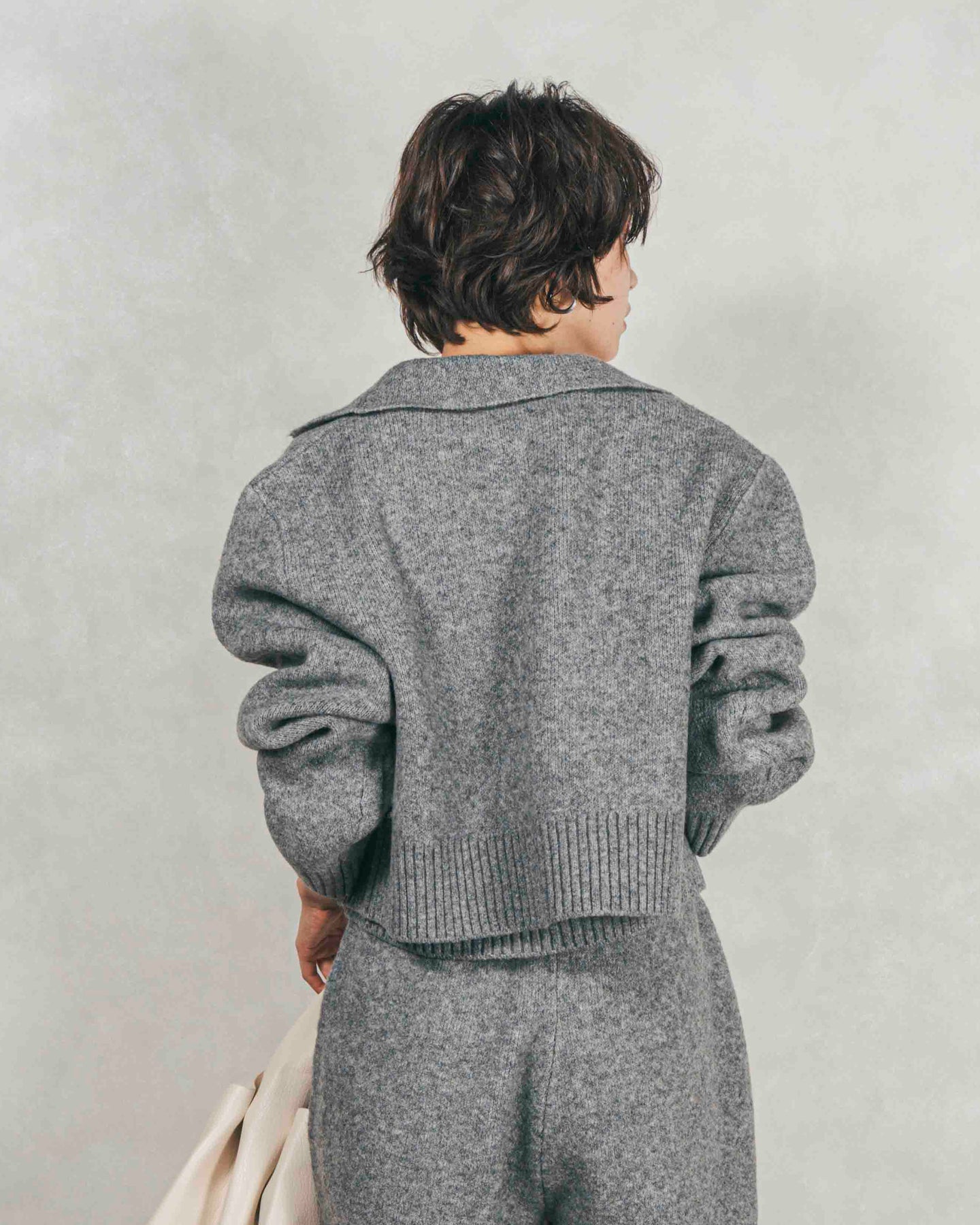 Cloudyメランジ襟付きカーディガン (GRAY)