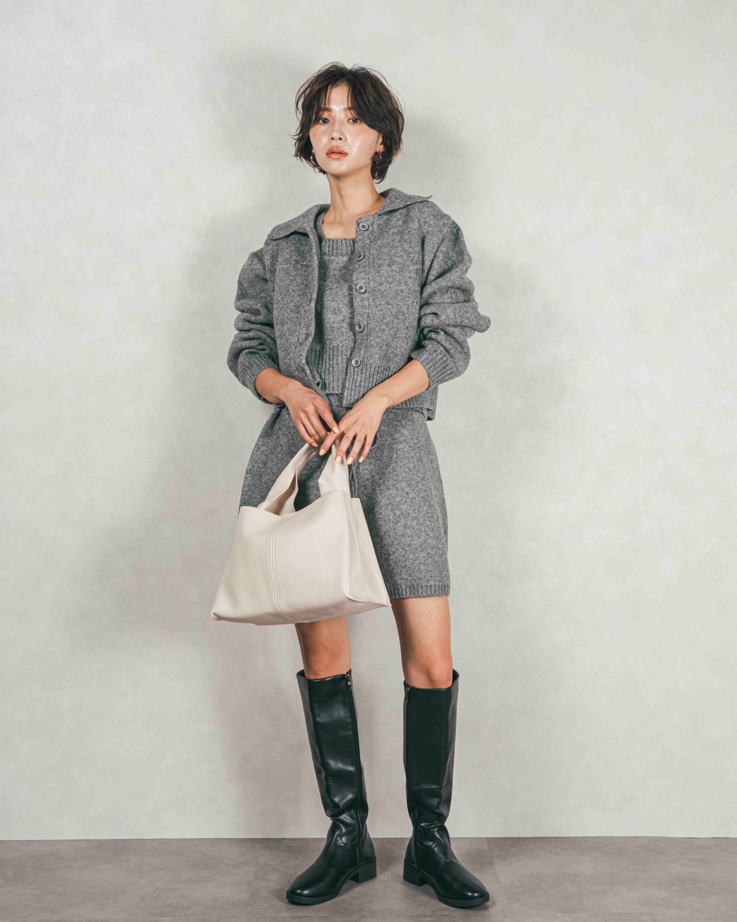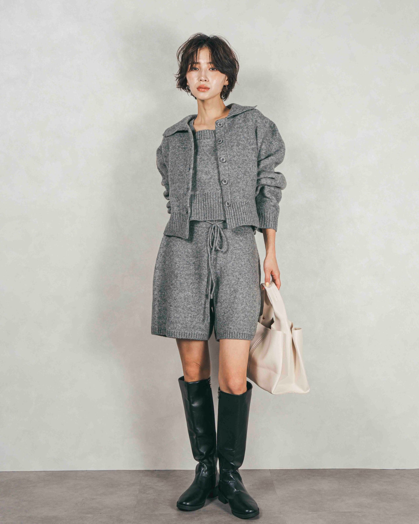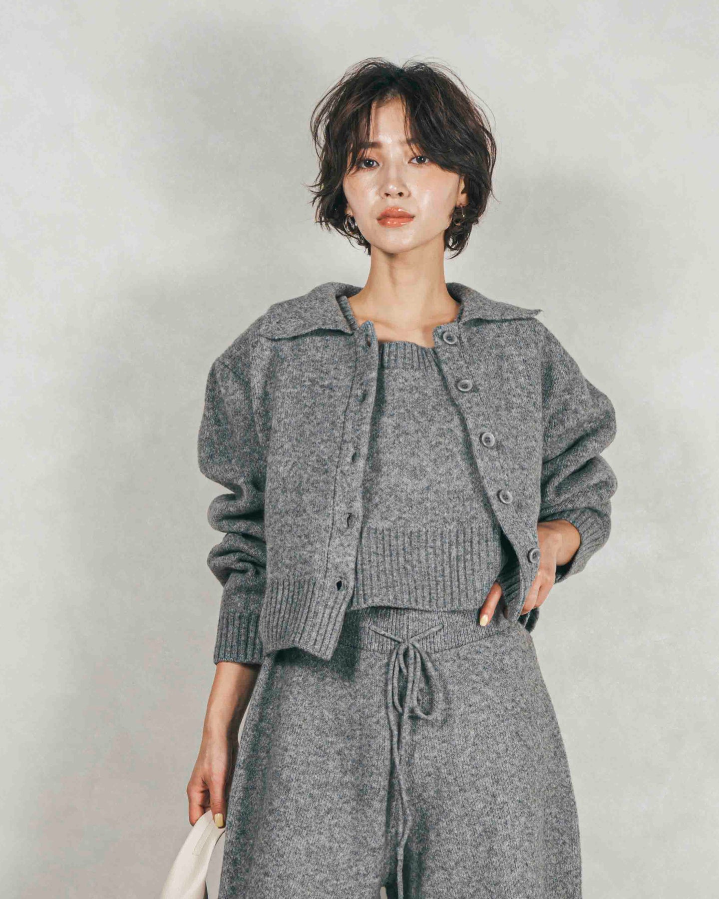 Cloudyメランジ襟付きカーディガン (GRAY)